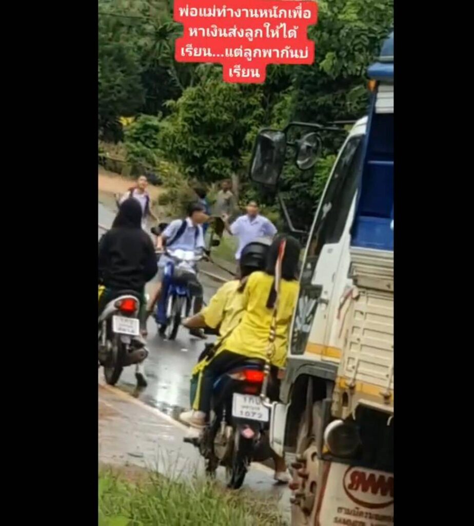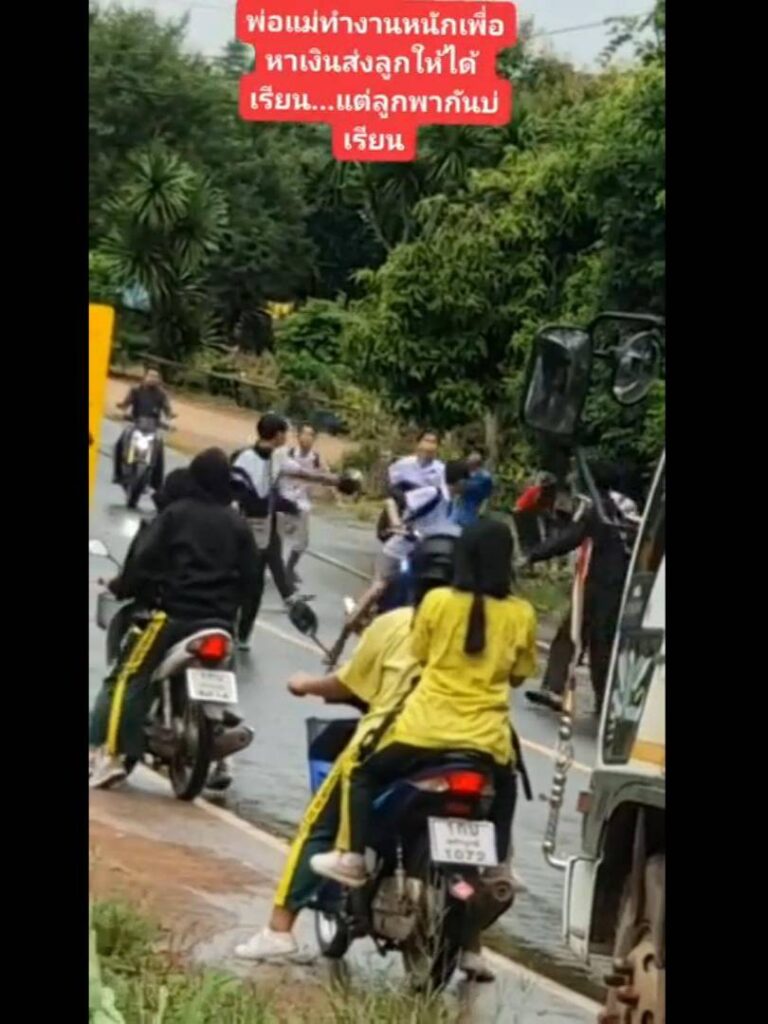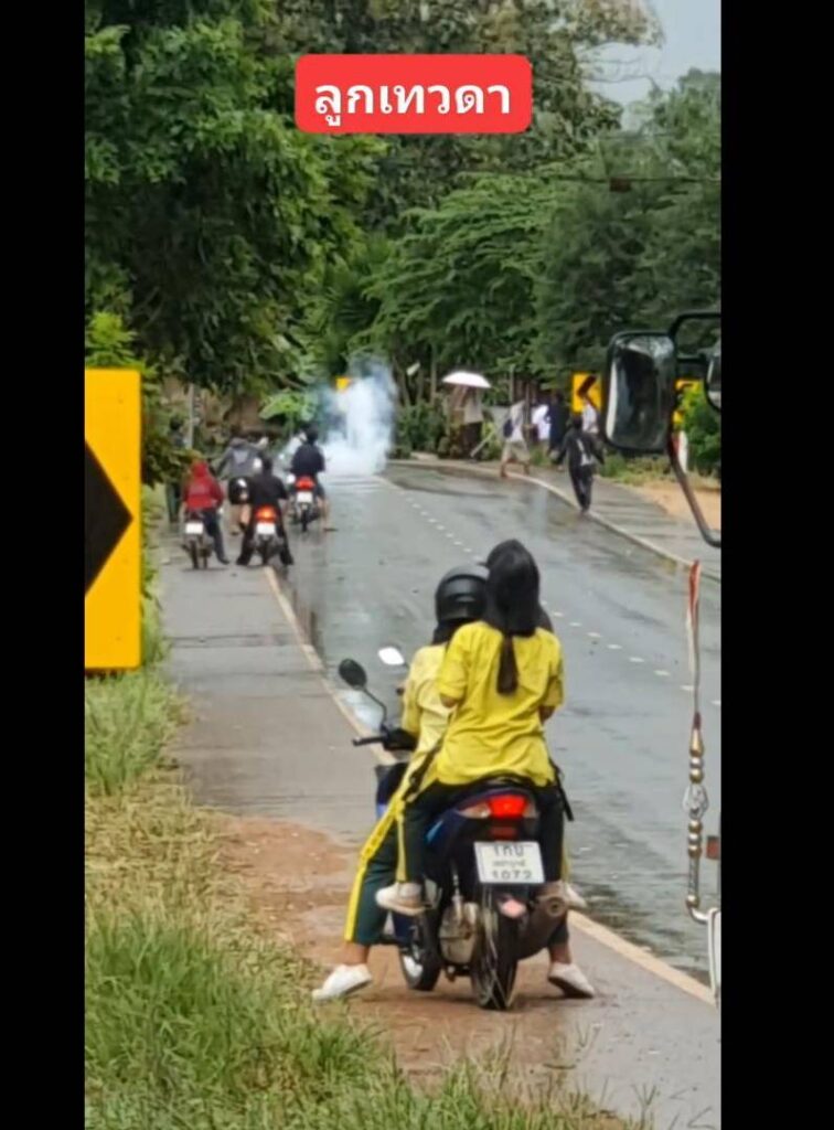 นายทองใส บรรดาศักดิ์ ชาวบ้านผู้เห็นเหตุการณ์ เล่าว่า ตอนนั้น ตนเห็นรถเด็กนักเรียนขับผ่านเพื่อกลับบ้าน แล้วก็มาเจอกับเด็กแถวนี้ ที่ดักรออยู่ ก็พากันกักรถไม่ให้ผ่าน และมีการไล่ทำร้ายกัน พร้อมขว้างระเบิดปิงปองใส่ เหตุการณ์ตอนนั้นดูน่ากลัวมาก มีทั้งอาวุธมีดสปาต้า มีดอีโต้ ไล่ฟันกันไปเลย โชคดีไม่มีคนบาดเจ็บ วิ่งไล่กันหนีไปไกล ส่วนตัวยอมรับว่า กลัวถูกลูกหลง ได้รับบาดเจ็บไปด้วย