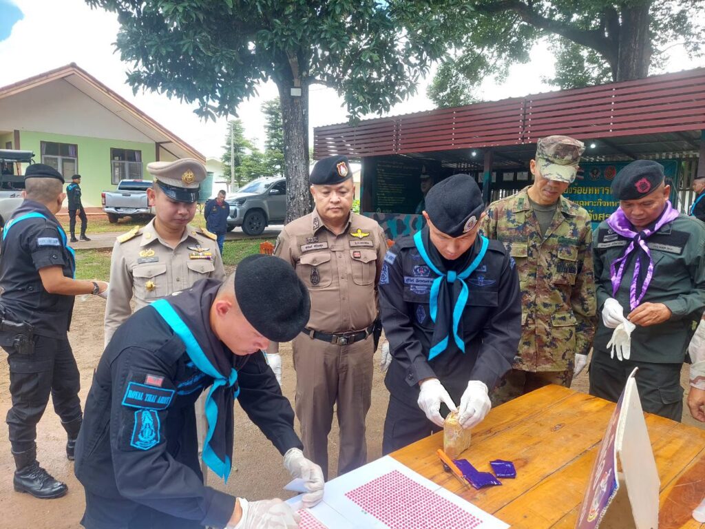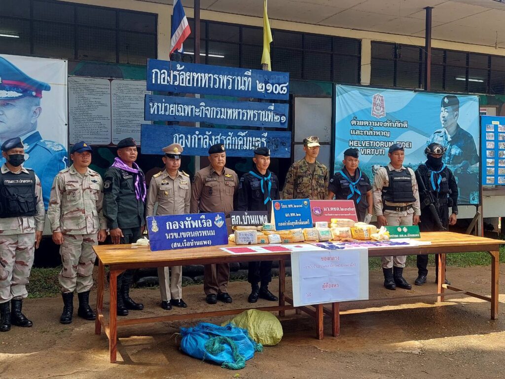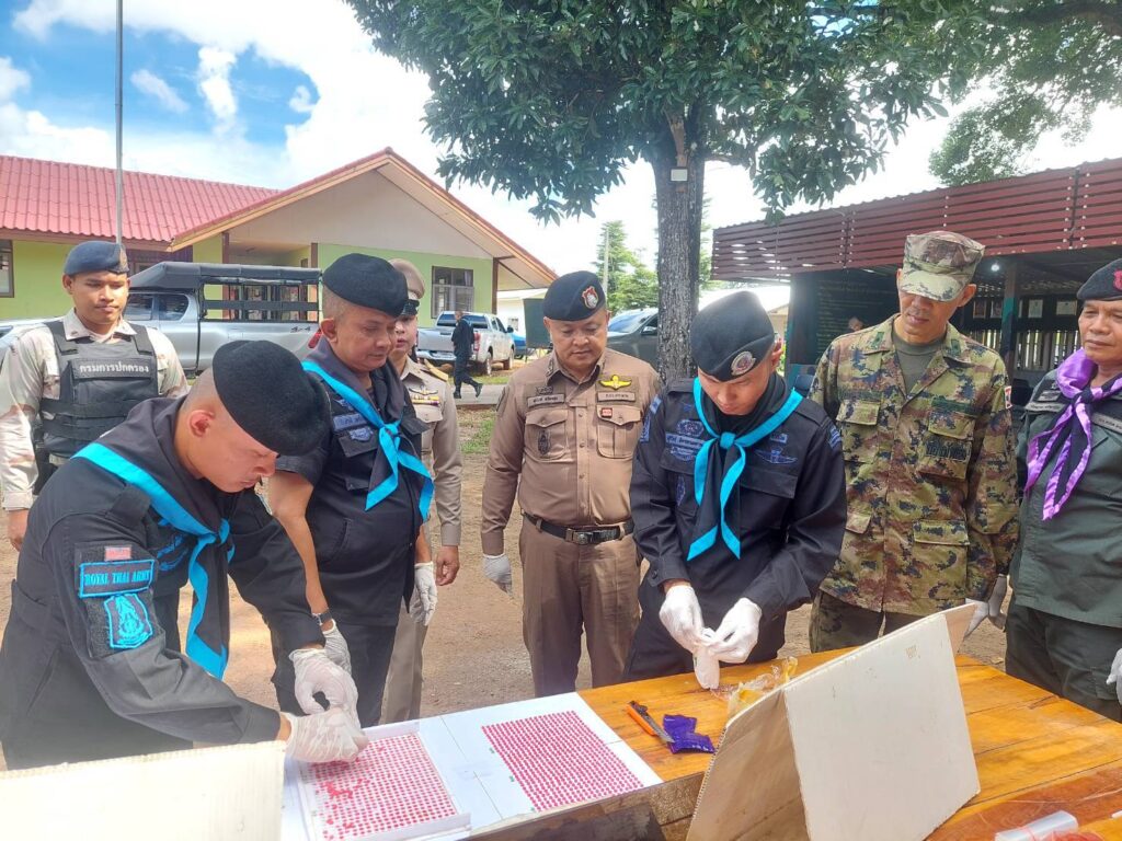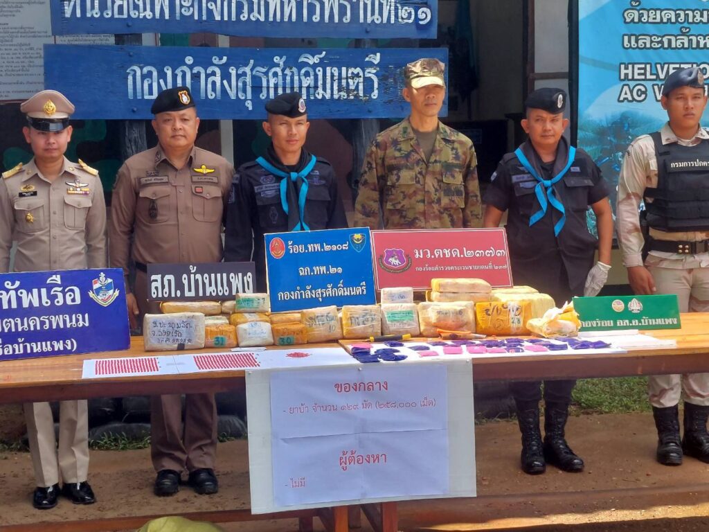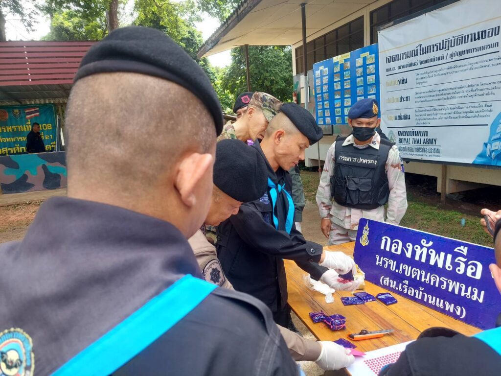 จากเหตุการณ์ที่นครพนม ยิงปะทะเดือด กองร้อยเฉพาะกิจทหารพราน 2108 กองกำลังสุรศักดิ์มนตรี กับขบวนการกองทัพมดแก๊งค้ายาบ้าข้ามชาติ ติดอาวุธครบมือ ยิงปะทะเปิดทางหนีหลังลำเลียงนำเข้ายาบ้าผ่านชายแดน อำเภอบ้านแพง ก่อนหลบหนี ตรวจยึดได้ 258,000เม็ด ตรวจสอบมีบัญชีออเดอร์ระบุปลายทางตีตลาดทั่วอีสาน ทางด้านพันเอก สุริวัชร์ อัครพรเดชาพงษ์ ผู้บังคับการกรมทหารพรานที่ 21 ผู้บังคับหน่วยเฉพาะกิจกรมทหารพรานที่ 21 เป็นผู้แทน พลตรี นรธิป โพยนอก ผู้บัญชาการกองกำลังสุรศักดิ์มนตรี/ผู้อำนวยการรักษาความมั่นคงภายในภาค 2 ส่วนแยก 1 พร้อมด้วยหน่วยงานความมั่นคงในพื้นที่ในการปราบปรามยาเสพติดติดตามแนวชายแดน แถลงผลงานในการปราบปรามยาเสพติด ตรวจยึดยาบ้าจำนวน 258,000 เม็ด ตรวจสอบเป็นยาบ้าห่อด้วยแพคเกจพลาสติกกันชื้น จำนวน 129 มัด โดยได้รับฟังบรรยายสรุปสถานการณ์ และเหตุการณ์ จาก ร้อยโท วันชาติ เหมือนปืน ผู้บังคับกองร้อยเฉพาะกิจทหารพราน 2108 หน่วยเฉพาะกิจกรมทหารพรานที่ 21 กรณีนำชุดปฏิบัติการยิงปะทะกองทัพมดแก๊งค้ายาบ้าข้ามชาติ ติดอาวุธครบมือ ยิงปะทะเปิดทางหนีหลังลำเลียงนำเข้ายาบ้าผ่านชายแดน เจ้าหน้าที่ทหารพรานยิงตอบโต้นานเกือบ 5 นาที ก่อนหลบหนีไป แต่ไม่มีคนได้รับบาดเจ็บและเสียชีวิต จึงเข้าเคลียพื้นที่ตรวจยึดยาบ้าดังกล่าว บริเวณพื้นที่ทุ่งนา บ้านแพงใต้ หมู่ที่ 11 ตำบลบ้านแพง อำเภอบ้านแพง จังหวัดนครพนม ถือว่าท้าทายรัฐบาลชุดใหม่ท่ามกลางนโยบายปราบยาเสพติดของรัฐบาล โดยผู้บังคับหน่วยเฉพาะกิจกรมทหารพรานที่ 21 ได้พบปะให้กำลังใจ กำลังป้องกันชายแดนของหน่วย พร้อมกับมอบนโยบาย โดยปฏิบัติหน้าที่ด้วยความระมัดระวังในการเผชิญเหตุต่างๆ และได้เน้นย้ำคุมเข้มการปฏิบัติงานเพื่อ “หยุดยาเสพติดไว้ที่ชายแดน” ป้องกันสิ่งผิดกฎหมาย ตามแนวชายแดนไทย-ลาว ในพื้นที่รับผิดชอบ และได้เดินทางมาตรวจภูมิประเทศ เพื่อพิสูจน์ทราบพื้นที่ปฏิบัติการของหน่วยและรับฟังข้อมูลพื้นที่ปฏิบัติงาน จุดเพ่งเล็ง ,จุดเสี่ยง ,จุดล่อแหลม ที่หน่วยได้สามารถตรวจยึดจับกุม และสกัดกั้นขบวนการลักลอบลำเลียงยาเสพติดเข้ามาในประเทศไทยไว้ได้เป็นผลสำเร็จ ซึ่งเป็นพื้นที่จริง พร้อมทั้งได้ให้คำแนะนำในยุทธวิธีการสกัดกั้นยาเสพติด คุมเข้มพื้นที่รับผิดชอบ ตามนโยบาย ผู้บัญชาการทหารบก โดยเฉพาะการป้องกันยาเสพติด ถือเป็นการปฏิบัติหน้าที่ที่สำคัญและเป็นวาระแห่งชาติ พร้อมเน้นย้ำให้กำลังพลบูรณาการกับทุกภาคส่วนในการปฏิบัติภารกิจป้องกันชายแดนและการช่วยเหลือประชาชนในทุกมิติ ในพื้นที่ร