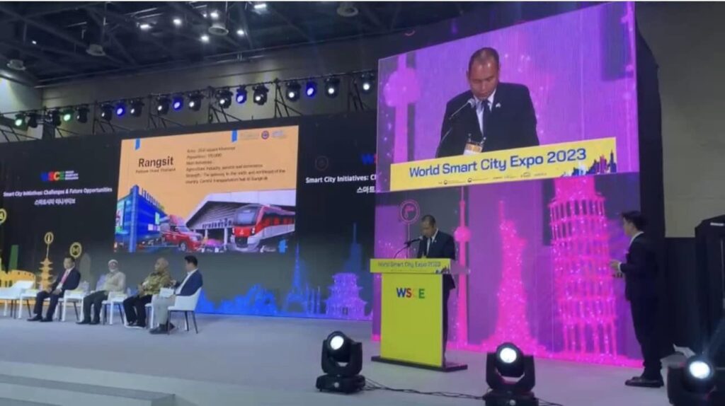โดยภายในงาน ร้อยตำรวจเอก ดร.ตรีลุพธ์ ธูปกระจ่าง นายกเทศมนตรีนครรังสิต ได้เป็นตัวแทนในนามตัวแทนประเทศไทย นำเสนอเวทีในหัวข้อ “Water management and Bio-waste disposal platform in rangsit city” ซึ่งได้รับความสนใจจากผู้เข้าร่วมกิจกรรมในครั้งนี้เป็นอย่างมาก และพร้อมกับการลงนามในหนังสือแสดงเจตจำนงความร่วมมือ LETTER OF INTENT (LOI) ระหว่าง เทศบาลนครรังสิต กับ สมาคมเมืองอัจฉริยะแห่งสาธารณรัฐเกาหลี THE SMART CITY ASSOCIATION OF THE REPUBLIC OF KOREA ในการพัฒนาเมืองอัจฉริยะ ยังมีการเดินทางเข้าร่วมประชุมรับฟังการนำเสนอเทคโนโลยีและนวัตกรรมที่ทันสมัยจาก สำนักงานใหญ่ของ NAVER