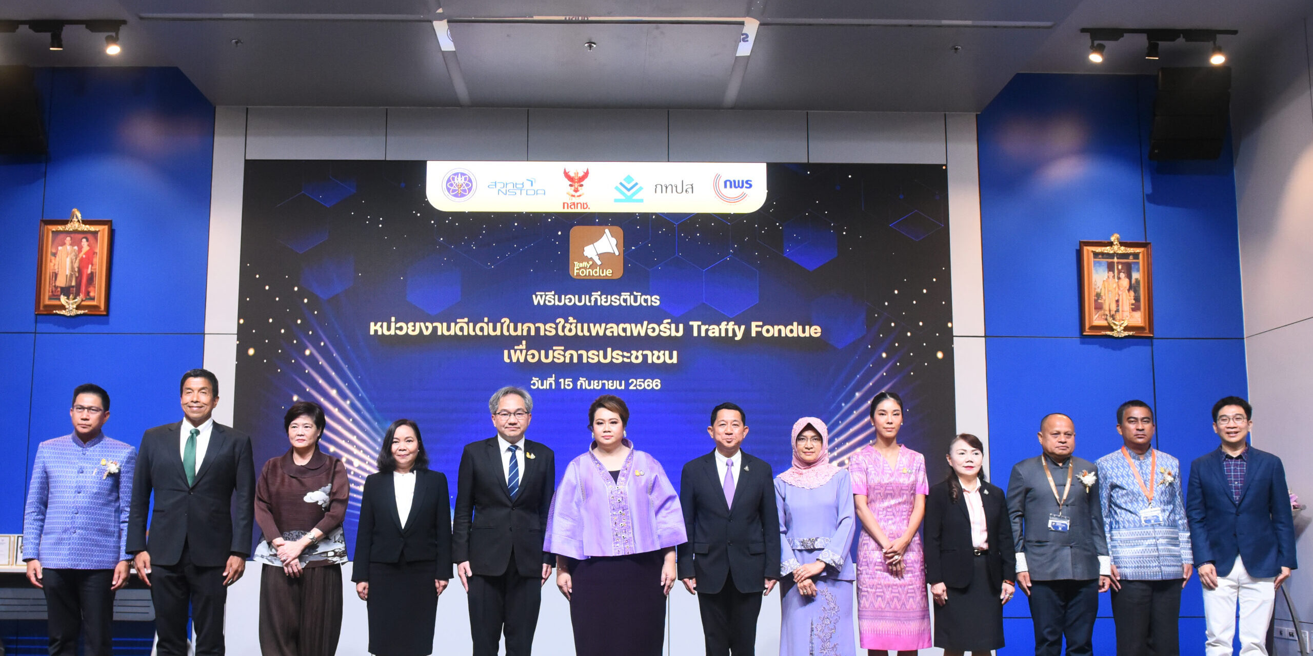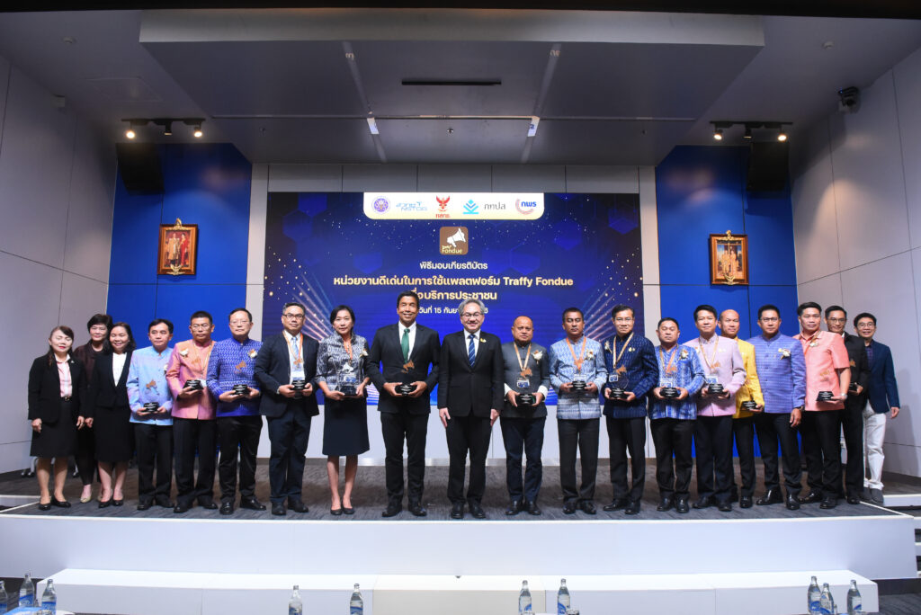 เส้นเลือดฝอย กรุงเทพมหานคร” พร้อมด้วย ศาสตราจารย์ชูกิจ ลิมปิจำนงค์ ผู้อำนวยการสำนักงานพัฒนาวิทยาศาสตร์และเทคโนโลยีแห่งชาติ (สวทช.) นางอารีย์พันธ์ เจริญสุข รองเลขาธิการสำนักงานคณะกรรมการพัฒนาระบบราชการ (ก.พ.ร) นายวสันต์ ภัทรอธิคม ผู้อำนวยการหน่วยบริการนวัตกรรมดิจิทัลสำหรับเมือง (สวทช.) ผู้พัฒนาแพลตฟอร์มทราฟฟี่ ฟองดูว์ ร่วมพิธีมอบประกาศเกียรติบัตร