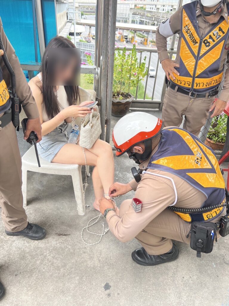 โดยเมื่อเช่วงที่ยงของวันที่ 14 กันยายน 2566 ขณะที่ ร.ต.ต.อาทิตย์ วรรณพราหมณ์ รอง สว.จร. งานศูนย์ควบคุมจราจรด่วน 2 กก.2 บก.จร. พร้อมด้วย ส.ต.อ.ปวรินทร์ ภูชัน,ส.ต.อ.เกริกเกียรติ อุทัยคำ และ ส.ต.อ.ณัฐพงษ์ จันทร์ส่งแสง เจ้าหน้าที่ตำรวจจราจร สน.ทางด่วน 2 บก.จร. กำลังปฏิบัติหน้าที่ตั้งจุดตรวจกวดขันวินัยจราจร บริเวณหลังด่านเก็บเงินค่าผ่านทางอโศก 4 ได้มีรถแท็กซี่สีเหลือง เข้ามาขอความช่วยเหลือ โดยผู้ขับขี่รถแท๊กซี่แจ้งกับเจ้าหน้าที่ตำรวจว่า มีหญิงสาวชาวจีนหนีลงมาจากรถยนต์เก๋งที่ประสบอุบัติเหตุบริเวณด่านอโศก 4 มีเชือกมัดอยู่ที่ข้อมือซ้ายและข้อเท้าซ้าย วิ่งมาขึ้นรถแท็กซี่ ตนจึงได้พามาขอความช่วยเหลือจากเจ้าหน้าที่ตำรวจ ร.ต.ต.อาทิตย์ฯ ได้พิจารณาแล้วเห็นว่าเป็นการกระทำความผิดและเป็นเหตุเร่งด่วน จึงสั่งการเจ้าหน้าที่ตำรวจอีก 3 นายให้การช่วยเหลือหญิงชาวจีน และออกติดตามหาตัวผู้ก่อเหตุทันที พร้อมทั้งประสานงานกับส่วนต่างๆ ที่เกี่ยวข้อง จนสามารถจับกุมผู้ขับขี่รถยนต์เก๋งคันประสบอุบัติเหตุบริเวณทางลงด่วนพระราม 9 ถนนจตุรทิศ เป็นชายชาวจีน อายุ 36 ปี ตรวจค้นภายในรถพบเชือกในลักษณะเดียวกันกับที่ใช้มัดมือและเท้าหญิงชาวจีนที่มาขอความช่วยเหลือ เจ้าหน้าที่ตำรวจจึงได้ควบคุมตัวผู้ต้องหา ส่ง สน.มักกะสัน ท้องที่เกิดเหตุ เพื่อดำเนินคดีตามกฎหมายต่อไป
