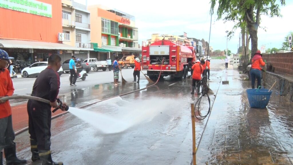 ศูนย์ข่าวภาคกลางหนังสือพิมพ์5 เหล่าทัพ รายงานข่าวว่า นายจำเริญ สละชีพ นายกเทศมนตรีเมืองลพบุรี ได้มอบให้ นายวิทูร ภักดิ์ปาน ผู้อำนวยการกองสาธารณสุขและสิ่งแวดล้อมเทศบาลเมืองลพบุรี นำเจ้าหน้าที่กองสาธารณสุขและสิ่งแวดล้อมเทศบาลเมืองลพบุรี และเจ้าหน้าที่งานป้องกันและบรรเทาสาธารณภัยเทศบาลเมืองลพบุรี ดำเนินการล้างทำความสะอาดตลาดโต้รุ่งริมทางรถไฟ เพื่อให้เกิดความสะอาด สวยงาม เป็นระเบียบ โดยการดำเนินการดังกล่าว ทางเจ้าหน้าที่กองสาธารณสุขและสิ่งแวดล้อมเทศบาลเมืองลพบุรี ได้ใช้โซดาไฟ เทบนพื้นก่อนที่จะนำรถดับเพลิงฉีดน้ำ และให้เจ้าหน้าที่กวาดทำความสะอาดอีกครั้ง ทั้งนี้เทศบาลเมืองลพบุรี ได้ดำเนินการล้างตลาดโต้รุ่งดังกล่าว เดือนล่ะ 2 ครั้ง โดยมีการล้างทำความสะอาดพื้น ฟุตบาท และขอบฟุตบาท ตามหลักสุขาภิบาล เพื่อรักษาความสะอาด และความเป็นระเบียบเรียบร้อย รวมทั้งป้องกันการเกิดโรคติดต่อทางเดินอาหาร และขอความร่วมมือจากผู้ประกอบการภายในตลาดโต้รุ่งริมทางรถไฟ ในการช่วยกันรักษาความสะอาดเก็บขยะหลังเลิกขาย