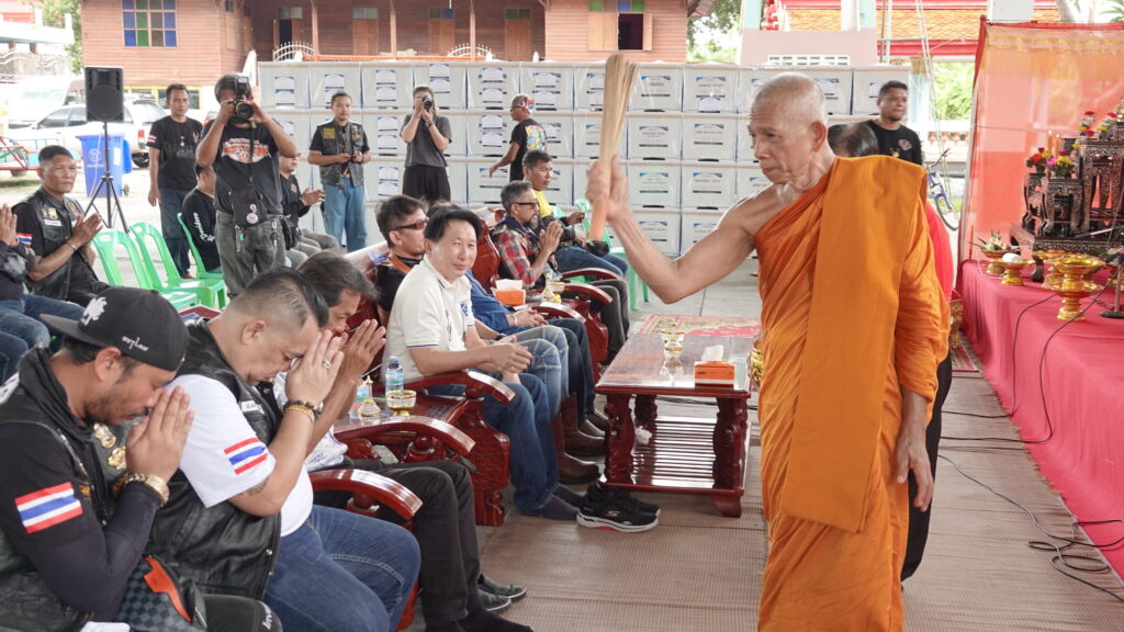 บรรยากาศเหล่าพี่น้องไบเกอร์คนรักการขับขี่รถจักรยานยนต์ฮาร์เล่ย์ ได้ร่วมกลุ่มกันที่ปั้มน้ำมันฯแยกไทดอย จำนวน 200 คัน ได้ขับขี่มาตามเส้นทางเลียบแม่น้ำเจ้าพระยาสายใน มาที่วัดบางโพธิ์ใน เพื่อมอบหีบศพแก่ศพยากไร้และไม่มีญาติ เป็นการร่วมบุญมอบหีบศพ เป็นการทำบุญให้กับผู้ที่ล่วงลับไปแล้ว และสามารถที่จะคลายทุกข์ใจให้กับญาติผู้ล่วงลับด้วย บางรายเป็นศพไร้ญาติน่าเวทนา การบริจาคหีบศพ สามารถช่วยสงเคราะห์แก่ผู้ตาย ดังนั้นการทำบุญหีบศพจึงมีอานิสงส์แรง และเชื่อว่าช่วยเสริมดวงชะตาให้ดีขึ้นมากมายหลายประการ
