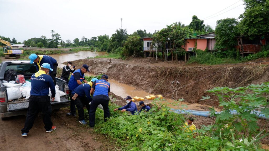 ได้นำกำลังพลจิตอาสาพระราชทาน พร้อมกำลังพลชุดบรรเทาสาธารณภัยเคลื่อนที่เร็ว จำนวน 12 นาย รถยนต์ช่วยเหลือผู้ประสบภัย จำนวน 1 คัน รถลากจูง จำนวน 1 คัน และรถยนต์บรรทุกเทท้าย จำนวน 1 คัน รถขุดตักแขนยาว จำนวน 1 คัน ร่วมกับ กองอำนวยการป้องกันและบรรเทาสาธารณภัยจังหวัดเพชรบูรณ์ การประปาส่วนภูมิภาคสาขาเพชรบูรณ์ และผู้นำชุมชนในพื้นที่บ้านปากปู่ เร่งเข้าดำเนินการเปิดทางน้ำ แม่น้ำป่าสักให้ไหลสะดวกขึ้น เพื่อสูบระบายน้ำเข้าสู่แหล่งน้ำขนาดใหญ่บริเวณด้านหลังองค์พระพุทธมหาธรรมราชา