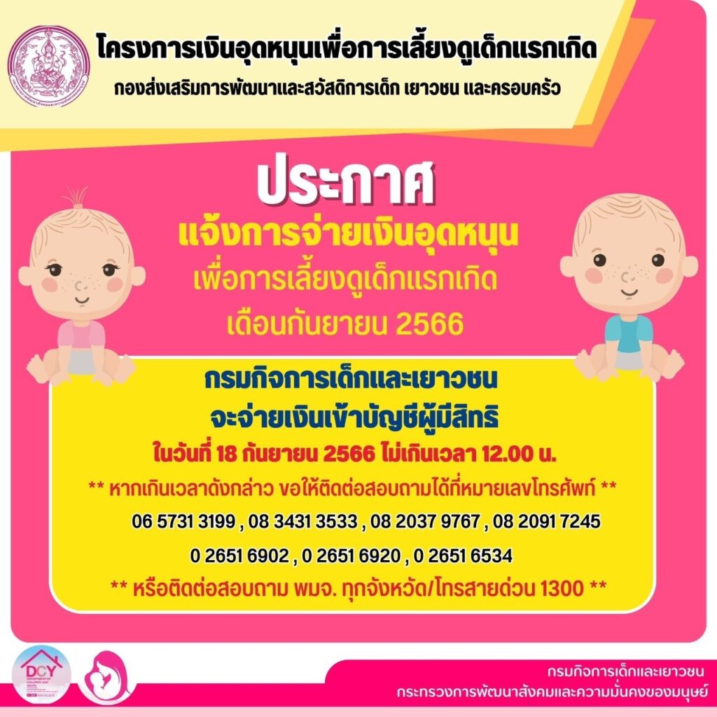 นางดุสิตา เชาวน์เลิศ พัฒนาสังคมและความมั่นคงของมนุษย์จังหวัดลพบุรี เปิดเผยว่า เงินอุดหนุนเด็กแรกเกิด จะสนับสนุนเงินให้กับครอบครัวที่มีเด็กอายุตั้งแต่แรกเกิดจนถึง 6 ปี ซึ่งได้เดือนละ 600 บาท ซึ่งจังหวัดลพบุรีมีเด็กแรกเกิดประมาณ 32,000 คน ที่ขึ้นทะเบียนเด็กแรกเกิดไว้ แต่จ่ายจริงๆ จะอยู่ที่ 23,000 คน เพราะแม่เด็กบางคนก็ไม่ลงทะเบียน ไม่เข้าสิทธิ์ หรือไม่เข้าเกณฑ์ เด็กบางคนก็อายุเกินเกณฑ์คือ 6 ขวบเต็มแล้วเข้าปีที่ 7 ทั้งนี้ คนที่จะได้รับสิทธิ์เด็กแรกเกิดเมื่อคลอดออกมาก็จะต้องไปลงทะเบียนที่ อบต. หรือเทศบาล และเตรียมเอกสารหลักฐานเพื่อยื่นใบคำร้อง อบต. หรือ เทศบาล ก็จะบันทึกข้อมูลพร้อมกับแนบเอกสารทั้งหมดเมื่อเสร็จก็จะมีการปิดประกาศ 15 วัน เพื่อเปิดโอกาสให้ ประชาชนมาคัดค้านหรือมาตรวจสอบคุณสมบัติ ถ้าเกิดว่าไม่เข้าเกณฑ์ก็จะไม่ได้แต่ว่าถ้าเกิดเข้าเกณฑ์ ก็จะส่งข้อมูลมาที่สำนักงานพัฒนาสังคมและความมั่นคงของมนุษย์ เพื่อยืนยันสิทธิ์อีกครั้งหนึ่ง โดยส่งข้อมูลเข้าศูนย์ข้อมูลของเด็กแรกเกิดกรมกิจการเด็กและเยาวชน เพื่อยืนยัน ซึ่งทางกรมฯ ก็จะทำเรื่องขอรับเงินอุดหนุนเด็กแรกเกิด ไปที่สำนักงบประมาณ และจะโอนเงินเข้ากับบัญชีของผู้ปกครองเด็กโดยตรง ตั้งแต่ปี 2559 ทุกคนก็จะได้เดือนละ 600 บาท แต่เมื่อวันที่ 10 กันยายน 2566 ที่ผ่านมา เงินไม่เข้า ทั้งนี้จะเป็นการของบประมาณล่วงหน้าใน 1 ปี บังเอิญว่าปีนี้ จำนวนเด็กที่เกิดมาใหม่มีจำนวนมากกว่าที่ตั้งงบประมาณไว้ ซึ่งจะรวบรวมทั้งหมดว่าเงินที่เราจะทำการขอมา 1 ก้อน มันยังขาดอยู่เท่าไหร่ก็จะตั้งเรื่องเข้าไปขอเป็น มติ ครม. เพื่อจะเอาเงินส่วนที่ขาดมาจัดสรร ซึ่งจากการประชุม ครม. เมื่อวันที่ 13 กันยายน ที่ผ่านมา ครม. ก็มีมติอนุมัติ กำหนดจ่ายเงินที่ในวันที่ 18 กันยายน ก่อนเที่ยง หากท่านไปกดแล้วเงินไม่เข้า สิ่งที่ต้องเช็คอันดับ 1 คือลูกของท่านครบ 6 ปีหรือยัง เพราะบางทีพอครบ 6 ปี เงินก็ตัดไปโดยอัตโนมัติ 2. ท่านไปยื่นเรื่องที่ อบต.หรือเทศบาล ครบ 15 วันหรือยังตามที่เขาประกาศ เขาก็จะแจ้งผู้มีสิทธิ์ แต่ถ้าเกิดว่าทุกอย่างที่ท่านทำแล้ว ตรวจสอบหมดแล้ว ยังไม่ได้รับภายในเที่ยงวันของวันที่ 18 กันยายน 2566 สามารถโทรสอบถามได้ที่สำนักงานพัฒนาสังคมและความมั่นคงของมนุษย์จังหวัด เจ้าหน้าที่จะทำการเช็คในระบบให้ว่าติดขัดส่วนไหนเพื่อดำเนินการแก้ไข