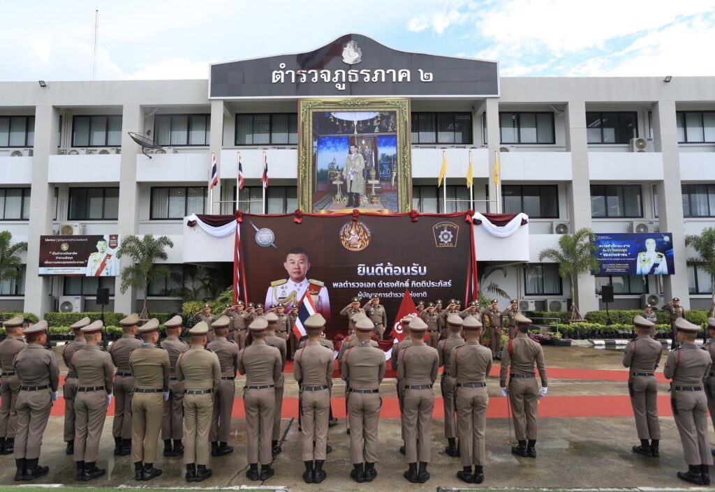 โดยมี พล.ต.ท.อิทธิพล อิทธิสารรณชัย ผบช.ภ.2,พล.ต.ต.สุรจิต ชิงนวรรณ์,พล.ต.ต.มานะ อินพิทักษ์,พล.ต.ต.ชัยต์พจน สูวรรณรักษ์,พล.ต.ต.ปรัชญา ประสานสุข,พล.ต.ต.อิทธิพร โพธิ์ทอง,พล.ต.ต.นันทวุฒิ สุวรรณละออง รอง ผบช.ภ.2,พล.ต.ต.ชมชวิณ ปุระธนานนท์ รอง ผบช.ภ.7 รรท.ผบก.ภ.จ.ชลบุรี ผบก.ในสังกัด บช.ภ.2 และ ข้าราชการตำรวจในสังกัด ให้การต้อนรับ