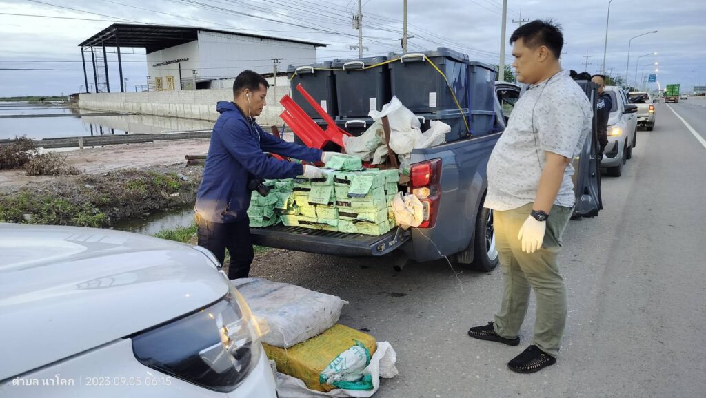 รายที่ 3 ตำรวจ บก.สกัดกั้นการลำเลียงยาเสพติด (บก.สกส.) และ ตำรวจ บก.ขส. บช.ปส. ได้ร่วมกันขยายผลจากการจับกุมขบวนการค้ายาเสพติดรายใหญ่ใน จ.พระนครศรีอยุธยา จนทราบว่า นายสมบูรณ์ ซึ่งอยู่ในขบวนการค้าไอซ์รายใหญ่ จะลำเลียงยาเสพติดจากพื้นที่ กรุงเทพฯ และภาคกลาง ไปส่งมอบให้กับลูกค้าทางพื้นที่ภาคใต้ และพื้นที่ใกล้เคียง จึงวางกำลังจับกุม จนกระทั่งวันที่ 5 ก.ย.66 เวลาประมาณ 05.40 น. ตำรวจ บก.สกส. และ บก.ขส. ได้พบรถกระบะ ISUZU รุ่น D-MAX สีเทา หมายเลขทะเบียน บว 16xx ชุมพร ขับขี่ไปตามถนนพระราม 2 จ.สมุทรสาคร จึงไล่ติดตามจับกุม จากการตรวจค้น พบยาเสพติดไอซ์ น้ำหนักประมาณ 149 กิโลกรัม ซุกซ่อนอยู่ภายในรถคันดังกล่าว ซึ่งมีนายสมบูรณ์ เป็นผู้ขับขี่ ซึ่งรับว่าลำเลียงยาเสพติดดังกล่าว ไปส่งให้ลูกค้าทางภาคใต้ ตำรวจ ปส. จึงจับกุมนายสมบูรณ์ พร้อมของกลางทั้งหมด นำส่งพนักงานสอบสวนดำเนินคดีตามกฎหมาย เพื่อขยายผลติดตามออกหมายจับบุคคลในเครือข่ายและยึดทรัพย์สินตามประมวลกฎหมายยาเสพติด พ.ศ.2564 ต่อไป