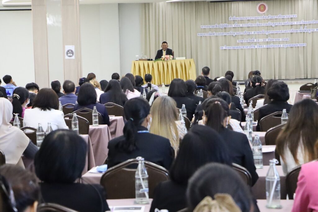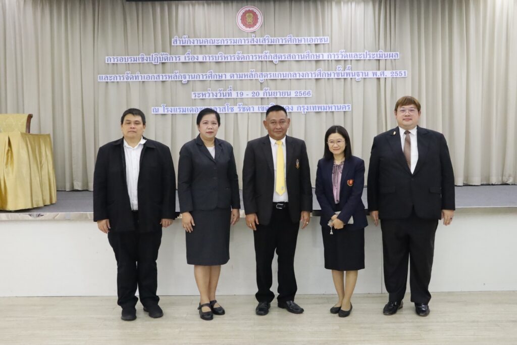 วันที่ 19 กันยายน 25566 เวลา 09.00 น. : นายคมกฤช จันทร์ขจร รองเลขาธิการคณะกรรมการส่งเสริมการศึกษาเอกชน (รองเลขาธิการ กช.) เป็นประธานเปิดการอบรมเชิงปฏิบัติการ เรื่อง การบริหารจัดการหลักสูตรสถานศึกษา การวัดและประเมินผล และการจัดทำเอกสารหลักฐานการศึกษา ตามหลักสูตรแกนกลางการศึกษาขั้นพื้นฐาน พ.ศ.2551 โดยมี นางภัทราพรรณ เล็งวัฒนากิจ ผู้อำนวยการกลุ่มงานโรงเรียนสามัญศึกษา จาก ดร.ชยพร กระต่ายทอง รองผู้อำนวยการสำนักวิชาการและมาตรฐานการศึกษา สำนักงานคณะกรรมการการศึกษาขั้นพื้นฐาน หัวหน้าทีมวิทยากร คณะทำงานฯ ผู้เข้าร่วมอบรมจำนวนทั้งสิ้น 190 คน เข้าร่วมในพิธี ณ โรงแรมเดอะ พาลาสโซ รัชดา เขตดินแดง กรุงเทพมหานคร
