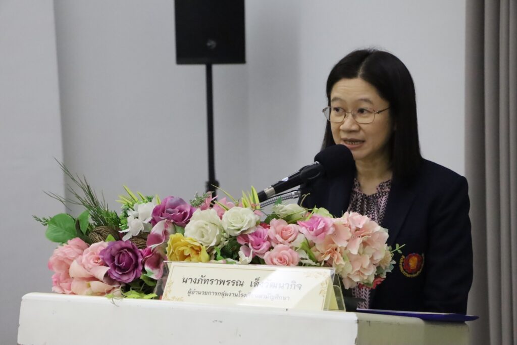 ด้าน นางภัทราพรรณ เล็งวัฒนากิจ กล่าวด้วยว่า ตามที่กระทรวงศึกษาธิการได้มีคำสั่งให้ใช้หลักสูตรแกนกลางการศึกษาขั้นพื้นฐาน พ.ศ. 2551 เมื่อวันที่ 11 กรกฎาคม 2551 และได้มีการปรับปรุงหลักสูตรโดยมีการกำหนดมาตรฐานการเรียนรู้และตัวชี้วัดฯ ในกลุ่มสาระการเรียนรู้คณิตศาสตร์ วิทยาศาสตร์ และสาระภูมิศาสตร์ ในกลุ่มสาระการเรียนรู้สังคมศึกษา ศาสนา และวัฒนธรรมขึ้นใหม่ ในหลักสูตรแกนกลางการศึกษาขั้นพื้นฐาน พ.ศ.2551 (ฉบับปรับปรุง พ.ศ.2560) นั้น จากการปรับปรุงหลักสูตรดังกล่าว ทำให้มีโรงเรียนเอกชนบางส่วนเกิดความสับสน และไม่เข้าใจในการเปลี่ยนแปลงดังกล่าว ส่งผลให้การบริหารจัดการหลักสูตรสถานศึกษา การวัดและประเมินผลการเรียนรู้ รวมถึงการจัดทำหลักฐานเอกสารการศึกษายังเกิดความผิดพลาด และ ไม่เป็นไปในทิศทางเดียวกัน ดังนั้น สำนักงานคณะกรรมการส่งเสริมการศึกษาเอกชน จึงได้จัดการอบรมเชิงปฏิบัติการครั้งนี้ขึ้น และต้องขอบคุณ ดร.ชยพร กระต่ายทอง รองผู้อำนวยการสำนักวิชาการและมาตรฐานการศึกษา สำนักงานคณะกรรมการการศึกษาขั้นพื้นฐาน ที่ได้อนุเคราะห์จัดทำหลักสูตรและเป็นวิทยากรในการอบรมในครั้งนี้ด้วย