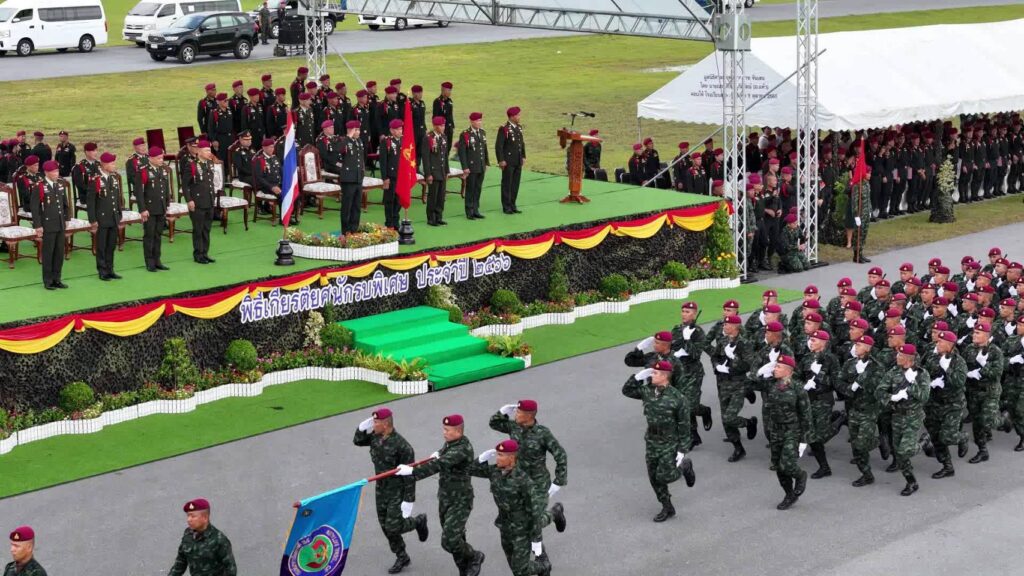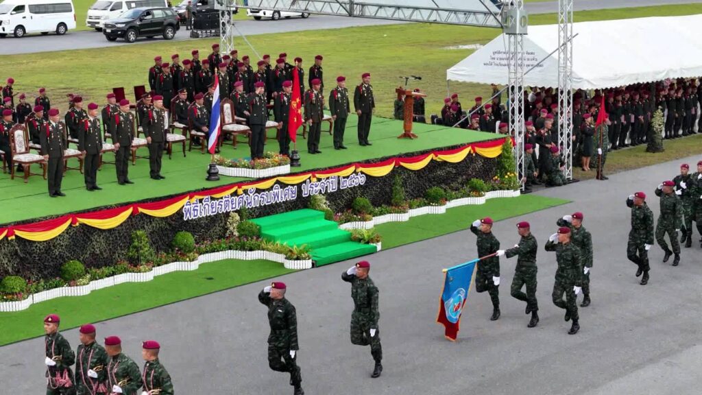 พลเอก ภูมิพัฒน์ จันทร์สว่าง ประธานคณะที่ปรึกษาพิเศษกองทัพบก เป็นประธาน ในพิธีสวนสนามเชิดชูเกียรติยศนักรบพิเศษ ประจำปี 2566 ณ สนามบินกรมรบพิเศษที่ 1 ค่ายวชิราลงกรณ์ ต.ป่าตาล อ.เมือง จ.ลพบุรี ซึ่งในพิธีดังกล่าวได้มีกำลังพลชุดปฏิบัติการพิเศษ จำนวน 12 นาย ทำการกระโดดร่มทางยุทธวิธี จากอากาศยาน ลงสู่ภาคพื้น ที่ระดับความสูง 8,000 ฟิต พร้อมทั้งมีตัวแทนทหารรบพิเศษที่จะเกษียณอายุราชการ กระทำพิธี “ส่งมอบปืนคืนร่ม” ให้กับหน่วย โดยมี พลโท ณัฐวุฒิ นาคะนคร ผู้บัญชาการหน่วยบัญชาการสงครามพิเศษ เป็นผู้แทนทหารรบพิเศษในการรับมอบ