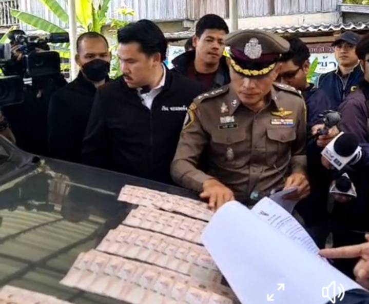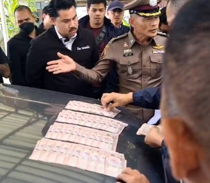 ซึ่งหลังจากที่รับเงินจากผู้เสียหายเเล้ว ขณะที่กำลังจะเดินขึ้นรถกระบะส่วนตัว ที่จอดอยู่บริเวณลานจอดรถของร้านอาหาร เพื่อเดินทางกลับ ทางเจ้าหน้าที่จึงซ้อนเเผนเข้าจับกุม โดยพบเงินของกลาง จำนวน 5 หมื่นบาท อยู่ในกระเป๋ากางเกงด้านขวาหลัง เป็นธนบัตรใบละ 1,000 บาท จำนวน 50 ฉบับ ซึ่งการตรวจสอบเลขธนบัตร ตรงตามที่ทำบันทึกของกลางไว้ พร้อมทั้งได้ตรวจค้นรถซึ่งก็ไม่พบสิ่งผิดกฎหมาย
