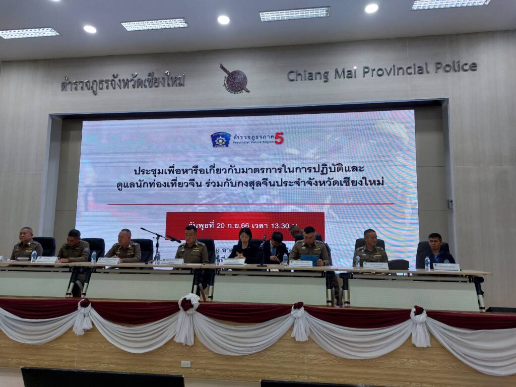 วันนี้ (20 ก.ย.66) เวลา 13.30 น. พล.ต.ท.ปิยะ ต๊ะวิชัย ผบช.ภ.5 ร่วมประชุมหารือแนวทางมาตรการรับนักท่องเที่ยวชาวจีนและคาซัคสถาน โดยได้เชิญ นางหยาง โจ่ว รักษาการกงสุลใหญ่แห่งสาธารณรัฐประชาชนจีนประจำจังหวัดเชียงใหม่ โดยที่ประชุมประกอบด้วยหน่วยงานที่เกี่ยวข้องได้แก่ บก.ตม.5 , บก.ทท.2 , การท่าอากาศยานเชียงใหม่ , จังหวัดเชียงใหม่ โดยมี พล.ต.ท.เฉลิมพล จินตรัตน์ ผทค.ฯ,พล.ต.ต.พฤทธพงษ์ ประยูรศิริ รอง ผบช.ภ.5, พล.ต.ต.วีรชน บุญทวี รอง ผบช.ภ.5 ,พล.ต.ต.ดุลยเดชา อาชวะสมิตระกูล ผบก.ภ.จว.เชียงราย , พล.ต.ต.ธวัชชัย พงษ์วิวัฒนชัย ผบก.ภ.จว.เชียงใหม่ , พล.ต.ต.วรพงษ์ คำลือ ผบก.สส.ภ.5 ,พล.ต.ต.ฐากูร นิ่มสมบุญ ผบก.ทท.2 ,พ.ต.อ.มานะ นาคทั่ง รอง ผบก.ตม.5นางสาวพวงทอง โยธาใหญ่ผู้อำนวยการกองป้องกันและบรรเทาสาธารณภัย องค์การบริหารส่วนจังหวัดเชียงใหม่ ,จ.อ.รังสรรค์ มะสุริน ฝ่ายรักษาความปลอดภัย ท่าอากาศยานเชียงใหม่ และ หน.สถานีตำรวจ ,รอง ผกก.ป.สภ.ฯ ในสังกัด ภ.จว.เชียงใหม่ เชียงราย ลำพูน ลำปาง รวมกว่า 250 นายเข้าร่วมประชุม ณ ห้องประชุม ภ.จว.เชียงใหม่