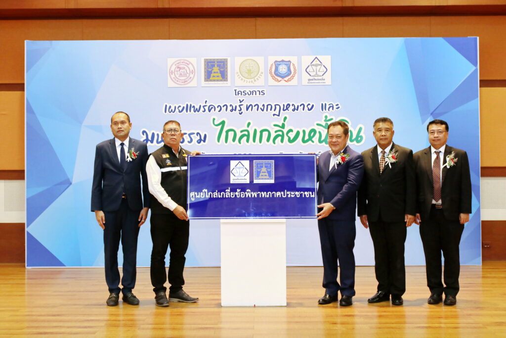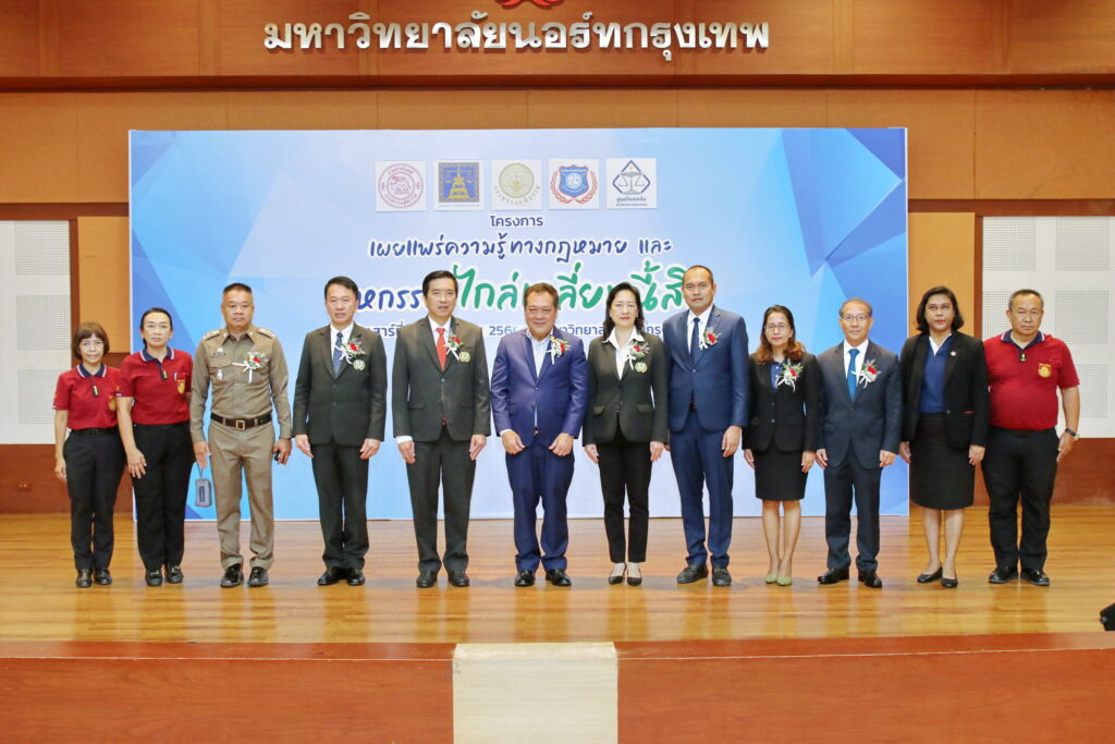 บรรยากาศในพิธีเปิดโครงการฯ มี นายเรืองศักดิ์ สุวารี อธิบดีกรมคุ้มครองสิทธิและเสรีภาพ , ดร.โฆษิต สุวินิจจิต ที่ปรึกษากรมคุ้มครองสิทธิและเสรีภาพ , พล.ต.ท.คํารณวิทย์ ธูปกระจ่าง นายก อบจ.ปทุมธานี , ร้อยตำรวจเอก ดร.ตรีลุพธ์ ธูปกระจ่าง นายกเทศมนตรีนครรังสิต ร่วมเป็นเกียรติในพิธีฯ สำหรับการจัดโครงการเผยแพร่ความรู้ทางกฎหมาย และมหกรรมไกล่เกลี่ยหนี้สิน มีผู้สนใจทั้งจากหน่วยงานภาครัฐบาล เอกชน รัฐวิสาหกิจ อาทิ กรมบังคับคดีจังหวัดปทุมธานี ยุติธรรมจังหวัดปทุมธานี กองทุนเงินให้กู้ยืมเพื่อการศึกษา ธนาคารพานิชย์ ประชาชนทั่วไป รวมถึงนักศึกษาคณะรัฐศาสตร์ คณะศิลปศาสตร์ จากมหาวิทยาลัยนอร์ทกรุงเทพ เข้าร่วมโครงการในครั้งนี้ ณ ห้องสัตตบงกช มหาวิทยาลัยนอร์ทกรุงเทพ วิทยาเขตรังสิต จำนวน 360 คน และเข้าร่วมโครงการผ่านระบบออนไลน์ Zoom จำนวนกว่า 400 คน อีกทั้งในงานยังมี พิธีรับมอบป้ายศูนย์ไกล่เกลี่ยข้อพิพาทภาคประชาชน ที่ได้ดำเนินการเปิดใหม่ และตั้งอยู่ในพื้นที่จังหวัดปทุมธานี จากท่านรัฐมนตรีว่าการกระทรวงยุติธรรม รวมจำนวน 11 ศูนย์ไกล่เกลี่ยฯ