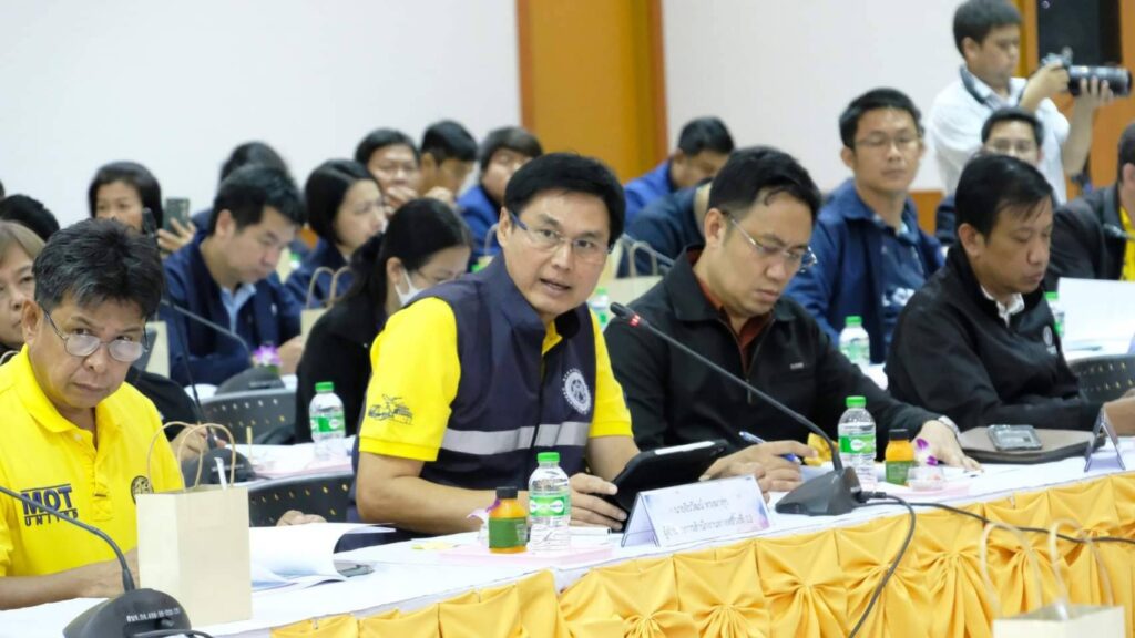 ต่อจากนั้น ได้เดินทางมายังห้องประชุม องค์การบริหารส่วนจังหวัดกาญจนบุรี นายสุรพงษ์ ปิยะโชติ รัฐมนตรีช่วยว่าการกระทรวงคมนาคม พร้อมด้วยนางสาวณภัทรา กมลรักษา ผู้ช่วยเลขานุการรัฐมนตรีว่าการกระทรวงคมนาคม รองปลัดกระทรวงคมนาคมในฐานะหัวหน้ากลุ่มภารกิจด้านการขนส่ง และหน่วยงานที่เกี่ยวข้อง ประชุมหารือเพื่อกำหนดแผนและแนวทางการจัดทำแผนบริหารจัดการระบายน้ำแก้ปัญหาน้ำท่วมขังรอการระบายในพื้นที่ชุมชน อำเภอเมืองกาญจนบุรี รวมถึงรับฟังสภาพปัญหาการจราจรและข้อเสนอแนะการแก้ปัญหาการจราจรเส้นทางสายหลัก เพื่อรองรับการเปิดใช้เส้นทางถนนมอร์เตอร์เวย์ สายบางใหญ่-กาญจนบุรี โดยเฉพาะบริเวณสี่แยกวังสารภี-ปากแพรก และบริเวณสี่แยกแก่งเสี้ยน ซึ่งถือเป็นเส้นทางคมนาคมที่นักท่องเที่ยวและประชาชนในพื้นที่ใช้ในการเดินทางและเป็นเส้นทางในการขนส่ง สินค้าเกษตรไปสู่ตลาดการค้าต่างๆ โดยมี ร้อยโท ทศพล ไชยโกมินทร์ ผู้ว่าราชการจังหวัดกาญจนบุรีพร้อมด้วยหัวหน้าส่วนราชการ องค์กรปกครองส่วนท้องถิ่น และผู้เกี่ยวข้อง ร่วมประชุมหารือ
