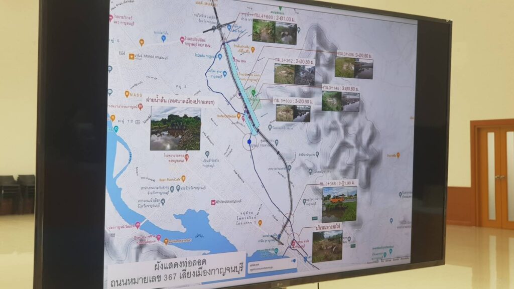 วันนี้(24กันยายน2566)เวลา13.30น.ที่ ถนนบายพาส พัฒนากาญจน์(บริเวณแก้มลิง) เลียบทางรถไฟ อ.เมือง จ.กาญจนบุรี นายสุรพงษ์ ปิยะโชติ รัฐมนตรีช่วยว่าการกระทรวงคมนาคม พร้อมด้วยนางสาวณภัทรา กมลรักษา ผู้ช่วยเลขานุการรัฐมนตรีว่าการกระทรวงคมนาคม รองปลัดกระทรวงคมนาคม ในฐานะหัวหน้ากลุ่มภารกิจด้านการขนส่งและหน่วยงานที่เกี่ยวข้อง ลงพื้นที่ตรวจราชการแก้ไขปัญหาน้ำท่วมและแก้ปัญหาการจราจรในพื้นที่จังหวัดกาญจนบุรี โดยมีร้อยโท ทศพล ไชยโกมินทร์ ผู้ว่าราชการจังหวัดกาญจนบุรี ให้การต้อนรับและร่วมรับฟังปัญหาฯ พร้อมด้วยหัวหน้าส่วนราชการ ผู้นำท้องถิ่น ร่วมกันบูรณาการประชุมหารือเพื่อกำหนดแผนและโครงการแก้ปัญหาโครงการระบบระบายน้ำท่วมถนนพัฒนาการ, โครงการสะพานข้ามแยกแก่งเสี้ยน, สะพานข้ามแยกวังสารภี, ระบบระบายน้ำท่วมหน้าห้างสรรพสินค้าโรบินสัน, องค์การบริหารส่วนจังหวัดกาญจนบุรี