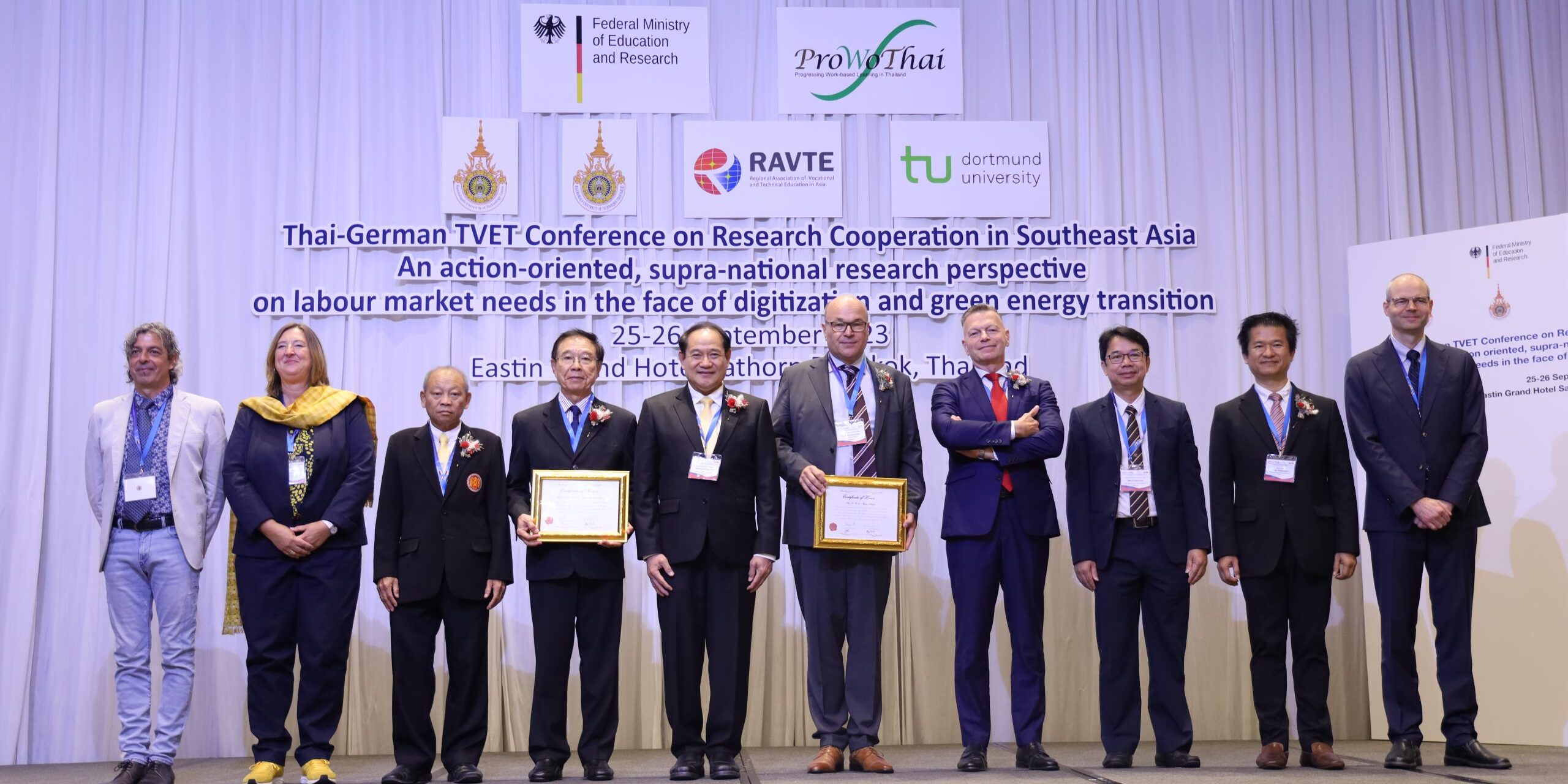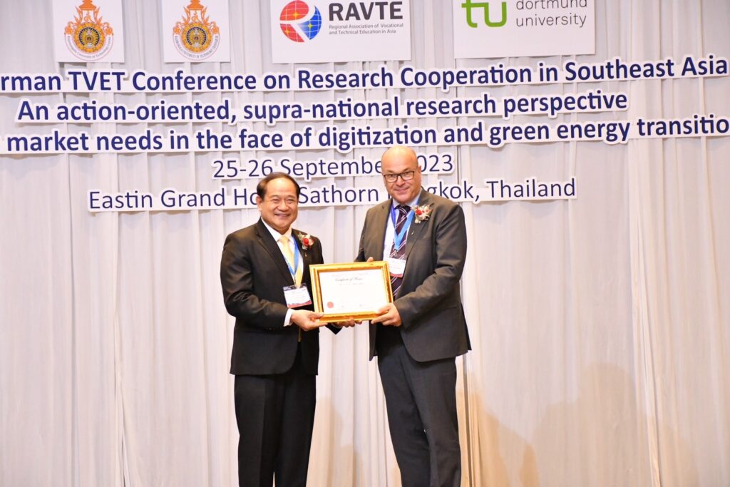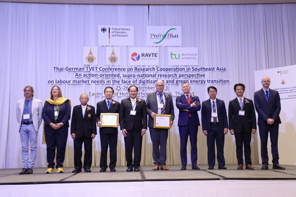 วันที่ 27 กันยายน 2566 ผู้สื่อข่าวรายงานว่า คณะครุศาสตร์อุตสาหกรรม มหาวิทยาลัยเทคโนโลยีราชมงคลธัญบุรี (มทร.ธัญบุรี) จ.ปทุมธานี ร่วมกับมหาวิทยาลัยเทคนิคศึกษาแห่งดอร์ทมุนด์ (TU Dortmund University) สหพันธรัฐเยอรมนี พร้อมด้วย มทร.ล้านนา จัดประชุมวิชาการระดับนานาชาติ “Thai-German TVET Conference on Research Cooperation in Southeast Asia 2023” ระหว่างวันที่ 25-26 กันยายน 2566 เพื่อเป็นเวทีแลกเปลี่ยนผลการศึกษาวิจัยการพัฒนาการอาชีวศึกษาและการจัดการศึกษา ด้านวิชาชีพ ในภูมิภาคเอเชียตะวันออกเฉียงใต้ ณ โรงแรม อิสติน แกรนด์ กรุงเทพ ซึ่งมีนักวิจัย นักวิชาการ นักศึกษาสนใจ เข้าร่วมกว่า 200 คน