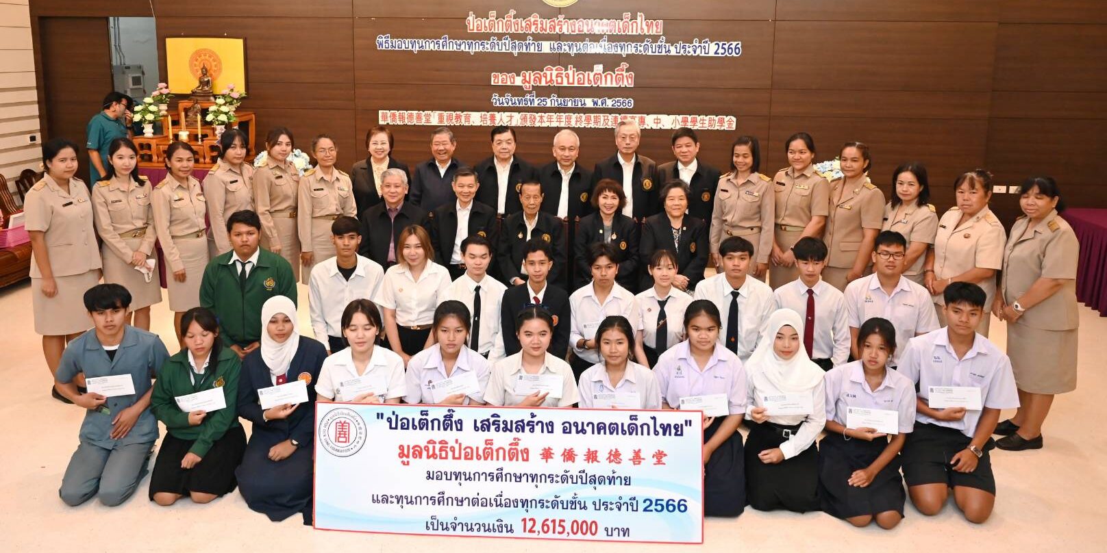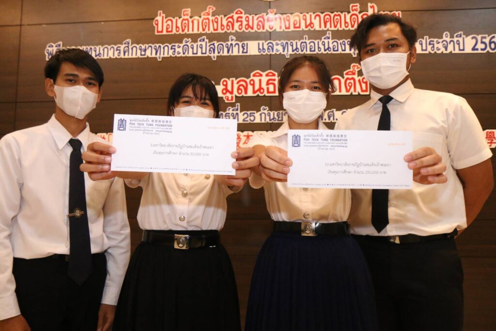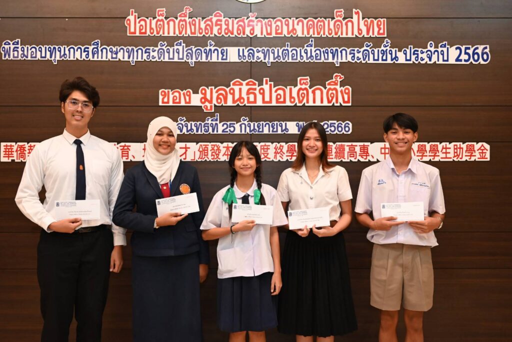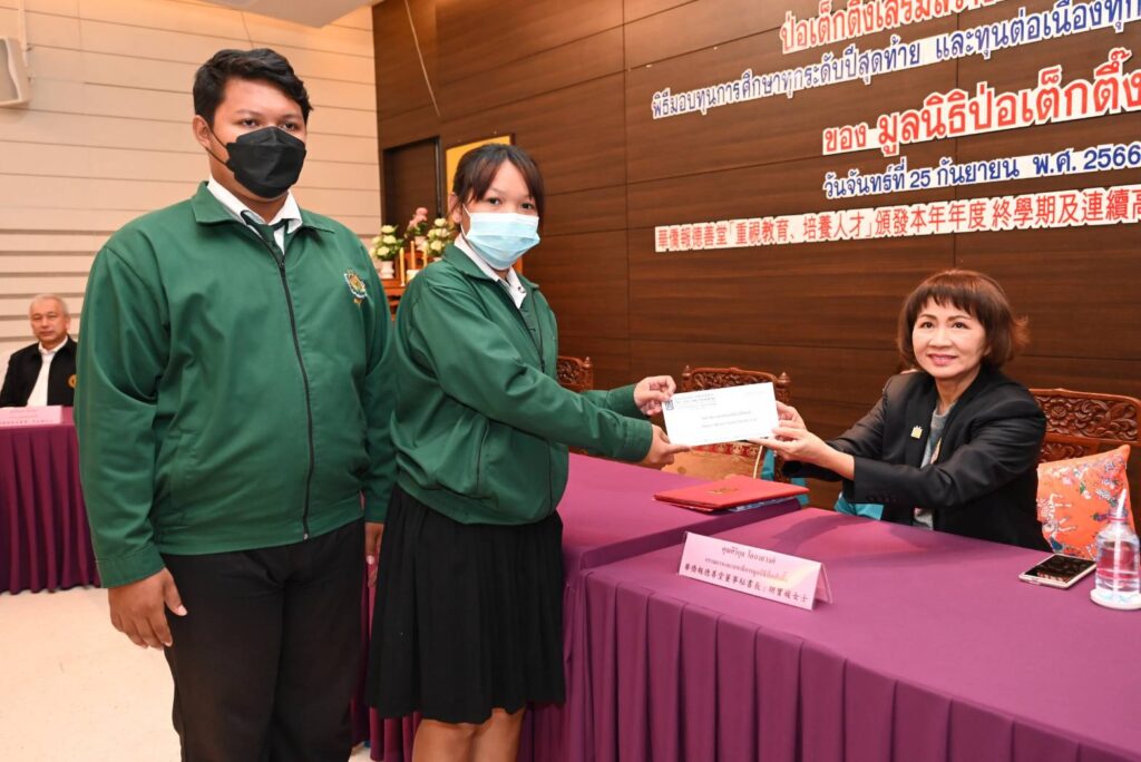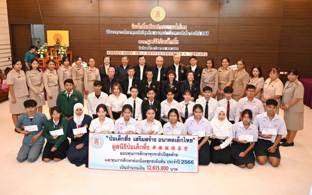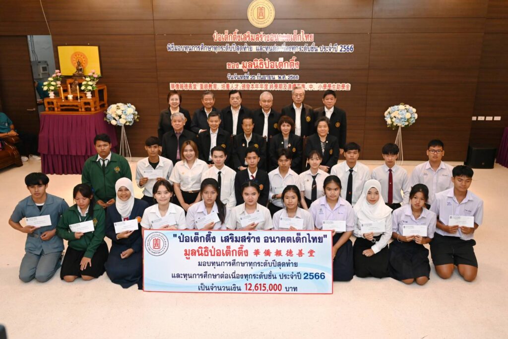 เมื่อ (วันจันทร์ที่ 25 กันยายน 2566 เวลา 10.00 น.) มูลนิธิป่อเต็กตึ๊ง นำโดย นายวิเชียร เตชะไพบูลย์ ประธานกรรมการ เป็นประธานในพิธี นายวิชิต ชินวงศ์วรกุล รองประธานกรรมการ นางศิริกุล โอภาสวงศ์ กรรมการและเลขาธิการ พร้อมด้วย คณะกรรมการมูลนิธิฯ และผู้ช่วยกรรมการมูลนิธิฯ ร่วมในพิธีมอบทุนการศึกษาทุกระดับปีสุดท้าย และทุนการศึกษาต่อเนื่องทุกระดับชั้น ประจำปี 2566 ให้แก่นักเรียน นักศึกษาที่ประพฤติดีแต่ขาดแคลนทุนทรัพย์ จำนวน 156 สถาบัน 910 ทุน รวมงบประมาณ 12,615,000 บาท (สิบสองล้านหกแสนหนึ่งหมื่นห้าพันบาทถ้วน) เพื่อให้เยาวชนได้รับโอกาสทางการศึกษาอย่างเท่าเทียมโดยไม่ต้องละทิ้งหรือยุติการศึกษาลงเพราะขาดแคลนทุนทรัพย์ เติมเต็มความมุ่งหวังในชีวิต เติบโตพร้อมมีวิชาความรู้ สร้างอนาคตของตนเองและครอบครัว เป็นคนดีของสังคมและประเทศชาติ อีกทั้งยังเป็นการช่วยเหลือแบ่งเบาภาระของผู้ปกครอง โดยมีเยาวชน และผู้แทนจากสถาบันการศึกษา เป็นตัวแทนรับมอบ ณ ห้องประชุมชั้น 2 อาคาร 2 มูลนิธิป่อเต็กตึ๊ง พลับพลาไชย กรุงเทพฯ