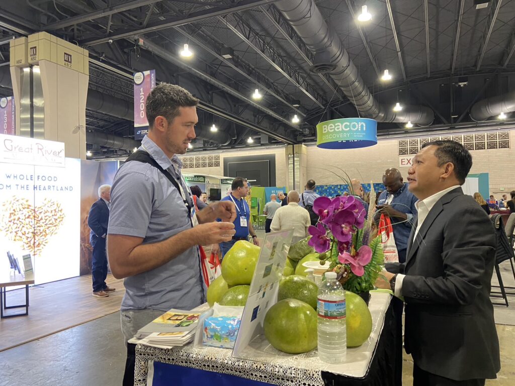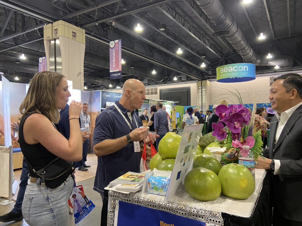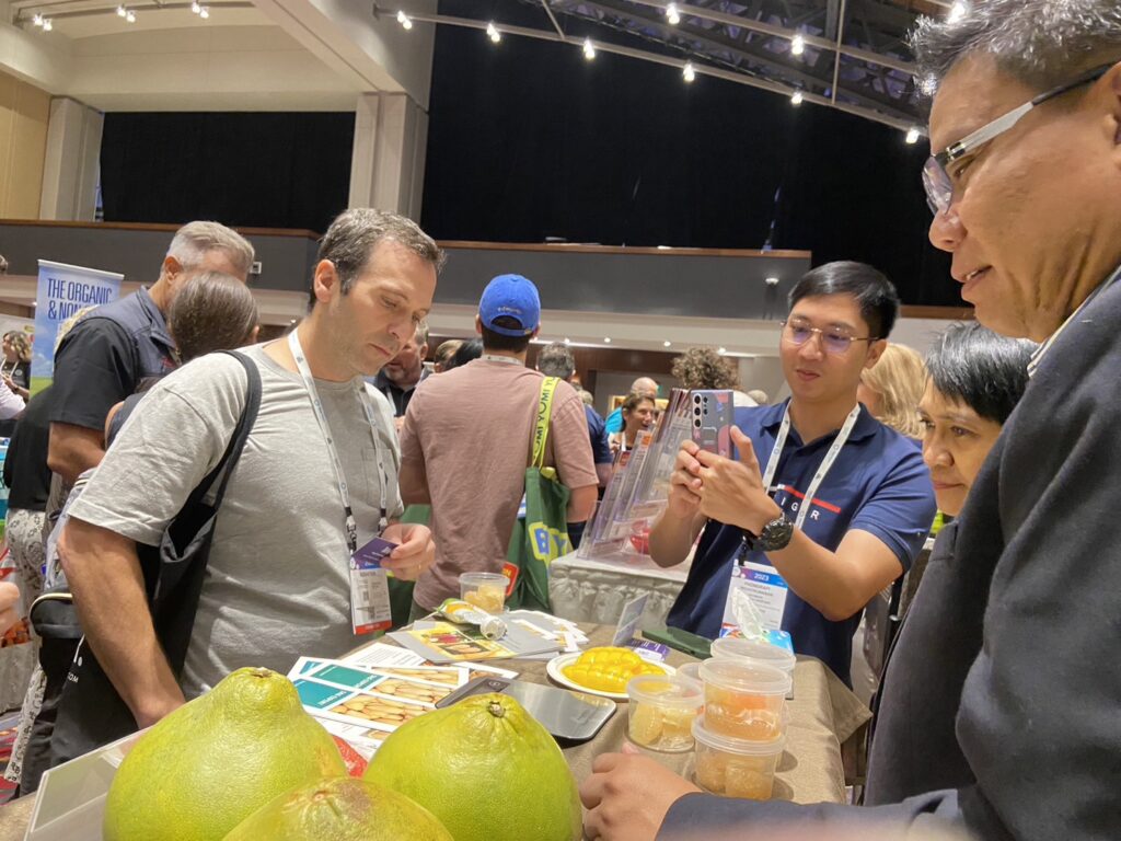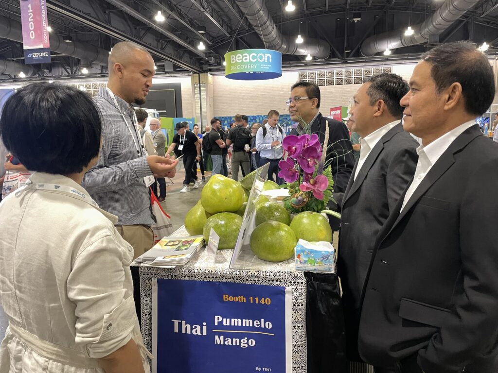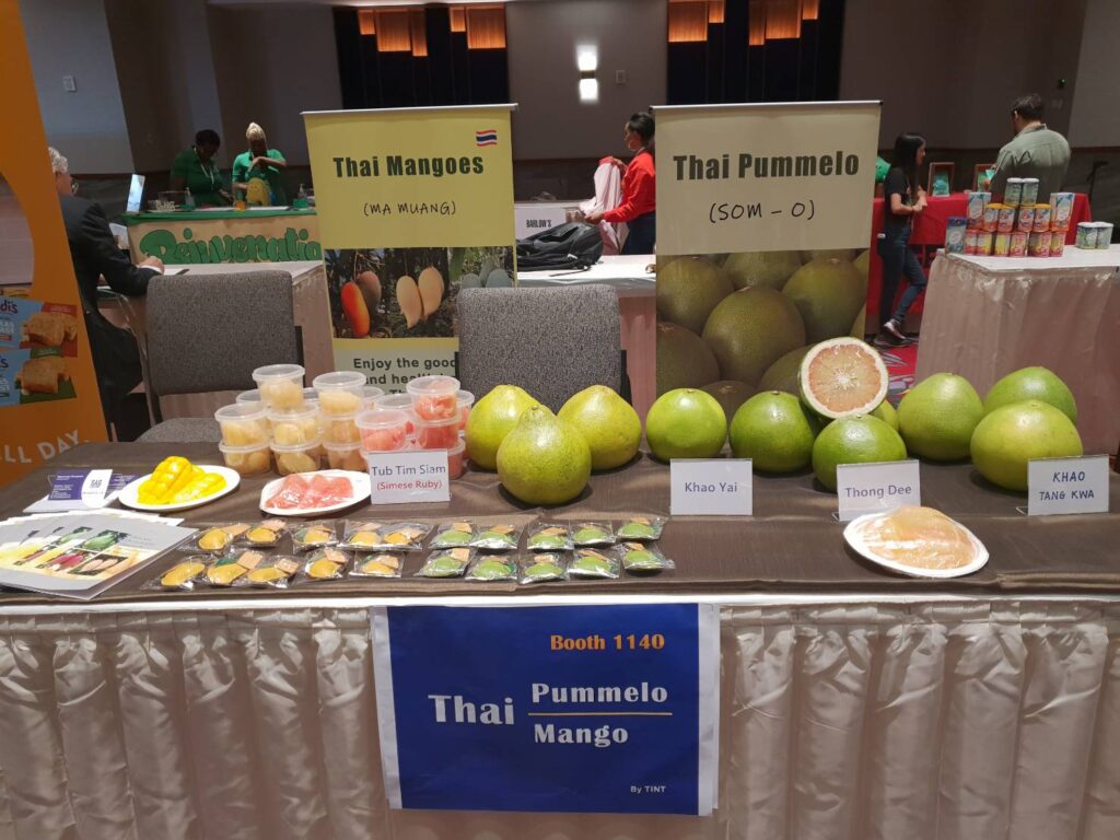 สำหรับงาน Natural Products Expo East นั้น เป็นงานที่จัดขึ้นเป็นประจำทุกปีในช่วงฤดูใบไม้ร่วง (Fall) ของประเทศสหรัฐอเมริกา เป็นงานแสดงเกี่ยวกับอุตสาหกรรมผลิตภัณฑ์จากธรรมชาติ ผลิตภัณฑ์เกษตรอินทรีย์ ผัก ผลไม้ ผลิตภัณฑ์เพื่อสุขภาพ และผลิตภัณฑ์อาหารเสริมต่างๆ จัดขึ้น ณ เมืองฟิลาเดลเฟีย รัฐเพนซิลเวเนีย ประเทศสหรัฐอเมริกา ในระหว่างวันที่ 20-23 กันยายน พ.ศ.2566 มีผู้แสดงสินค้ากว่า 1,500 ราย จากหลายประเทศทั่วโลก มีผู้เข้าร่วมแสดงผลงาน (ผู้เชี่ยวชาญด้านอุตสาหกรรม) กว่า 29,000 ราย เป็นงานแสดงสินค้าที่มีศักยภาพสูงและคาดว่าจะมีผู้เข้าร่วมงานเพื่อเจรจาธุรกิจจากทั้งในสหรัฐอเมริกาและประเทศต่างๆ ทั่วโลก ไม่ต่ำกว่า 50,000 คน โดย (วช.) และทีมวิจัยจึงนำส้มโอจำนวน 4 สายพันธุ์ ได้แก่ ทองดี ขาวแตงกวา ขาวใหญ่ และทับทิมสยาม ไปออกบูธเพื่อเปิดตัว นำเสนอ และแนะนำส้มโอไทยให้ผู้บริโภคได้รู้จัก ได้ทดลองชิมรสชาติ พบว่า ผู้บริโภคให้การยอมรับและชื่นชอบรสชาติและสีสันของส้มโอไทยเป็นอย่างมาก นอกจากนี้ยังได้พบและเจรจาการค้ากับภาคเอกชนในหลายประเทศ เป็นการสร้างเครือข่ายกับผู้ขายในอุตสาหกรรมเดียวกัน ทำให้สามารถเปิดตลาดสหรัฐฯ ได้เพิ่มมากขึ้น