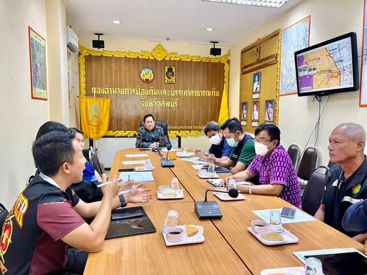 วันที่ 27 กันยายน 2566 เวลา 10.00 น. ที่ห้องประชุมนิรภัย สำนักงานป้องกันและบรรเทาสาธารณภัยจังหวัดลพบุรี ชั้น 2 ศาลากลางจังหวัดลพบุรี นายวิรพัฒน์ อ่อนสุระทุม หัวหน้าสำนักงานป้องกันและบรรเทาสาธารณภัยจังหวัดลพบุรี เป็นประธานประชุมหารือร่วมกับหน่วยงานที่เกี่ยวข้อง เพื่อปฏิบัติการแก้ไขปัญหาผักตบชวาและวัชพืชในแม่น้ำลพบุรี ที่ส่งผลต่อคุณภาพของน้ำและกีดขวางทางน้ำ โดยมีหน่วยงานที่เกี่ยวข้อง ประกอบด้วย สำนักงานป้องกันและบรรเทาสาธารณภัยจังหวัดลพบุรี,โครงการชลประทานจังหวัดลพบุรี,สำนักงานโยธาธิการและผังเมืองจ.ลพบุรี, สำนักงานเจ้าท่าภูมิภาคสาขาลพบุรี, อำเภอเมืองลพบุรี, โครงการส่งน้ำและบำรุงรักษาโคกกระเทียม และองค์กรปกครองส่วนท้องถิ่นที่เกี่ยวข้อง ซึ่งที่ประชุมได้มีข้อสรุป คือ ขอรับการสนับสนุนเครื่องจักร อุปกรณ์ในการดำเนินการจากสำนักงานชลประทานที่ 10 , โครงการชลประทานลพบุรี,องค์การบริหารส่วนจังหวัดลพบุรี และเทศบาลเมืองลพบุรี เพื่อดำเนินการขุดลอกผักตบชวาและวัชพืชดังกล่าว โดยหน่วยงานที่เกี่ยวข้อง กำหนดลงพื้นที่เพื่อวางแผนทรัพยากร และมอบหมายภารกิจให้หน่วยงานรับผิดชอบ ในวันศุกร์ที่ 29 กันยายน 2566 เวลา 10.00 น. ที่ องค์การบริหารส่วนตำบลพรหมมาสตร์ อ.เมืองลพบุรี จ.ลพบุรี และกำหนดกำจัดผักตบชวา ในแม่น้ำลพบุรี ในพุธที่ 4 ตุลาคม 2566 โดยจะเริ่มดำเนินการตั้งแต่ประตูระบายน้ำบางลี่ คลองระบายชัยนาท-ป่าสัก 3 ถึง ประตูระบานน้ำโพธิ์เก้าต้น แม่น้ำลพบุรี