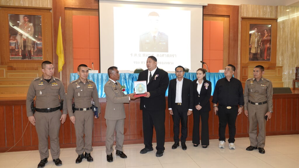 วันที่ 29กันยายน 2566 ที่ห้องประชุมเทศบาลเมืองท่าโขลง ตำบลคลองหนึ่ง อำเภอคลองหลวง จังหวัดปทุมธานี นายยุทธศักดิ์ ชูประเสริฐ (จ่ายุทธ) ประธานคณะกรรมการตรวจสอบและติดตามการบริหารงานตำรวจ (กต.ตร.) สถานีตำรวจภูธรคลองหลวง , ที่ปรึกษาพิเศษนายกองค์องค์การบริหารส่วนจังหวัดปทุมธานี และที่ปรึกษารัฐมนตรีว่าการกระทรวงสาธารณสุข เป็นประธานมอบใบประกาศเกียรติคุณแก่ข้าราชการตำรวจที่ปฏิบัติหน้าที่ดีเด่น และพิธีมอบโล่ ประกาศเกียรติคุณ และของที่ระลึกแก่ข้าราชการตำรวจที่เกษียณอายุราชการ ประจำปี 2566 พร้อมเลี้ยงแสดงความยินดีในวาระข้าราชการตำรวจเกษียณอายุราชการ
