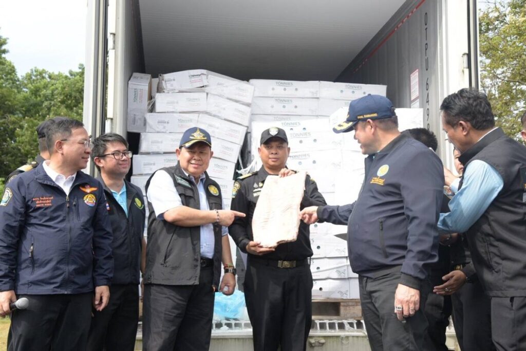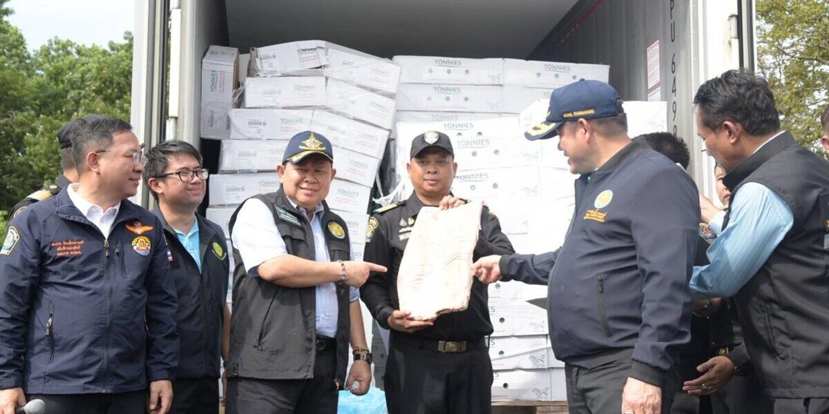 “การจับเนื้อเถื่อน เป็นนโยบายของกระทรวงเกษตรและสหกรณ์ ซึ่งการดำเนินการในวันนี้ เกิดจากความร่วมมือทุกภาคส่วน ทุกหน่วยงาน ทั้งเจ้าหน้าที่กรมปศุสัตว์ ตำรวจ กรมศุลกากร เป็นการปฏิบัติหน้าที่อย่างถูกต้อง การทุจริตคอร์รัปชั่น การลักลอบนำเข้าทั้งเนื้อไก่ ขาไก่ เนื้อสุกร เนื้อโค เนื้อกระบือ เป็นการบ่อนทำลายเสถียรภาพด้านราคา มาตรฐาน คุณภาพ สุขภาพร่างกายของผู้บริโภค หากตรวจพบให้จับอย่างเดียวและดำเนินคดีให้ถึงที่สุด ไม่ต้องมาเคลียร์ จะไม่ยอมให้มีการกระทำผิดเกิดขึ้นอย่างเด็ดขาด” ร้อยเอก ธรรมนัส กล่าวย้ำ