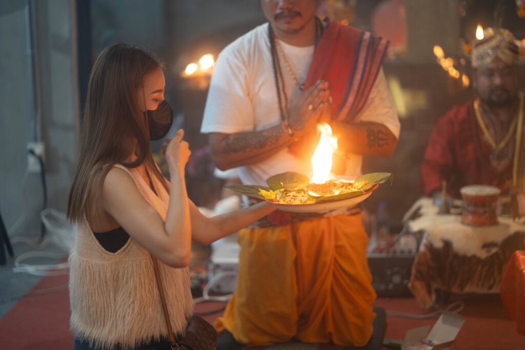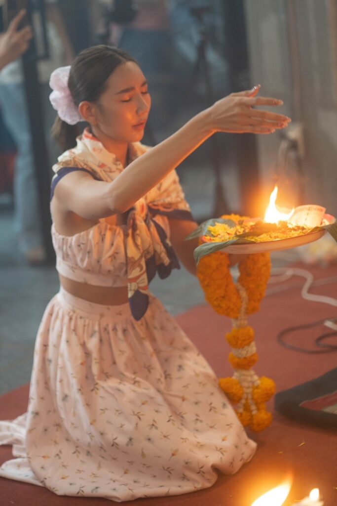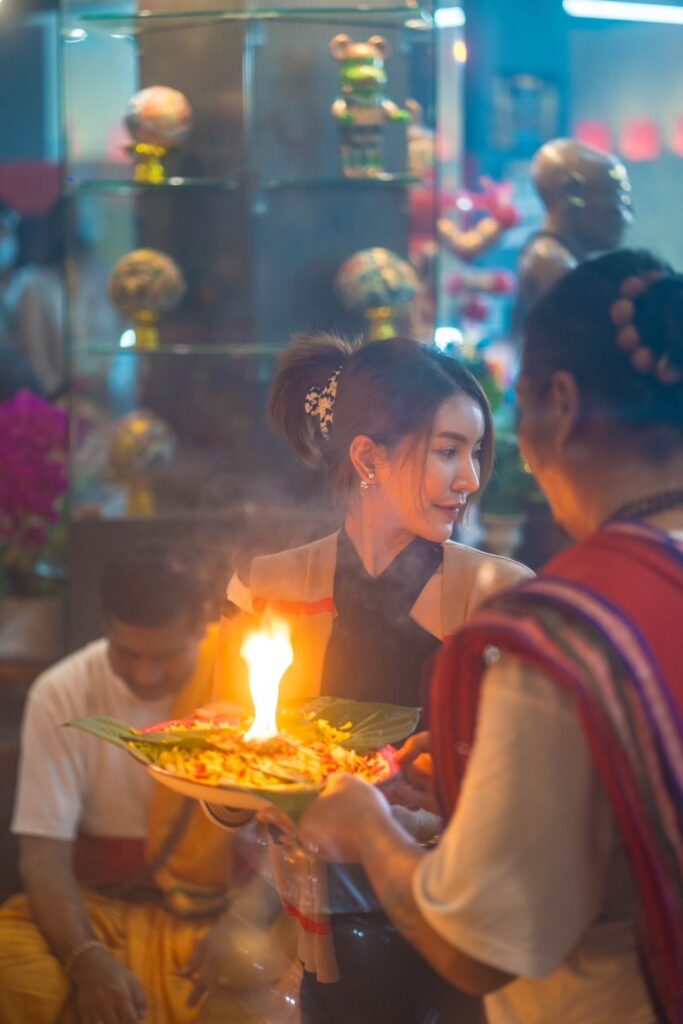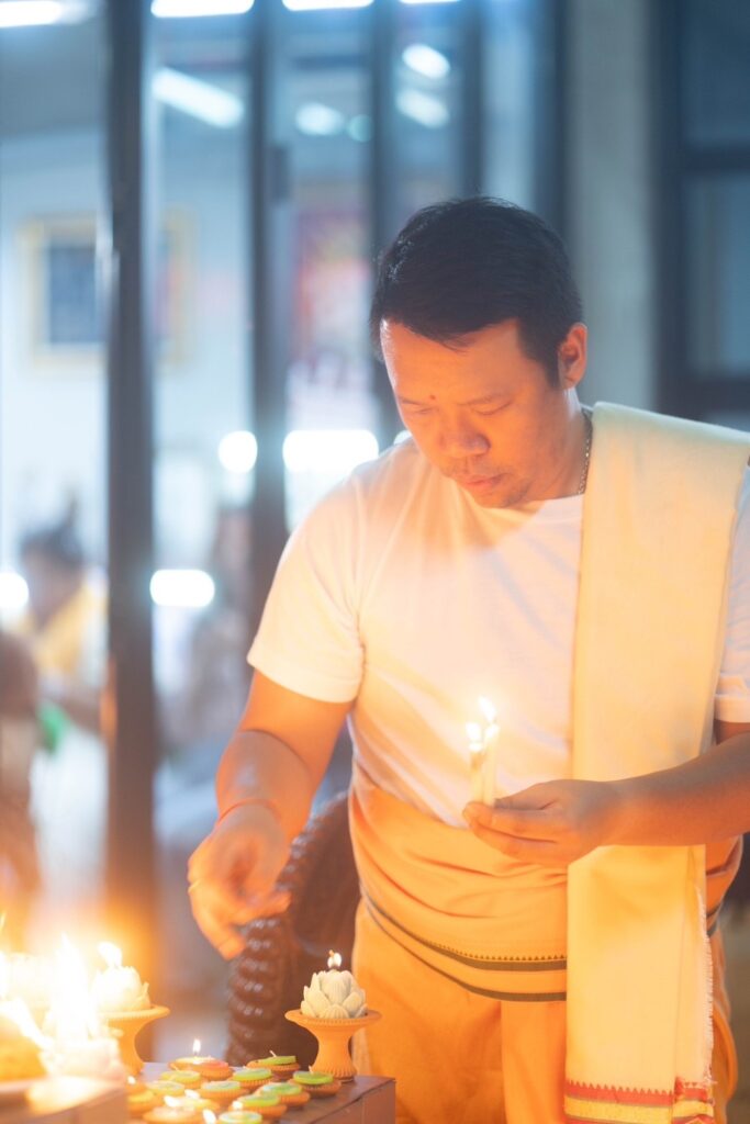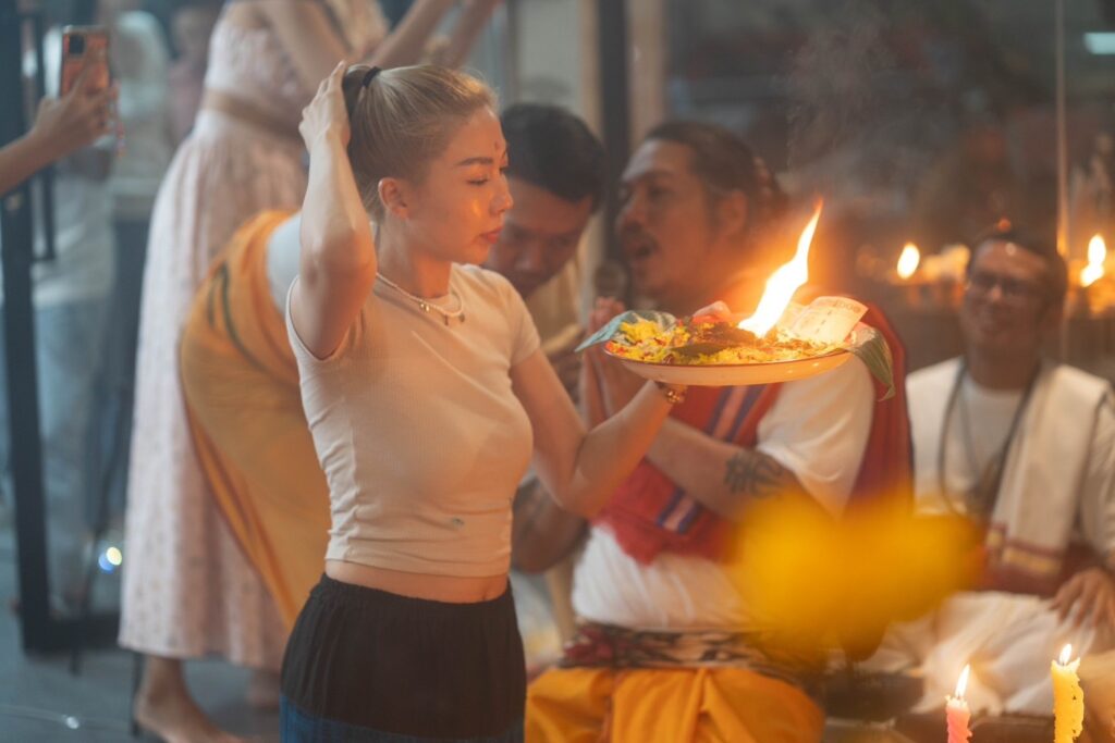 • ในการนี้ ได้จัดพิธีสวดแบบฮินดูโดยการนำสวดของอาจารย์ปืน มนต์ฮินดู และเหล่าคณะพราหมณ์ เพื่อเป็นการสักการะขอพรแด่องค์พ่อพระพิฆเนศในช่วงเทศกาลคเณศจตุรถี ผู้ซึ่งประทานความเมตตา และความสำเร็จ หลังจากนั้นได้มีการทำพิธีจุดเทียนแบบโบราณ ซึ่งการจุดเทียนครั้งนี้เป็นพิธีที่มีความเชื่อกันว่า การจุดเทียนจะทำให้กับผู้ที่ร่วมพิธี หรือผู้ที่ฝากชื่อนามสกุลไว้ มีความสว่างไสวโชติช่วง อีกทั้งจะช่วยเสริมในเรื่องของโชคลาภ เงินทอง และการงาน ให้สำเร็จ