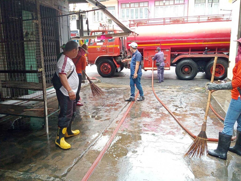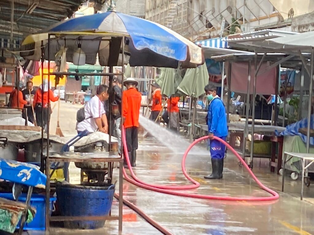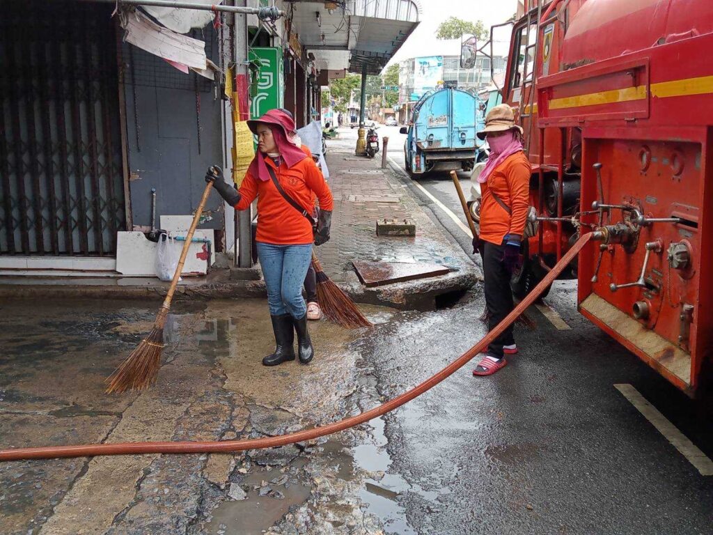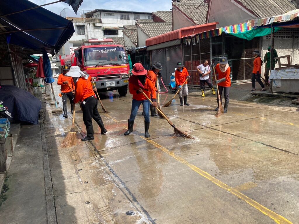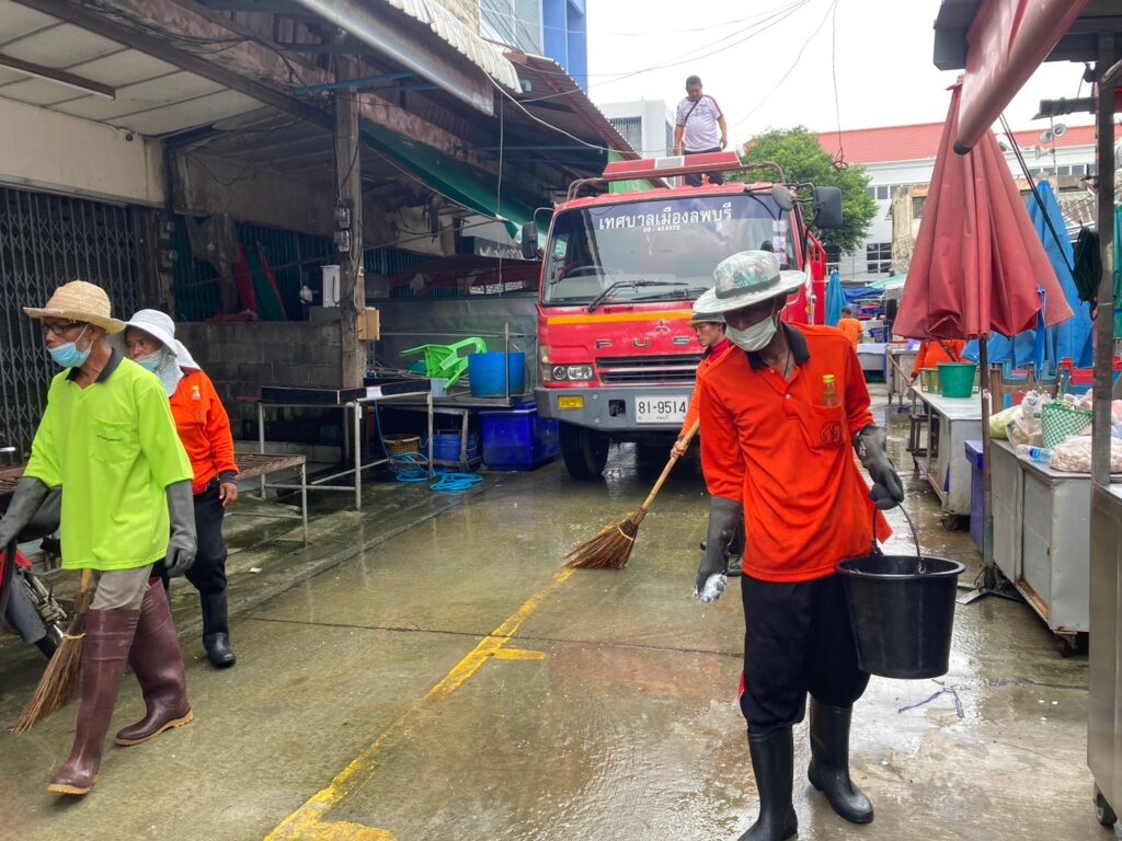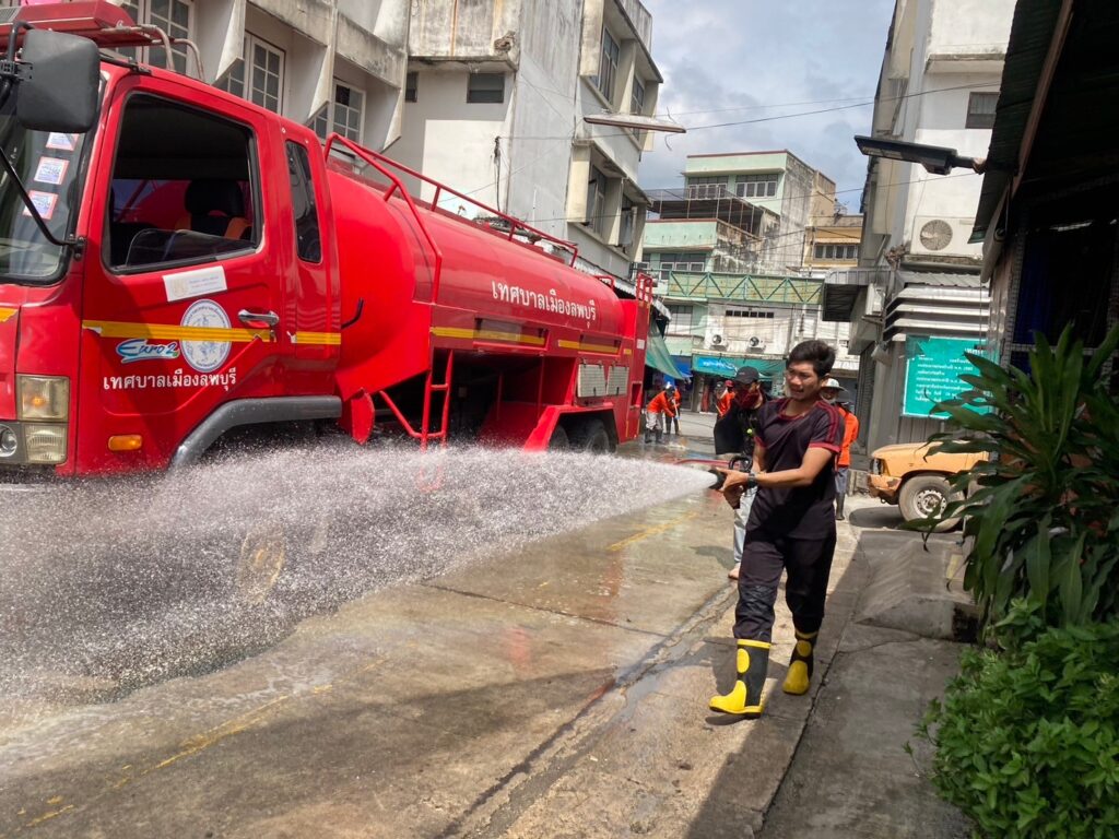 นายจำเริญ สละชีพ นายกเทศมนตรีเมืองลพบุรี มอบให้ นายอนุสรณ์ อัศวสงคราม รองนายกเทศมนตรีเมืองลพบุรี ติดตาม ควบคุม เจ้าหน้าที่กองสาธารณสุขและสิ่งแวดล้อมเทศบาลเมืองลพบุรี และเจ้าหน้าที่งานป้องกันและบรรเทาสาธารณภัยเทศบาลเมืองลพบุรี ในการล้างถนนหลังร้านประตูทองวัฒนา และพื้นถนนตลาดสดเทศบาล ตลาดเช้าบริเวณหน้าวัดเสาธงทองตลอดเส้น เพื่อชำระล้างสิ่งสกปรก เชื้อโรค พร้อมทั้งเน้นย้ำให้พ่อค้า แม่ค้า ช่วยกันรักษาความสะอาด รวมทั้งการกำจัดขยะอย่างถูกวิธี สำหรับการล้างทำความสะอาดตลาด ทางเทศบาลเมืองลพบุรี ได้ดำเนินการอย่างต่อเนื่อง เพื่อรักษาความสะอาดตามหลักสุขาภิบาล โดยการดำเนินการในครั้งนี้ เจ้าหน้าที่กองสาธารณสุขและสิ่งแวดล้อมเทศบาลเมืองลพบุรี ได้ใช้โซดาไฟเทบนพื้น ก่อนที่เจ้าหน้าที่งานป้องกันและบรรเทาสาธารณภัยเทศบาลเมืองลพบุรี จะนำรถดับเพลิงฉีดน้ำ และให้เจ้าหน้าที่กองสาธารณสุขและสิ่งแวดล้อมเทศบาลเมืองลพบุรี ทำการกวาดทำความสะอาดอีกครั้ง