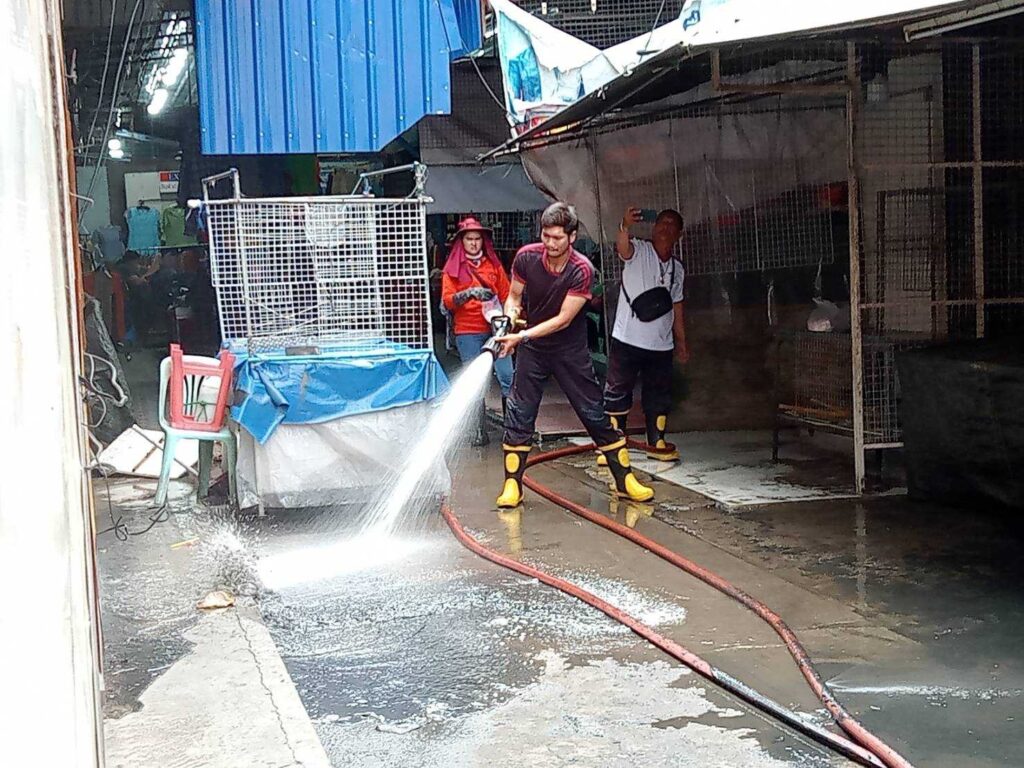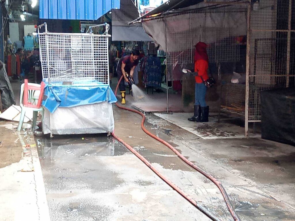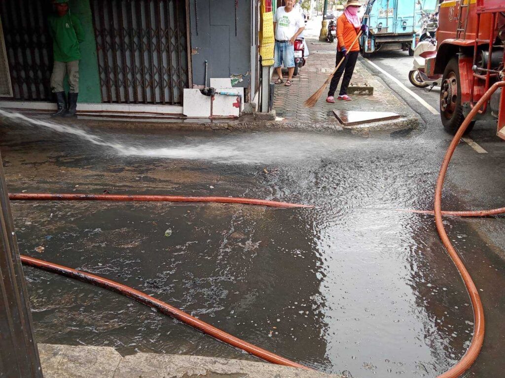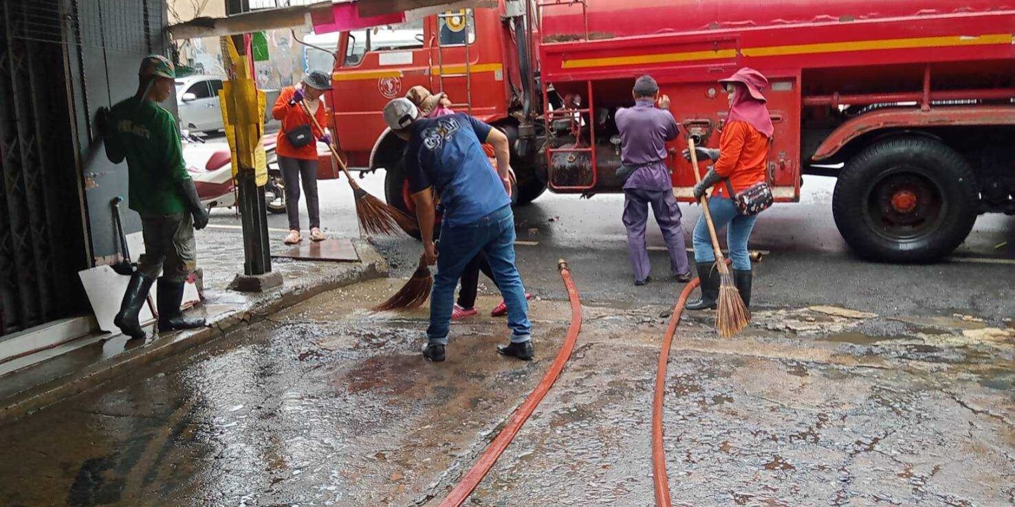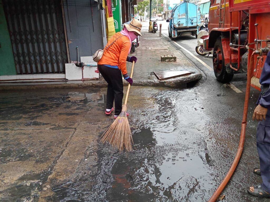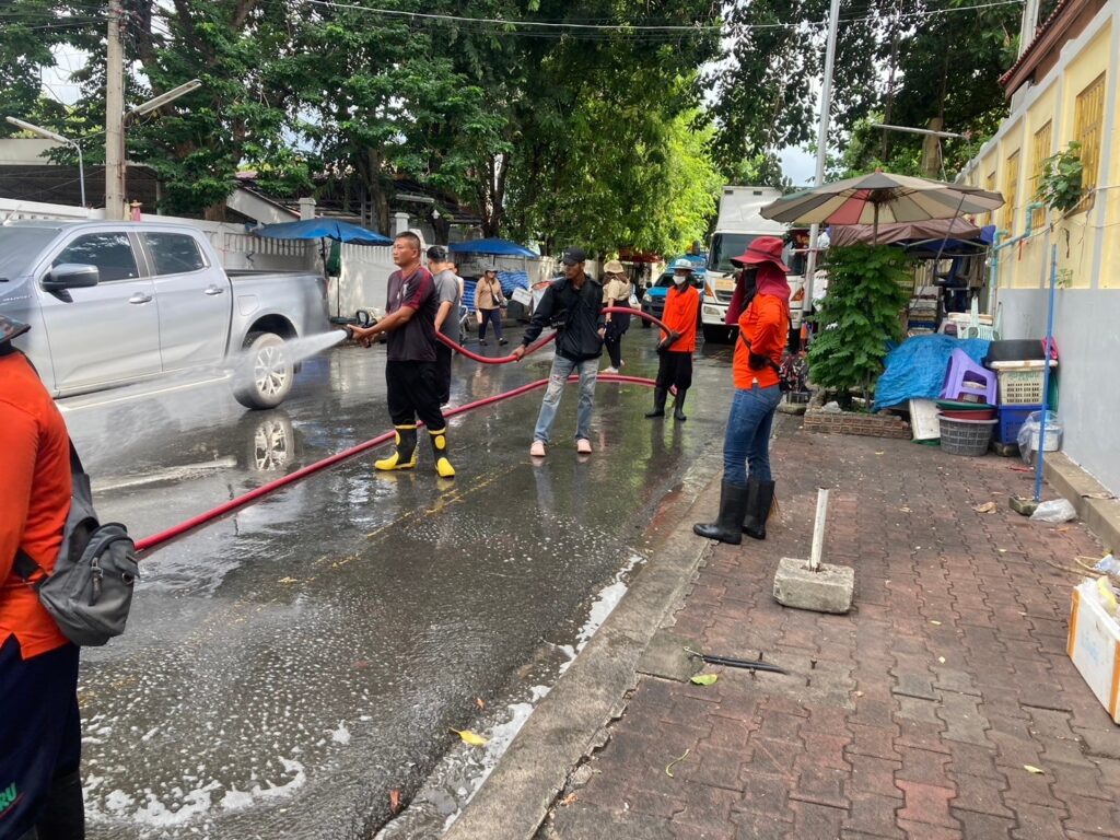นายจำเริญ สละชีพ นายกเทศมนตรีเมืองลพบุรี มอบให้ นายอนุสรณ์ อัศวสงคราม รองนายกเทศมนตรีเมืองลพบุรี ติดตาม ควบคุม เจ้าหน้าที่กองสาธารณสุขและสิ่งแวดล้อมเทศบาลเมืองลพบุรี และเจ้าหน้าที่งานป้องกันและบรรเทาสาธารณภัยเทศบาลเมืองลพบุรี ในการล้างถนนหลังร้านประตูทองวัฒนา และพื้นถนนตลาดสดเทศบาล ตลาดเช้าบริเวณหน้าวัดเสาธงทองตลอดเส้น เพื่อชำระล้างสิ่งสกปรก เชื้อโรค พร้อมทั้งเน้นย้ำให้พ่อค้า แม่ค้า ช่วยกันรักษาความสะอาด รวมทั้งการกำจัดขยะอย่างถูกวิธี สำหรับการล้างทำความสะอาดตลาด ทางเทศบาลเมืองลพบุรี ได้ดำเนินการอย่างต่อเนื่อง เพื่อรักษาความสะอาดตามหลักสุขาภิบาล โดยการดำเนินการในครั้งนี้ เจ้าหน้าที่กองสาธารณสุขและสิ่งแวดล้อมเทศบาลเมืองลพบุรี ได้ใช้โซดาไฟเทบนพื้น ก่อนที่เจ้าหน้าที่งานป้องกันและบรรเทาสาธารณภัยเทศบาลเมืองลพบุรี จะนำรถดับเพลิงฉีดน้ำ และให้เจ้าหน้าที่กองสาธารณสุขและสิ่งแวดล้อมเทศบาลเมืองลพบุรี ทำการกวาดทำความสะอาดอีกครั้ง