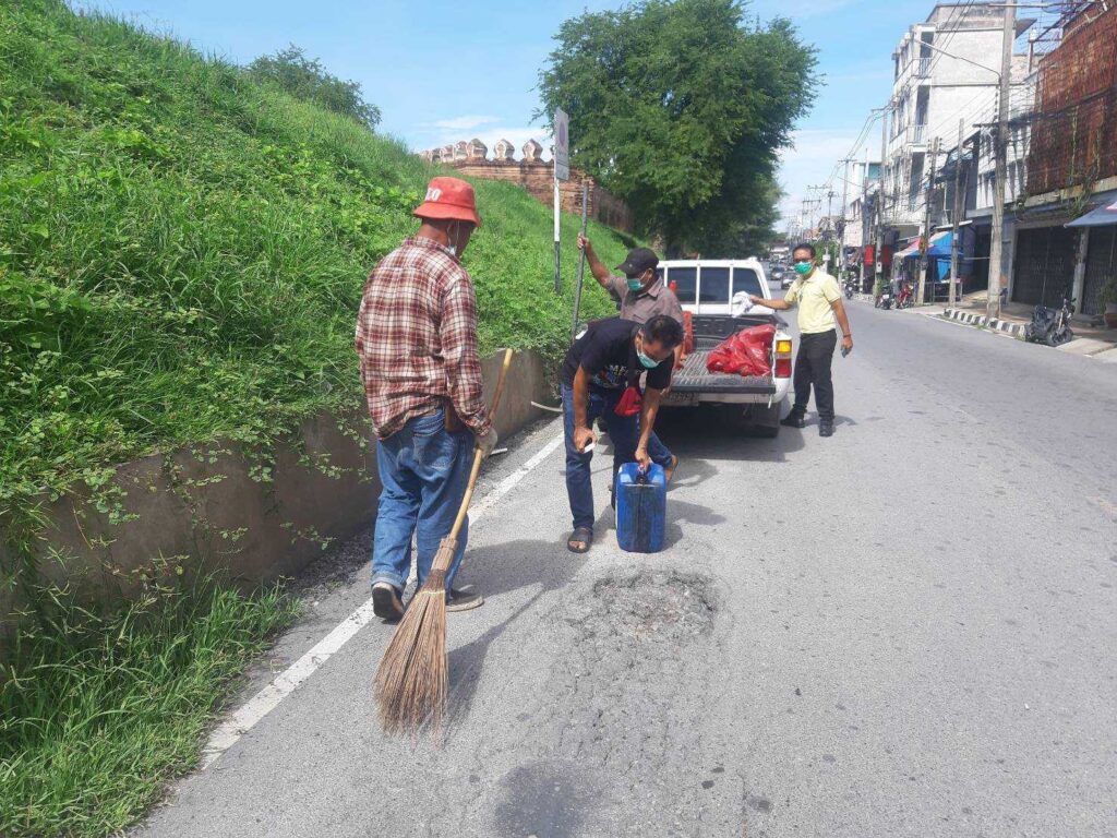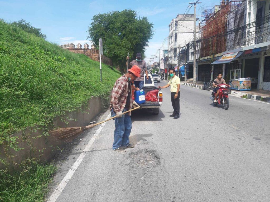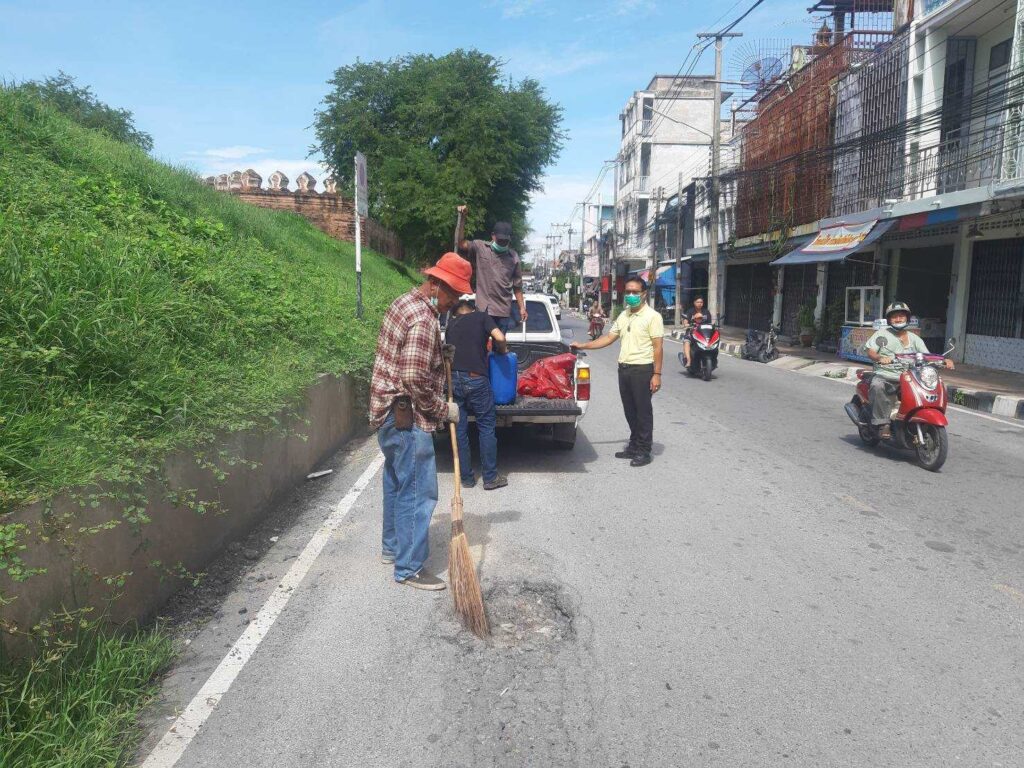 นายจำเริญ สละชีพ นายกเทศมนตรีเมืองลพบุรี สั่งการให้เจ้าหน้าที่สำนักช่างเทศบาลเมืองลพบุรี ซ่อมแซมผิวถนนที่เป็นหลุมบ่อให้เรียบเป็นปกติ บริเวณข้างปรางค์แขก / ถนนกาญจนาคม เพื่อให้การเดินทางสัญจรไปมาบนท้องถนนเป็นไปด้วยความสะดวก ปลอดภัย มีความคล่องตัว