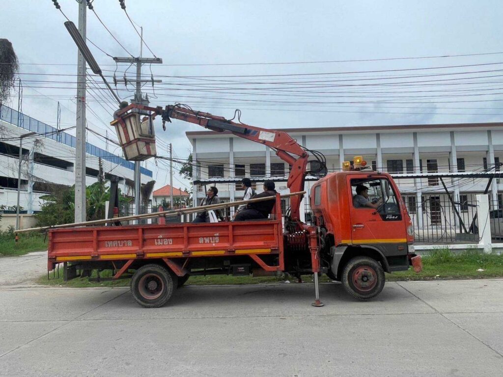 นายจำเริญ สละชีพ นายกเทศมนตรีเมืองลพบุรี สั่งการให้เจ้าหน้าที่งานไฟฟ้า สำนักช่างเทศบาลเมืองลพบุรี ลงพื้นที่ตรวจสอบและบำรุงซ่อมแซมไฟฟ้าส่องสว่าง บริเวณหลังสนามกีฬาพระราเมศวร / ซอยพระยาอนุชิต / ซอยเทพสตรี ๑ หน้าพิสูจน์หลักฐาน / ซ.เทพสตรี ๑ หลังศาลากลาง / ถนนรามเดโช / ถ.พระโหราธิบดี รวมทั้งตรวจเช็ค และบำรุง ซ่อมแซม ไฟฟ้าสาธารณะตามชุมชนต่าง ๆ เพื่ออำนวยความสะดวก และ เพิ่มความปลอดภัยในชีวิตและทรัพย์สินของประชาชน ในเขตเทศบาลเมืองลพบุรี รวมทั้งประชาชนทั่วไป และเพื่อให้ผู้ใช้รถใช้ถนนมีแสงสว่างอย่างเพียงพอ ซึ่งในครั้งนี้เป็นการซ่อม เปลี่ยน ปรับปรุง และบำรุงรักษา ไฟฟ้าแสงสว่างสาธารณะ และไฟฟ้าส่งถนนให้สามารถใช้งานได้อยู่เสมอ โดยเฉพาะถนนนารายณ์มหาราช ซึ่งเป็นถนนสายหลักที่มีประชาชนใช้สัญจรจำนวนมาก เพื่อให้ประชาชนได้ใช้รถใช้ถนนได้อย่างปลอดภัย จากการตรวจสอบของเจ้าหน้าที่งานไฟฟ้า สำนักช่างเทศบาลเมืองลพบุรี พบว่ามีการช็อตของระบบไฟฟ้า เป็นผลมาจากช่วงนี้มีฝนตกลงมาอย่างหนัก ซึ่งเจ้าหน้าที่งานไฟฟ้า สำนักการช่างเทศบาลเมืองลพบุรี ได้ดำเนินการบำรุงซ่อมแซมระบบทันที ทั้งการเปลี่ยนโคมไฟ เปลี่ยนหลอดไฟ และแก้ไขระบบวงจรไฟฟ้า โดยเจ้าหน้าที่งานไฟฟ้า สำนักช่างเทศบาลเมืองลพบุรี ต้องใช้รถกระเช้าเพื่อขึ้นไปดำเนินการแก้ไข ทั้งนี้เจ้าหน้าที่งานไฟฟ้า สำนักช่างเทศบาลเมืองลพบุรี ได้ขออภัยผู้ใช้รถใช้ถนนหากไม่ได้รับความสะดวกสบายในขณะที่กำลังปฏิบัติงานอยู่