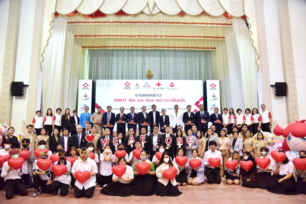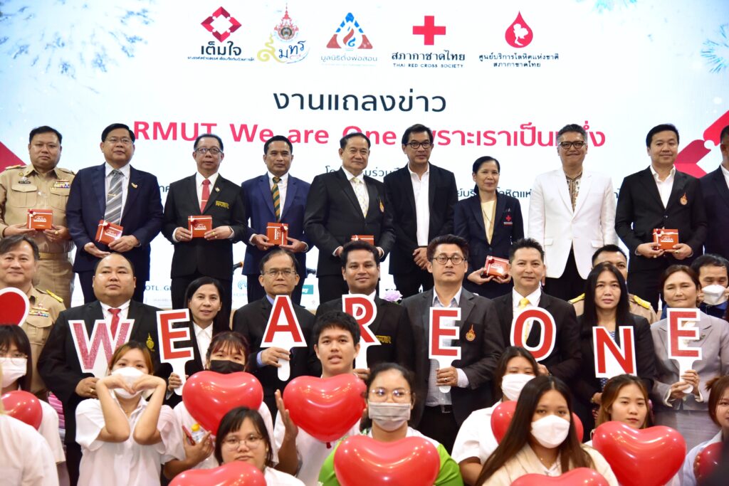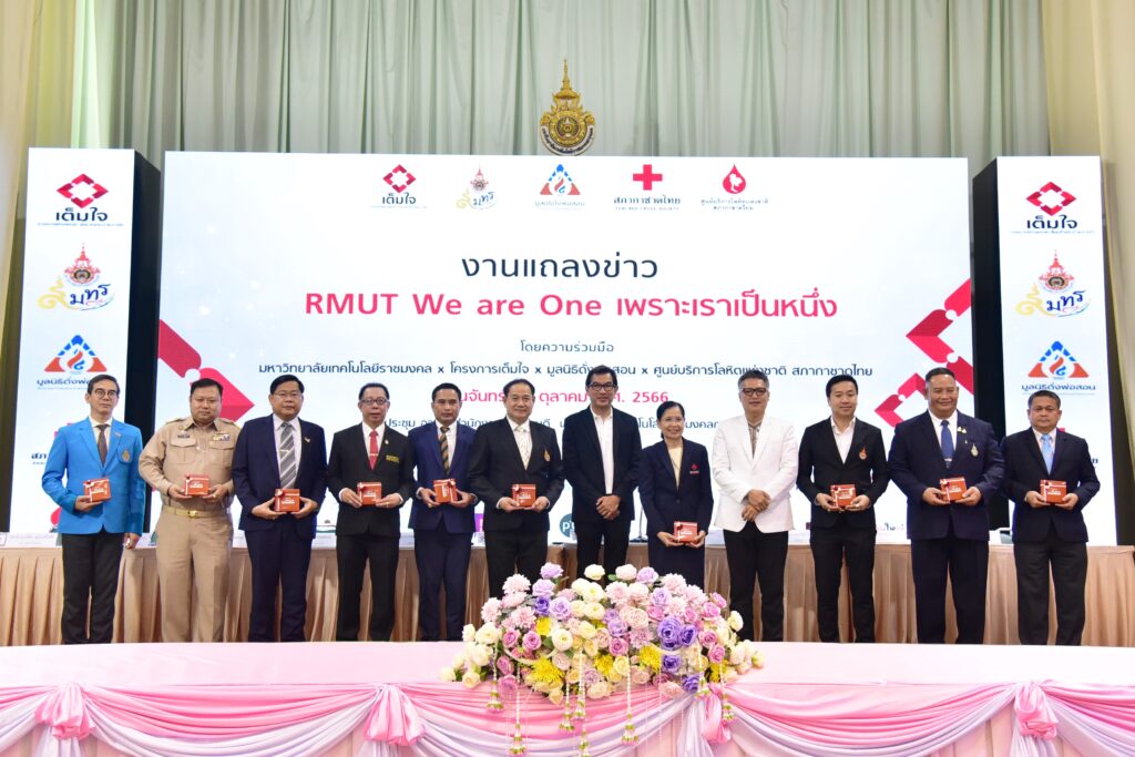 รศ.ดร.สมหมาย ผิวสอาด อธิการบดีมหาวิทยาลัยเทคโนโลยีราชมงคลธัญบุรี (มทร.ธัญบุรี) ในฐานะประธานที่ประชุมคณะกรรมการอธิการบดีมหาวิทยาลัยเทคโนโลยีราชมงคล (ทปอ.มทร.) พร้อมด้วยอธิการบดี และผู้แทนจาก 9 ราชมงคล จาก มทร.ธัญบุรี มทร.กรุงเทพ มทร.ตะวันออก มทร.พระนคร มทร.รัตนโกสินทร์ มทร.ล้านนา มทร.สุวรรณภูมิ มทร.อีสาน และมทร.ศรีวิชัย รวมถึงนายวรสรวง สมัตถพันธุ์ ประธานโครงการเต็มใจ นายณัฐวรรธน์ ภรนรา ประธานมูลนิธิดั่งพ่อสอน และนางสิณีนาฏ อุทา ผู้ช่วยผู้อำนวยการด้านการบริการโลหิต ศูนย์บริการโลหิตแห่งชาติ สภากาชาดไทย แถลงข่าวเปิดตัวแคมเปญ “RMUT We are One เพราะเราเป็นหนึ่ง” เพื่อเข้าร่วมในโครงการเต็มใจ ซึ่งเป็นการประกวดกิจกรรมรณรงค์บริจาคโลหิตในกลุ่มเยาวชนระดับอุดมศึกษา โดยความร่วมมือของศูนย์บริการโลหิตแห่งชาติ สภากาชาดไทย และมูลนิธิดั่งพ่อสอน ณ หอประชุม อาคารสำนักงานอธิการบดี มทร.กรุงเทพ