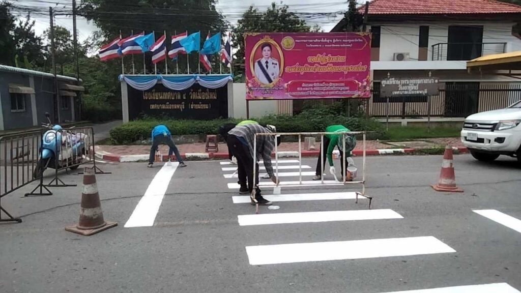นายจำเริญ สละชีพ นายกเทศมนตรีเมืองลพบุรี สั่งการให้เจ้าหน้าที่งานรักษาความสงบเรียบร้อย เทศบาลเมืองลพบุรี ดำเนินการทาสีทางม้าลาย บริเวณหน้าสถานศึกษาในเขตเทศบาลเมืองลพบุรี โดยเริ่มที่สถานศึกษาในสังกัดเทศบาลเมืองลพบุรี ก่อนที่มีการดำเนินการให้คลอบคุม รวมทั้งจุดเสี่ยงต่าง ๆ เพื่อสร้างความปลอดภัยให้นักเรียน และประชาชนทั่วไป โดยเจ้าหน้าที่งานรักษาความสงบเรียบร้อย เทศบาลเมืองลพบุรี ได้ดำเนินการทาสีขาวแดงทางม้าลายให้เห็นเด่นชัด พร้อมปรับปรุงป้ายเครื่องหมายสัญญาณจราจร เพื่อความเด่นชัดต่อผู้ขับขี่รถสัญจรไปมา เพิ่มความปลอดภัยให้กับครู ผู้ปกครอง และนักเรียน บริเวณหน้าโรงเรียน ตามนโยบายของ นายจำเริญ สละชีพ นายกเทศมนตรีเมืองลพบุรี ที่ต้องการลดอัตราการเกิดอุบัติเหตุบริเวณทางม้าลายให้เป็นศูนย์ โดยสั่งการให้เจ้าหน้าที่ฯ เร่งสำรวจบริเวณทางม้าลายโดยเฉพาะโรงเรียน และแหล่งชุมชน ทุกแห่ง เพื่อปรับปรุงหรือทาสีให้ครอบคลุมพื้นที่