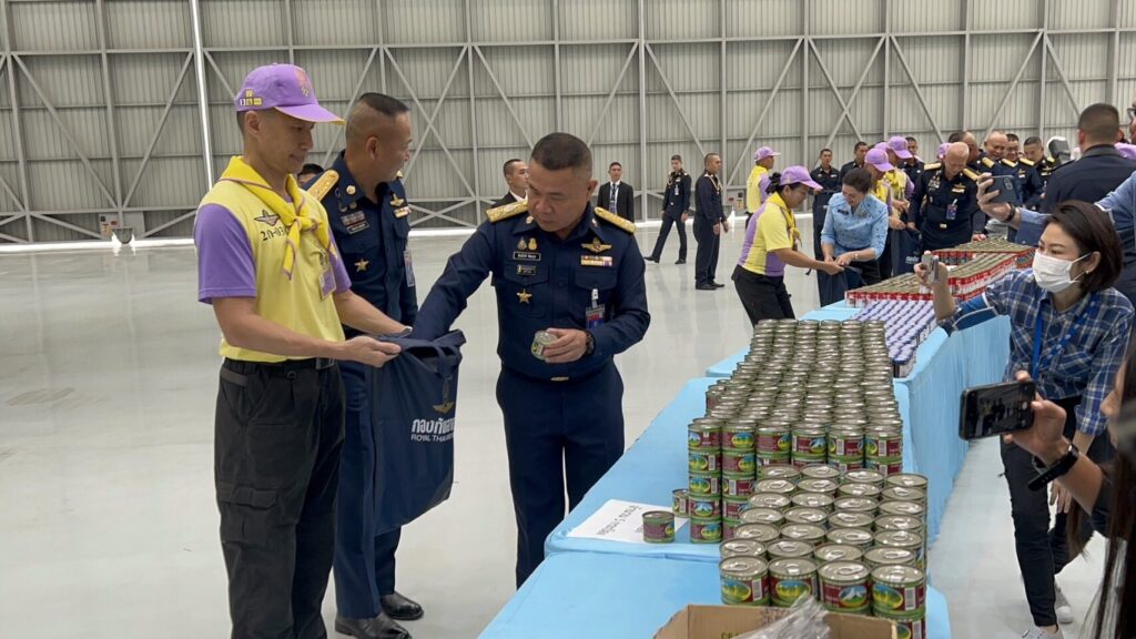 สำหรับถุงยังชีพของกองทัพอากาศในวันนี้ มีจำนวน 400 ชุด ภายในบรรจุไปด้วยสิ่งของอุปโภคบริโภค ประกอบด้วย ขนมปังอบกรอบ บะหมี่กึ่งสำเร็จรูป ปลากระป้อง ปลาราดพริก ผักกาดดอง ถุงขยะ แปงสีฟัน ยาสีฟ้น สบู่ ยาสามัญประจำบ้าน ยาพาราเซตามอล ยาธาตุ ยากันยุง ยาน้ำกัดเท้า น้ำพริก และช้อน-ส้อม ทั้งนี้ก็เพื่อบรรเทาความเดือดร้อนให้กับพี่น้องประชาชนได้รับความเดือดร้อน เพื่อให้ทุกคนกลับมาดำรง