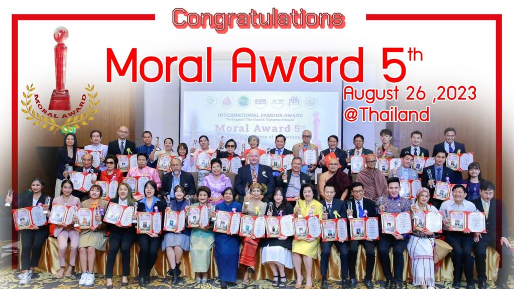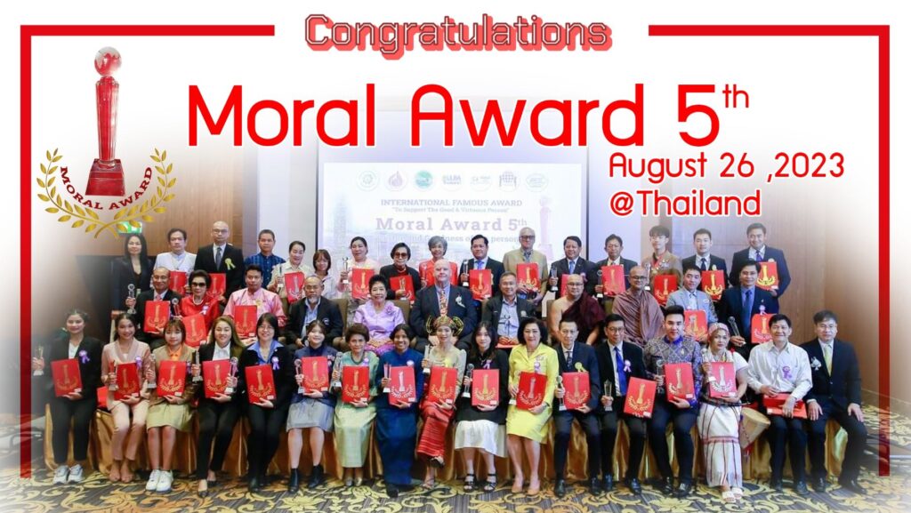 Resources Safety Protection Foundation Administration (WSPF), Thamma Chot Mongkhol Foundation (Nepal Thailand India), Global Center for Global Education (South Africa), The Universal Love and Brotherhood Association Thailand (ULBA Thailand) And Foundation for International Youth Ethics Charity and Development (FIYECAD) organized an event INTERNATIONAL FAMOUS AWARD “To Support The Good & Virtuous Person” MORAL AWARD 2023 5th “Virtue and Goodness of the person” Sunday, 16 July 2023 At Taipei, Taiwan and Saturday, 26 August 2023 At Vayupak Convention, Chaengwattana Government Center, Bangkok, Thailand