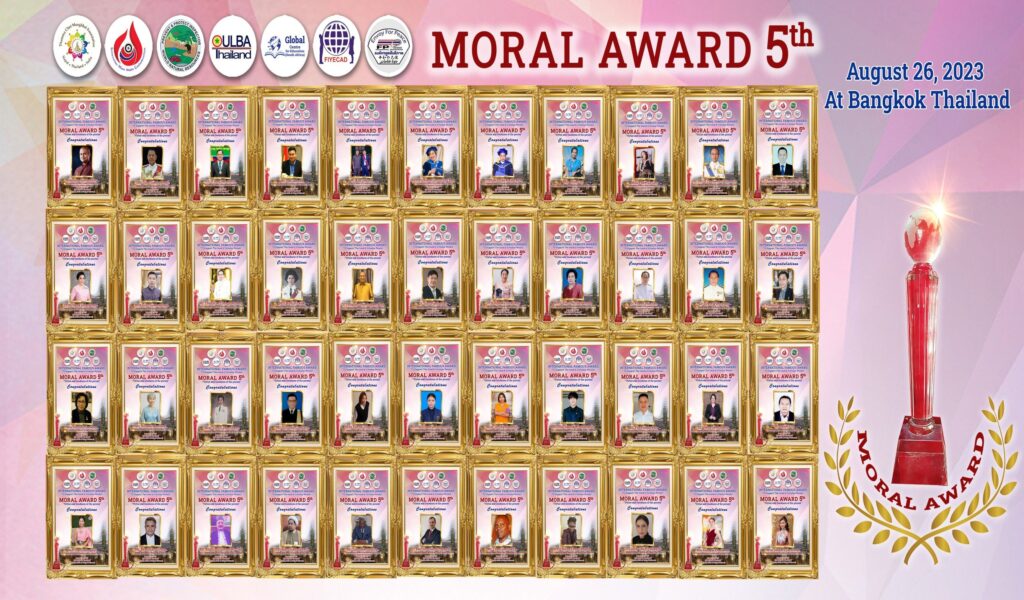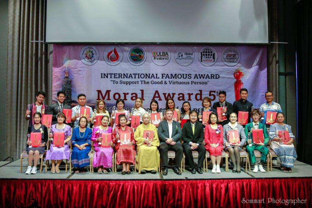 ส่งเสริมคนดีมีคุณธรรม MORAL AWARD ครั้งที่ 5 “คุณธรรม คุณค่าแห่งบุคคล” ขึ้นพร้อมกันเป็นครั้งแรกที่จัดมอบถึง 2 ประเทศ โดยมีการจัดขึ้นก่อน เมื่อ