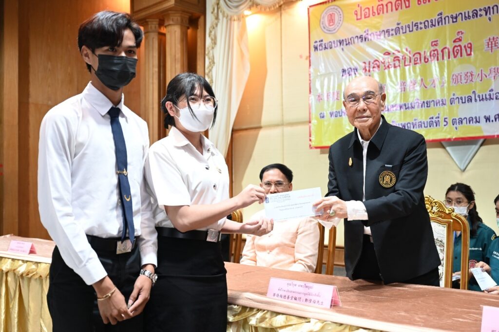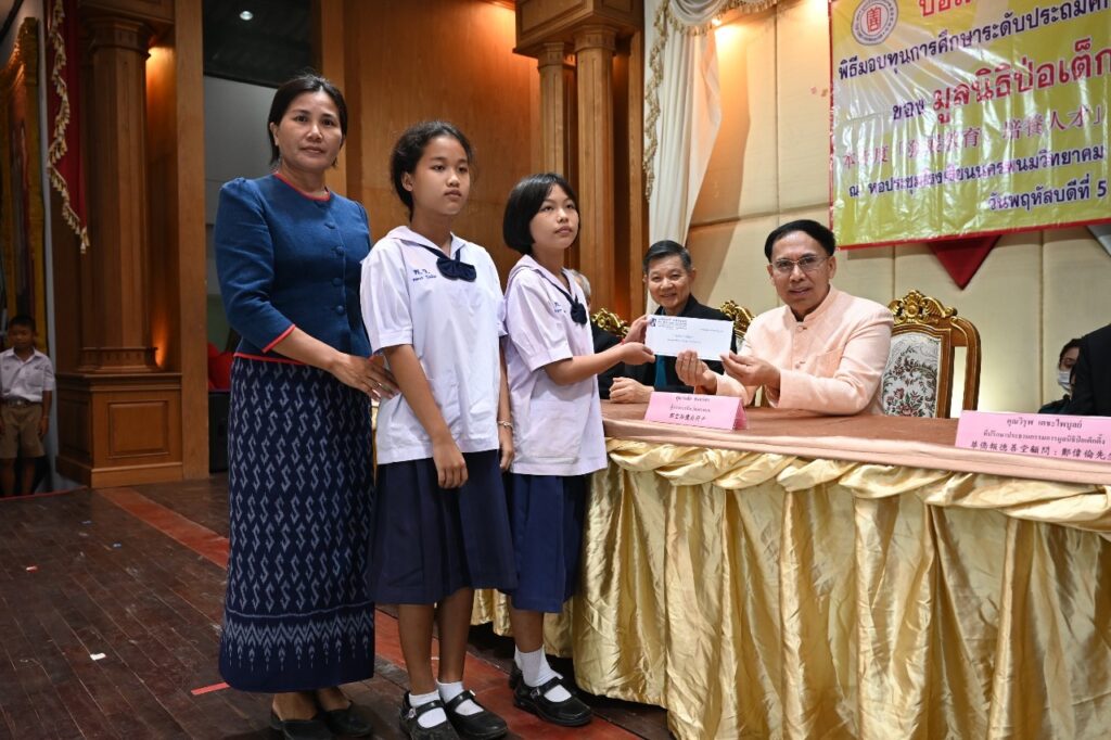 วันนี้ (วันพฤหัสบดีที่ 5 ตุลาคม 2566) มูลนิธิป่อเต็กตึ๊ง นำโดย นายวิรุฬ เตชะไพบูลย์ ที่ปรึกษาประธานกรรมการมูลนิธิป่อเต็กตึ๊ง พร้อมด้วย นายวิชิต ชินวงศ์วรกุล รองประธานกรรมการมูลนิธิป่อเต็กตึ๊ง นายนิพนธ์ ลีละศิธร กรรมการ และนายบวรสินธุ์ ตันธุวนิตย์ กรรมการ ลงพื้นที่มอบทุนการศึกษาระดับชั้นประถมศึกษา และทุนทุกระดับปีสุดท้าย (ทุนสัญจร) ประจำปี พ.ศ. 2566 แก่นักเรียน นิสิต นักศึกษา ที่ประพฤติดีแต่ขาดแคลนทุนทรัพย์จังหวัดนครพนม สกลนคร มุกดาหาร บึงกาฬ โดยมีจังหวัดนครพนมเป็นศูนย์กลางในการมอบทุนฯ รวม 53 สถาบัน 265 ทุน รวมเป็นเงินจำนวน 2,255,000 บาท (สองล้านสองแสนห้าหมื่นห้าพันบาทถ้วน) เพื่อสนับสนุนให้เยาวชนได้รับโอกาสทางการศึกษาอย่างเท่าเทียมตามที่มุ่งหวัง เติบโตพร้อมมีวิชาความรู้ สร้างอนาคตของตนเองและครอบครัว เป็นคนดีของสังคมและประเทศชาติ อีกทั้งยังเป็นการช่วยเหลือแบ่งเบาภาระของผู้ปกครอง โดยมีนายวันชัย จันทร์พร ผู้ว่าราชการจังหวัดนครพนม เป็นประธานในพิธี พร้อมด้วย นางศิริพร กระจ่างหล้า ผู้จัดการฝ่ายสังคมสงเคราะห์ และนางสาวศุภรัตน์ สมบัติเจริญไทย หัวหน้าแผนกส่งเสริมการศึกษาและอาชีพ นำทีมแผนกส่งเสริมการศึกษาและอาชีพ ฝ่ายสังคมสงเคราะห์ มูลนิธิป่อเต็กตึ๊ง ร่วมในพิธี และคณะนายกสมาคมพ่อค้าจังหวัดนครพนม เป็นผู้ประสานงานและร่วมในพิธี ณ หอประชุมโรงเรียนนครพนมวิทยาคม อำเภอเมือง จังหวัดนครพนม