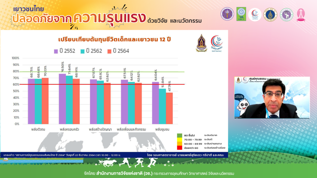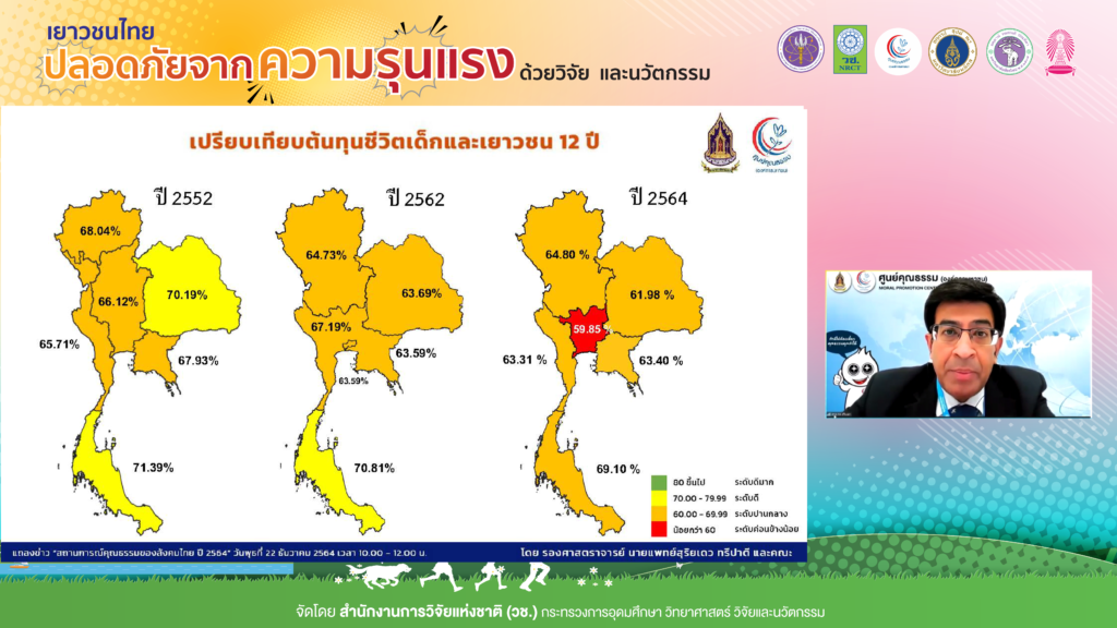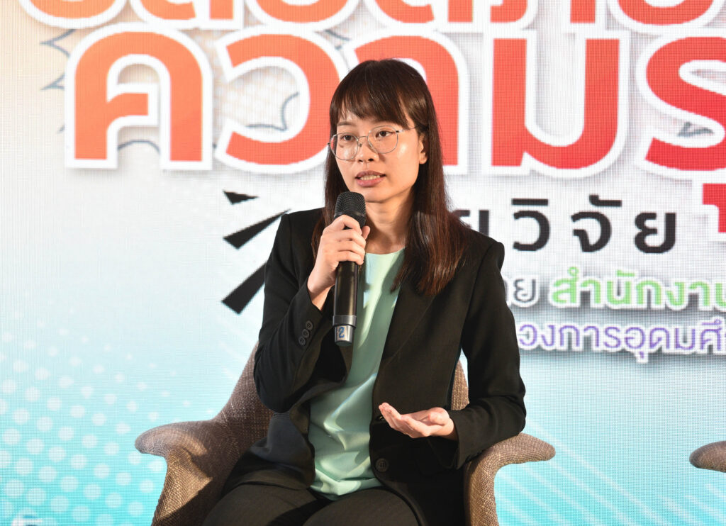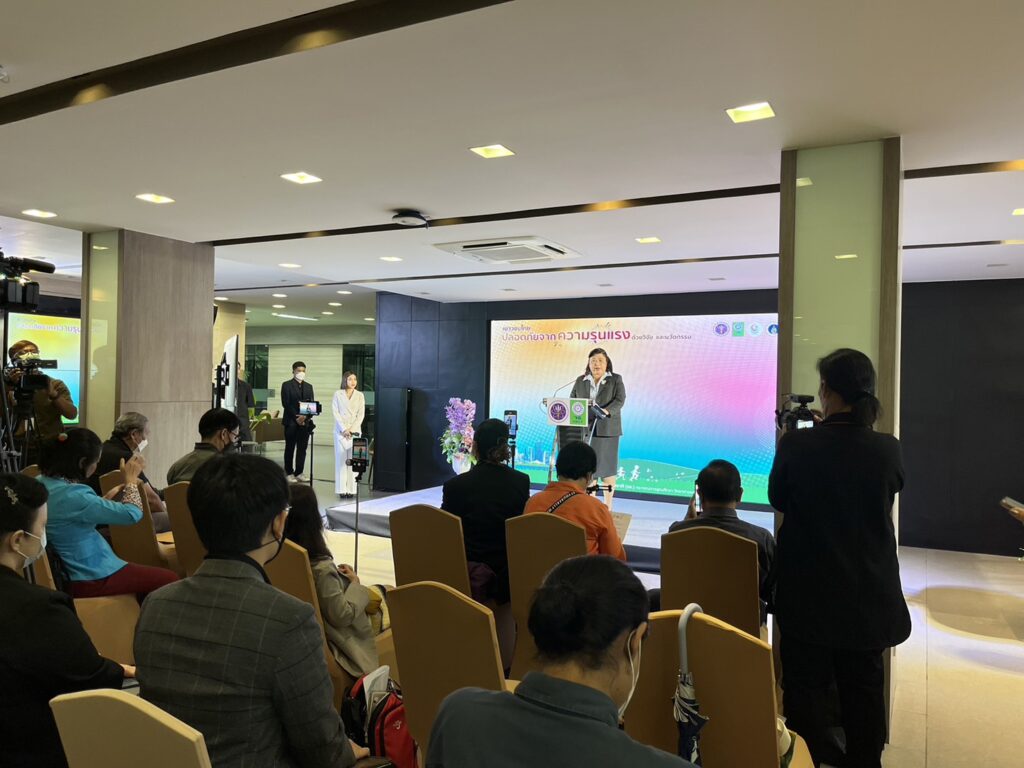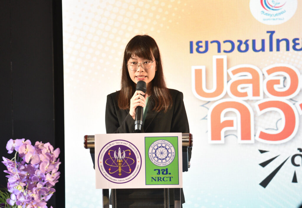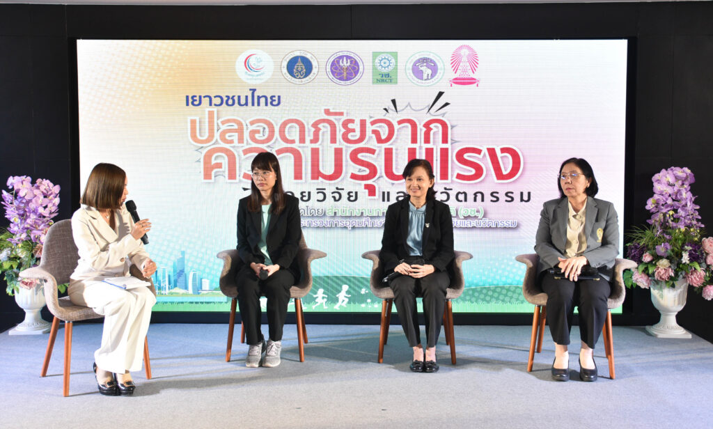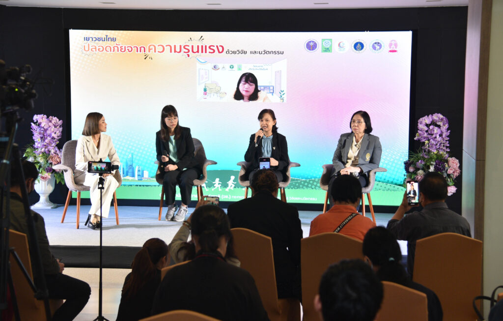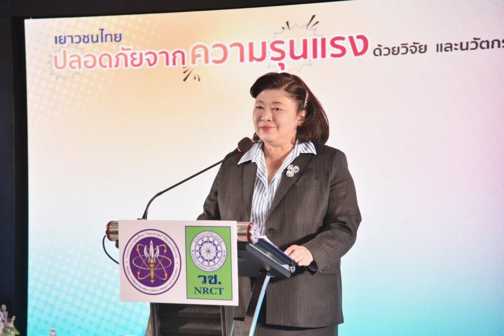 ดร.วิภารัตน์ ดีอ่อง ผู้อำนวยการสำนักงานการวิจัยแห่งชาติ (ผอ.วช.) กล่าวว่า (วช.) ภายใต้กระทรวง (อว.) เป็นหน่วยงานหลักในการบริหารจัดการทุนวิจัยของประเทศ ได้ตระหนักถึงปัญหาความรุนแรงทางสังคม ซึ่งถือเป็นปัญหาสำคัญระดับประเทศที่ต้องได้รับการแก้ไขอย่างจริงจัง จึงได้สนับสนุนแผนงานวิจัยสังคมไทยไร้ความรุนแรงเพื่อให้ได้แนวทางการแก้ไขปัญหาโดยเฉพาะในกลุ่มเด็กและเยาวชนไทยให้ปลอดภัยจากความรุนแรงในสังคมที่ครอบคลุมในมิติต่างๆ นับว่าเป็นโจทย์ที่ท้าทายหนึ่งที่สำคัญสำหรับการวิจัยที่จะช่วยยกระดับคุณภาพชีวิตและความเป็นอยู่ทางสังคมให้กับคนไทยได้อย่างมั่นคง และสามารถนำไปสู่การลดปัญหาความรุนแรงในสังคมไทยได้อย่างยั่งยืน ในวันนี้ (วช.) ได้ยกประเด็น 4 ประเด็นหลัก เพื่อเป็นแนวทางในการป้องกันแก้ไขปัญหาเด็กและเยาวชนไทยปลอดภัยจากความรุนแรงในสังคมไทย ดังนี้