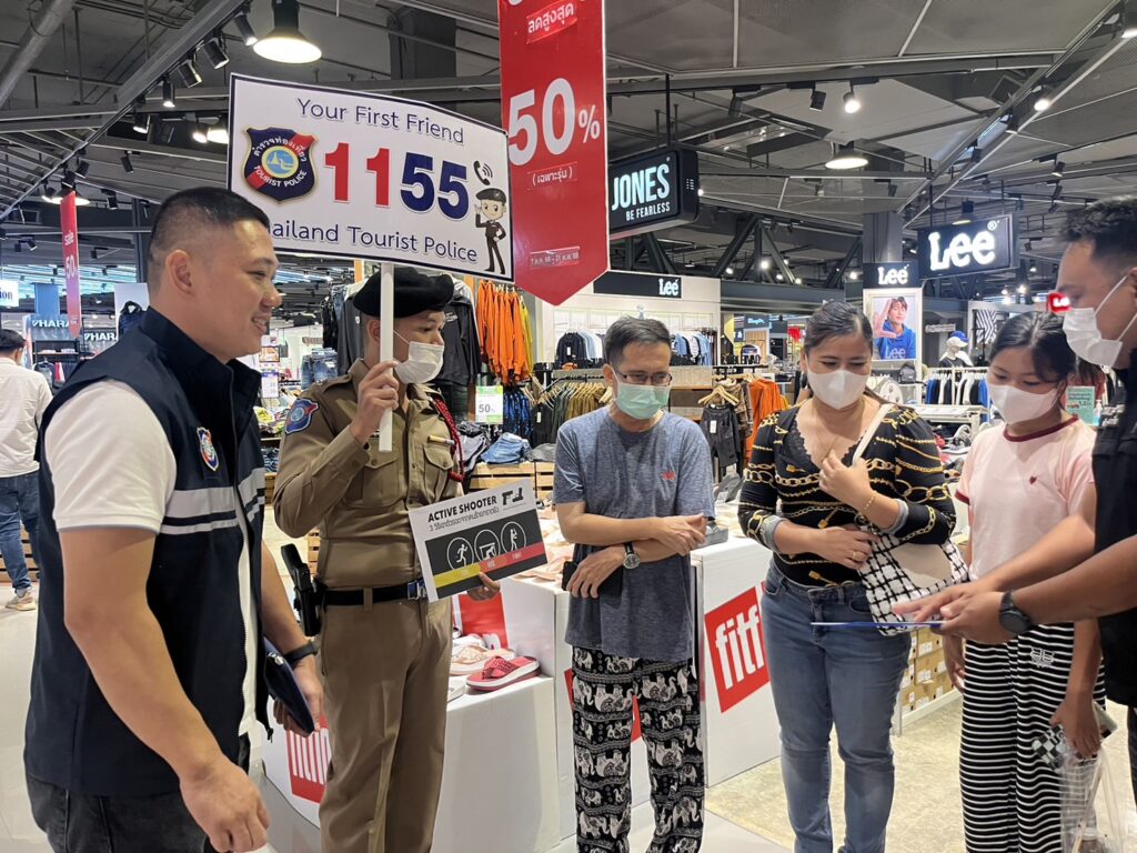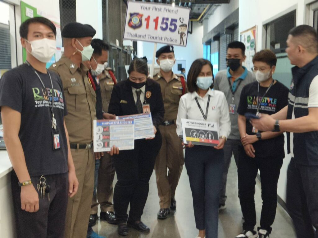 ออกประชาสัมพันธ์หลักการเอาตัวรอดจากคนร้ายกราดยิง ACTIVE SHOOTER ให้กับนักท่องเที่ยวและประชาชนที่เข้ามาเที่ยวในพื้นที่รับผิดชอบ และที่ห้างสรรพสินค้าโรบินลพบุรีพร้อมอธิบายให้ทราบถึงหลักการเอาตัวรอด “หนี ซ่อน สู้ ” ให้นักท่องเที่ยวและประชาชนได้รับทราบถึงหลักการเพื่อนำไปใช้ในการเอาตัวรอดและบอกต่อถึงหลักการดังกล่าว ประสานความร่วมมือภาคเอกชน เป็นเบาะแสแจ้งเหตุ ช่วยดูแลนักท่องเที่ยวเข้มงวดในการตรวจค้นอาวุธปืนตามมาตรการรักษาความปลอดภัยของทางห้างฯ เพื่อสร้างความเชื่อมั่นให้กับกลุ่มนักท่องเที่ยวและประชาชน รวมทั้งนักท่องเที่ยวสัญชาติจีนที่เข้ามาเที่ยวในจังหวัดลพบุรี สระบุรี