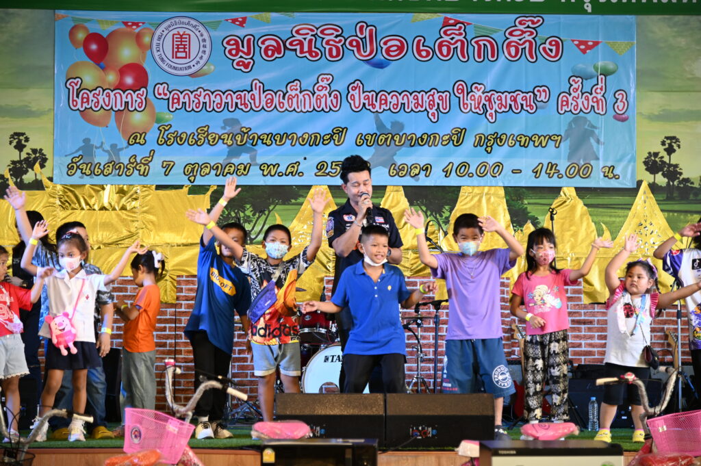 วันนี้ (วันเสาร์ที่ 7 ตุลาคม พ.ศ. 2566) มูลนิธิป่อเต็กตึ๊ง นำโดย นายวิชิต ชินวงศ์วรกุล รองประธานกรรมการ เป็นประธานในพิธี พร้อมด้วย นางศิริกุล โอภาสวงศ์ กรรมการและเลขาธิการ จัดคาราวาน “ป่อเต็กตึ๊ง ปันความสุข ให้ชุมชน” ยกทัพอาสาสมัครศิลปิน มูลนิธิป่อเต็กตึ๊ง นำโดย นายธวัชชัย คชาอนันต์ (แฮ็ค ชวนชื่น) นางสาววรินดา คุปติธรรมกุล (ปุ๊กกี้) นางสาวอธิชา เทศขำ (เมย์-อธิชา) นางสาวอรภัสญาน์ สุกใส (มิ้วส์) นางสาวไดอนา แอน คาฮิลส์ และอาสาสมัครศิลปินอีกหลายท่าน ร่วมกิจกรรมแจกของขวัญ และของรางวัลสุดพิเศษกว่า 100 รายการ พร้อมจัดบริการด้านการแพทย์ฟรีจากหน่วยแพทย์สงเคราะห์ชุมชนมูลนิธิป่อเต็กตึ๊ง และกิจกรรมนันทนาการจากหน่วยงานในเครือ 3 สถาบัน ได้แก่ โรงพยาบาลหัวเฉียว คลินิกการแพทย์แผนจีนหัวเฉียว และมหาวิทยาลัยหัวเฉียวเฉลิมพระเกียรติ อาทิ กิจกรรม ตรวจรักษาโรคทั่วไป แจกจ่ายยา นวดทุยหนา ตรวจและแจกแว่นสายตา ตัดผม การบริการฉีดวัคซีนโควิด-19 การเจาะเลือด เพื่อตรวจการทำงานของตับ ไต ไขมันในเส้นเลือด น้ำตาลในเลือด และเก๊าท์เบื้องต้น ฯลฯ รวมทั้งจัดให้มีการแจกจ่ายอาหารและเครื่องดื่มให้กับประชาชนภายในเขตบางกะปิ โดยมี นายวันชิด ศิรสีห์ รองผู้จัดการใหญ่มูลนิธิป่อเต็กตึ๊ง เป็นผู้กกล่าวรายงาน พร้อมด้วย นายชูชาติ พุ่มน้อย ผู้อำนวยการเขตบางกะปิ อาสาสมัครมูลนิธิฯ แขกผู้มีเกียรติ และประชาชนจำนวนมาก ร่วมในพิธี ณ โรงเรียนบ้านบางกะปิ เขตบางกะปิ กรุงเทพฯ