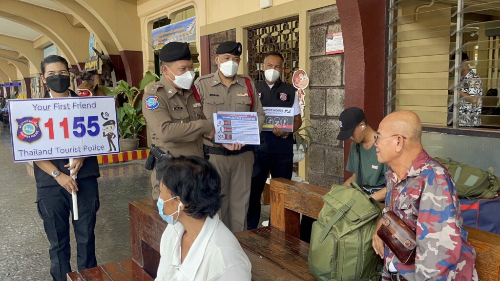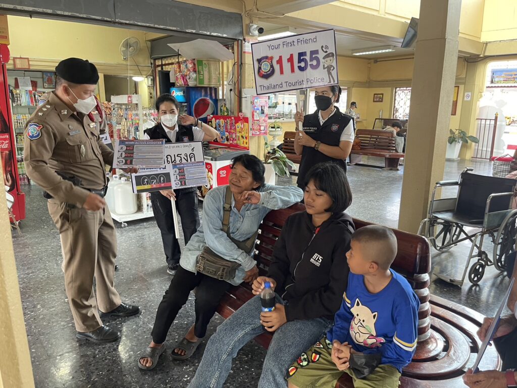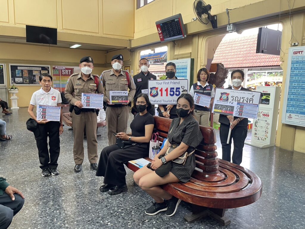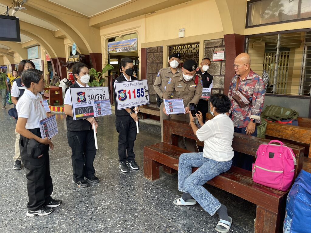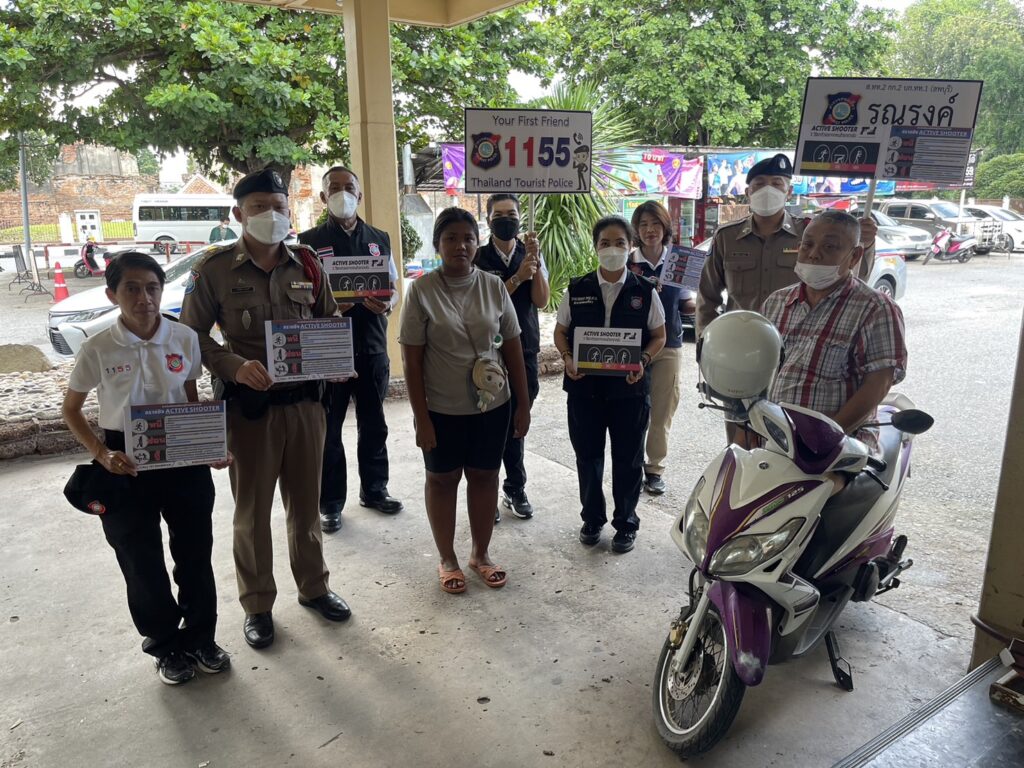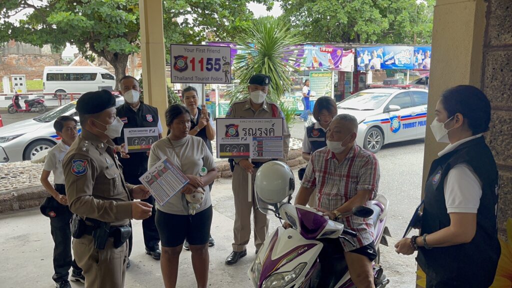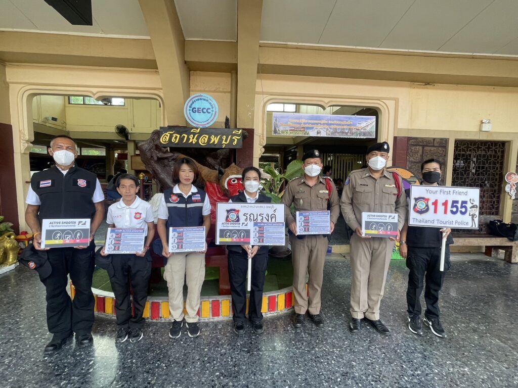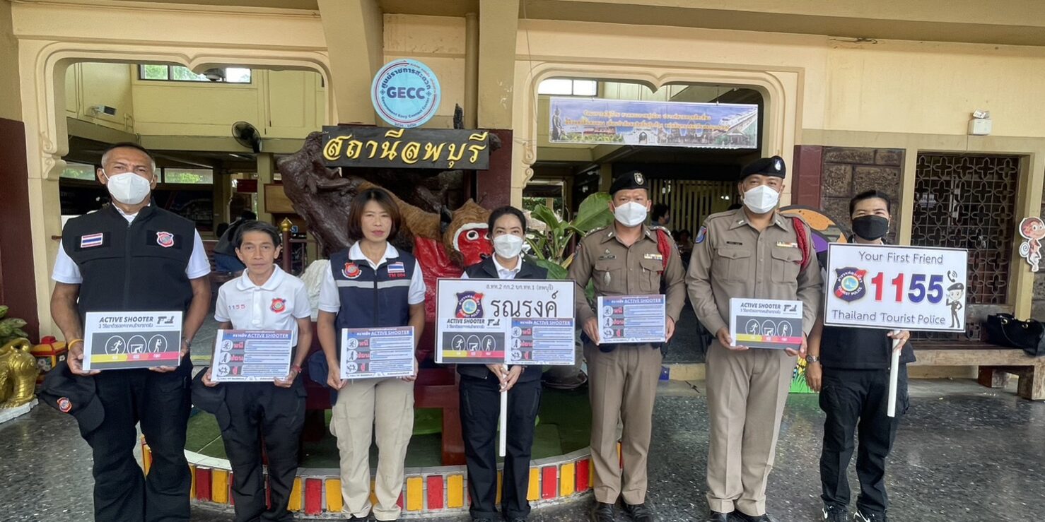 ตำรวจท่องเที่ยวลพบุรี ภายใต้การนำของ พ.ต.ท.พัฒนพงศ์ ศิริเจริญนำ สารวัตรหัวหน้าสถานีพร้อมกำลังอาสาสมัครตำรวจ ออกรณรงค์ให้ความรู้แก่นักท่องเที่ยวและประชาชนตามแหล่งท่องเที่ยวและสถานีรถไฟลพบุรี โดยอธิบายถึงวิธีการเอาตัวรอด ตามหลักการ “หนี ซ่อน สู้ “