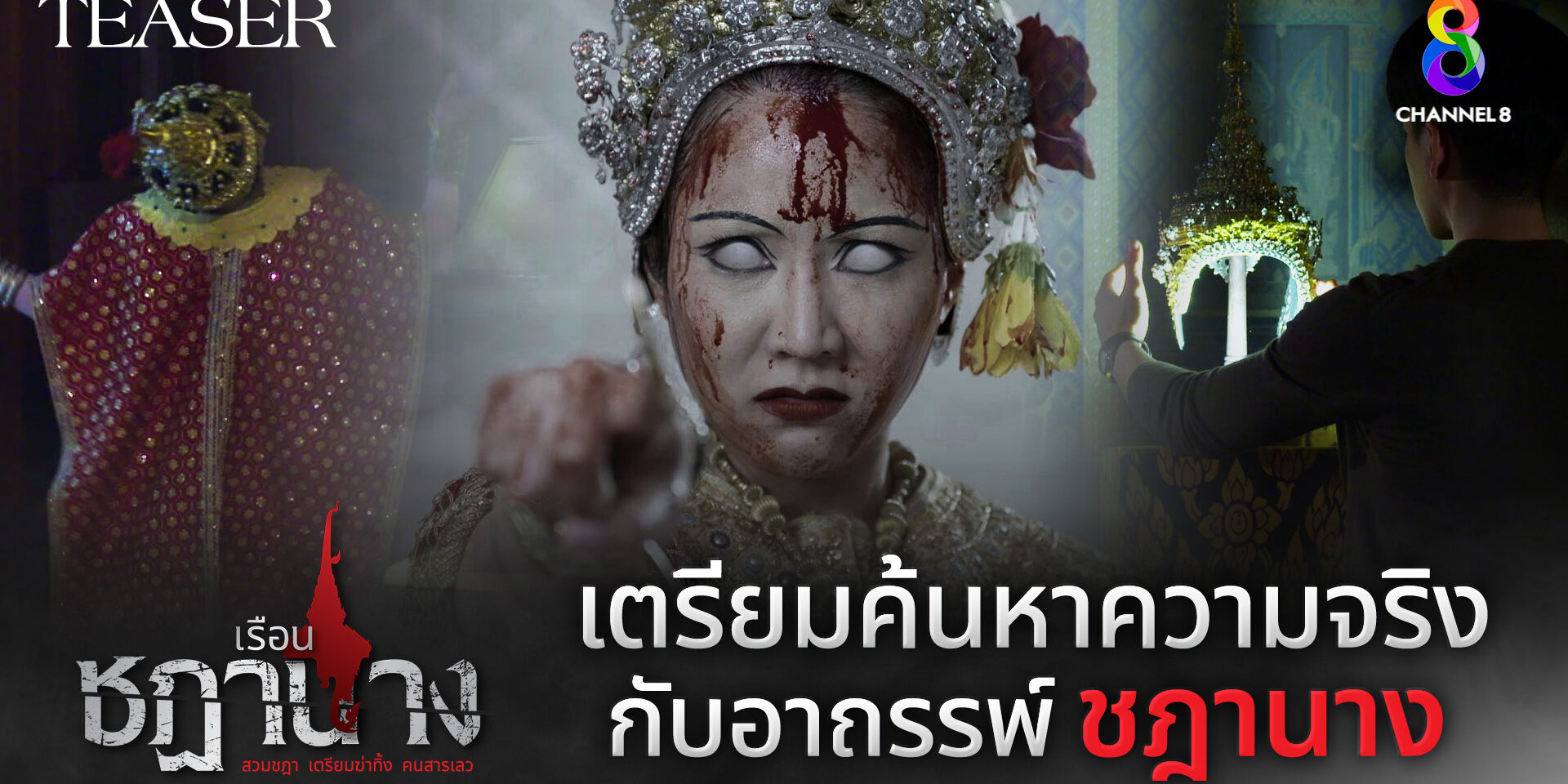 เตรียมตัวเตรียมใจให้พร้อม อะดรีนาลีนคุณจะสูบฉีดอีกครั้ง กับ ละคร เรือนชฎานาง เริ่มตอนแรก วันจันทร์ที่ 23 ตุลาคม 2566 และจะออกอากาศทุกวันจันทร์-พฤหัสบดี เวลา 18.00 น. และ 22.15 น. ทางช่อง 8 กดเลข 27 สามารถรับชมย้อนหลังที่แรกที่เดียวที่ TrueID ผ่าน 3 ช่องทางแอปพลิเคชัน, เว็บ และกล่อง TrueID TV ดูฟรีทุกเครือข่าย การันตีจัดเต็มความหลอนทุกตอน! เทรลเลอร์ เรือนชฎานาง : https://www.youtube.com/watch?v=yIEPEPY6-Qk