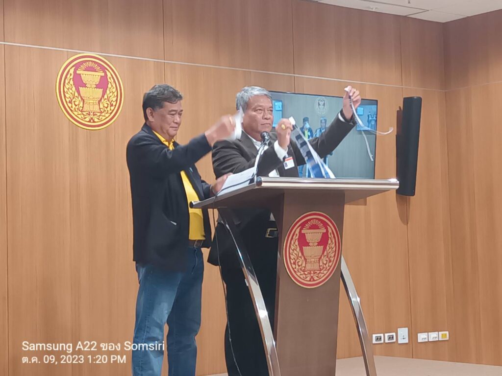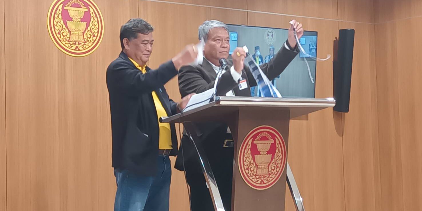 นายวัชระและนายธรรมยุทธได้ฉีกกระดาษซึ่งมีภาพและข้อความของนายเศรษฐาที่ได้เขียนต่อหน้าสื่อมวลชน