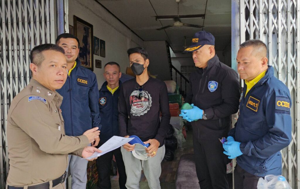 เมื่อวันที่ 9 ตุลาคม 2566 เวลาประมาณ 10.30 น.พล.ต.ต.ชัชปัณฑกาณฑ์ คล้ายคลึง ผบก.สอท.1,พ.ต.อ.ปรีดา คงจัด รอง ผบก.สอท.1,พ.ต.อ.ภูมิสิษฐ์ ตั้งวิทย์เดชา ผกก.2 บก.สอท.1 บช.สอท.,พ.ต.ท.เรืองกฤษณ์ ศิริมาจันทร์ รอง ผกก.2 บก.สอท.1,พ.ต.ท.ธนัช ธนาบุญประกอบ สว.กก.2 บก.สอท.1 พ.ต.ต.เอกสิทธ์ พระศรี สว.กก.2 บก.สอท.1,ร.ต.อ.สุนทร หงษ์โยธี รอง สว.กก.2 บก.สอท.1 ได้นำกำลังเข้าตรวจค้นบ้านเลขที่ 471/8 ประชาสงเคราะห์ 2 แยก 1 อยู่ถาวรแยก 5 แขวงดินแดง เขตดินแดง กรุงเทพมหานคร ตามหมายค้นศาลอาญา ที่ 1270/2566 ลงวันที่ 8 ตุลาคม 2566 เมื่อมาถึงพบ นายสัญญา ชัยเคร็ง อายุ 35 ปี ที่อยู่ตามบัตรประชาชน 9 ม.5 ต.แม่เจ้าอยู่หัว อ.เชียรใหญ่ จ.นครศรีธรรมราช แสดงตนเป็นเจ้าบ้านหลังดังกล่าวและได้นำตรวจค้น