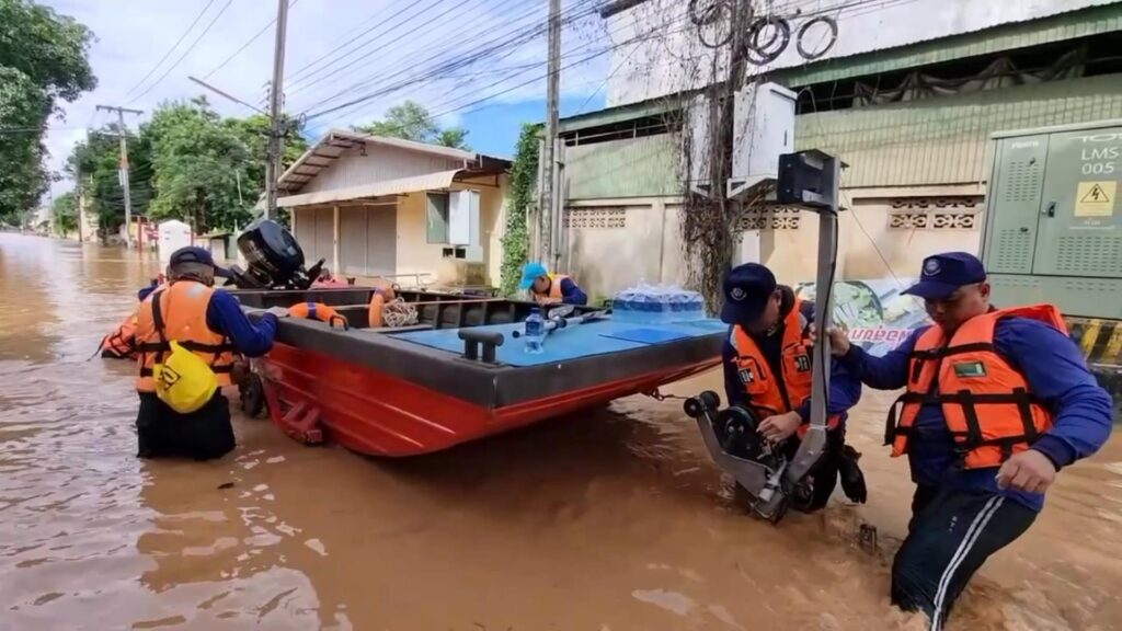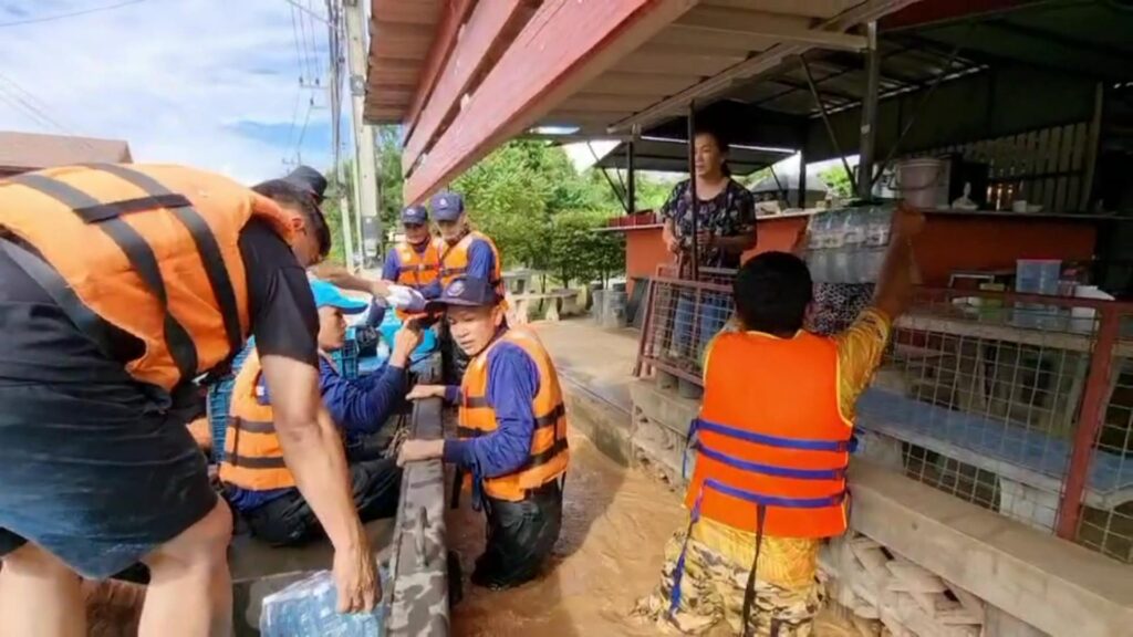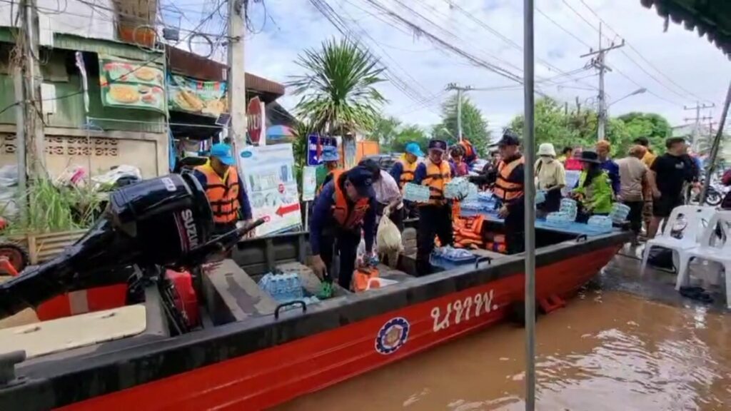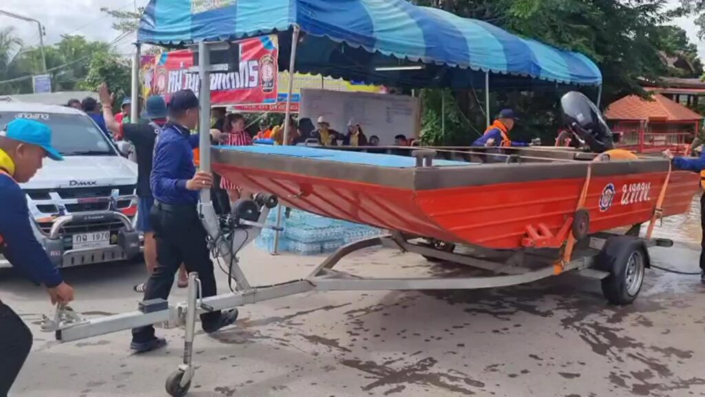 โดยในครั้งนี้ได้นำเรือท้องแบนอลูมิเนียมทำการ รับ-ส่ง ประชาชนที่มีความจำเป็นต้องเดินทาง ขนย้ายสิ่งของ พร้อมนำอาหารแห้งและน้ำดื่ม จำนวน 300 ขวด แจกจ่ายให้กับประชาชนผู้ประสบภัยเพื่อบรรเทาความเดือดร้อน และแจ้งเตือนภัยแก่ประชาชนในพื้นที่เสี่ยง
