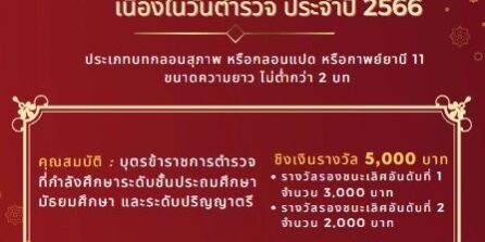 “ความภาคภูมิใจในครอบครัวตำรวจ” เนื่องในวันตำรวจ ประจำปี 2566 ชิงเงินรางวัล สร้างความภาคภูมิใจ สร้างขวัญกำลังใจแก่ข้าราชการตำรวจและครอบครัว
