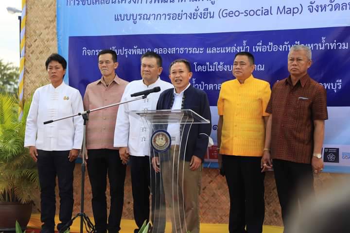 นายชาญวิชญ์ สิริสุนทรานนท์ รักษาการในตำแหน่งสถาปนิกใหญ่ ฯ กล่าวว่า สำหรับการดำเนินการกิจกรรมนี้ เป็นส่วนหนึ่งในภาพรวม ของการบริหารจัดการ เพื่อป้องกันและแก้ไขปัญหาน้ำท่วม น้ำแล้งของจังหวัดลพบุรี ซึ่งเป็นโครงการพัฒนาตามผังภูมิสังคมเพื่อการบริหารจัดการน้ำหมู่บ้าน/ชุมชน แบบบูรณาการอย่างยั่งยืน (Geo – social Map) จังหวัดลพบุรี เพื่อให้การป้องกันและแก้ไขปัญหาน้ำท่วม น้ำแล้ง