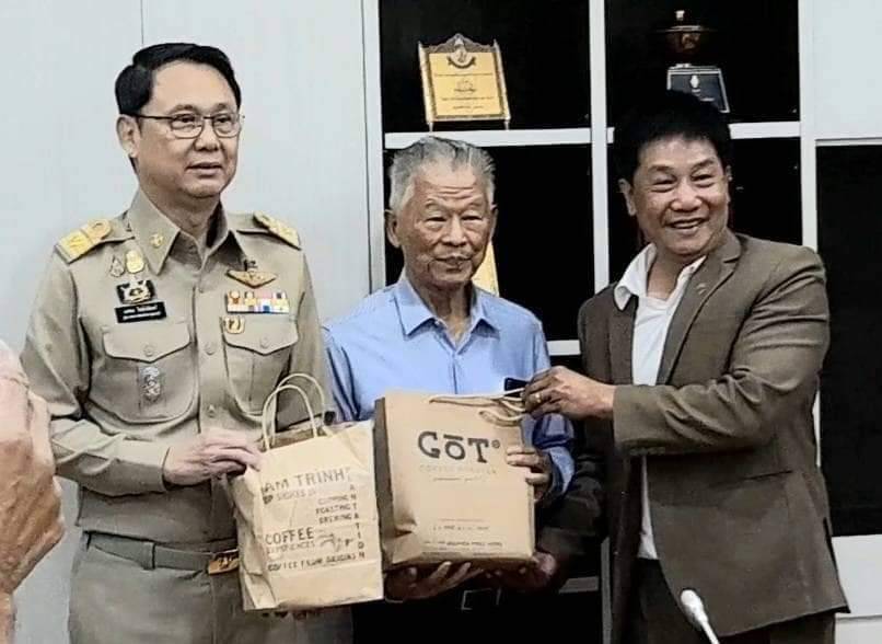 ร้อยโททศพล ไชยโกมินทร์ ผู้ว่าราชการจังหวัดกาญจนบุรี กล่าวว่า ต้องขอขอบคุณคุณวินิจ โรจนวงศ์ และ คุณจรัญ รุ่งมณี พร้อมขอต้อนรับนักข่าวลังดองเวียดนาม จังหวัดกาญจนบุรี มีพื้นที่ใหญ่อันดับ 3 ของประเทศ มี 13 อำเภอ เรามีแหล่งท่องเที่ยวมากมาย เรามีพื้นที่ 40 เปอร์เซนต์ เป็นพื้นที่ป่า เป็นมรดกโลก เรามีพื้นที่การเกษตร อุตสาหกรรม ปลูกข้าว เรามีแม่น้ำสองสายหลักรวมเป็นหนึ่งสายหลักเป็นแม่น้ำแม่กลอง แม่น้ำเรามีเขื่อนใหญ่สองเขื่อนใหญ่ ที่ผลิตไฟฟ้า และมีอีกหนึ่งเขื่อนที่ส่งน้ำให้เกษตรกร เรามีมรดกโลกและป่าเป็นแหล่งท่องเที่ยว และมีสกายวอล์ก เป็นแหล่งท่องเที่ยวเชิงนวัตกรรม เรามีวัดที่สร้างในสมัยรัชกาลที่ 3 อาทิ วัดใต้ วัดเหนือ วัดญวน ขอยินดีต้อนรับคณะสื่อมวลชนลังดองเวียดนาม พร้อมมอบเหรียญวัตถุมงคลเป็นที่ระลึก