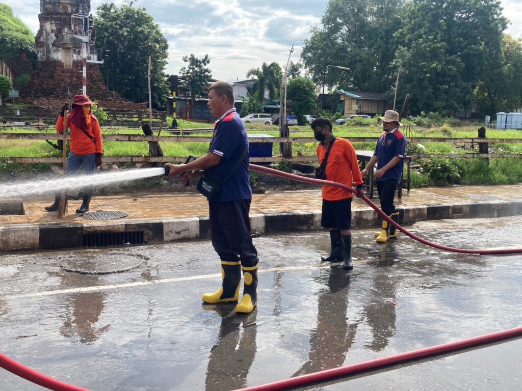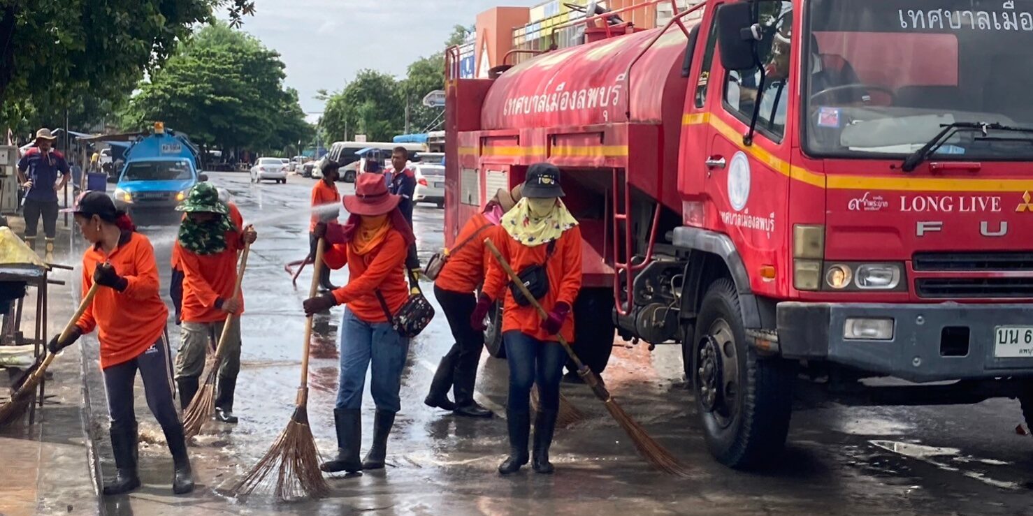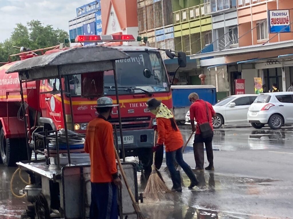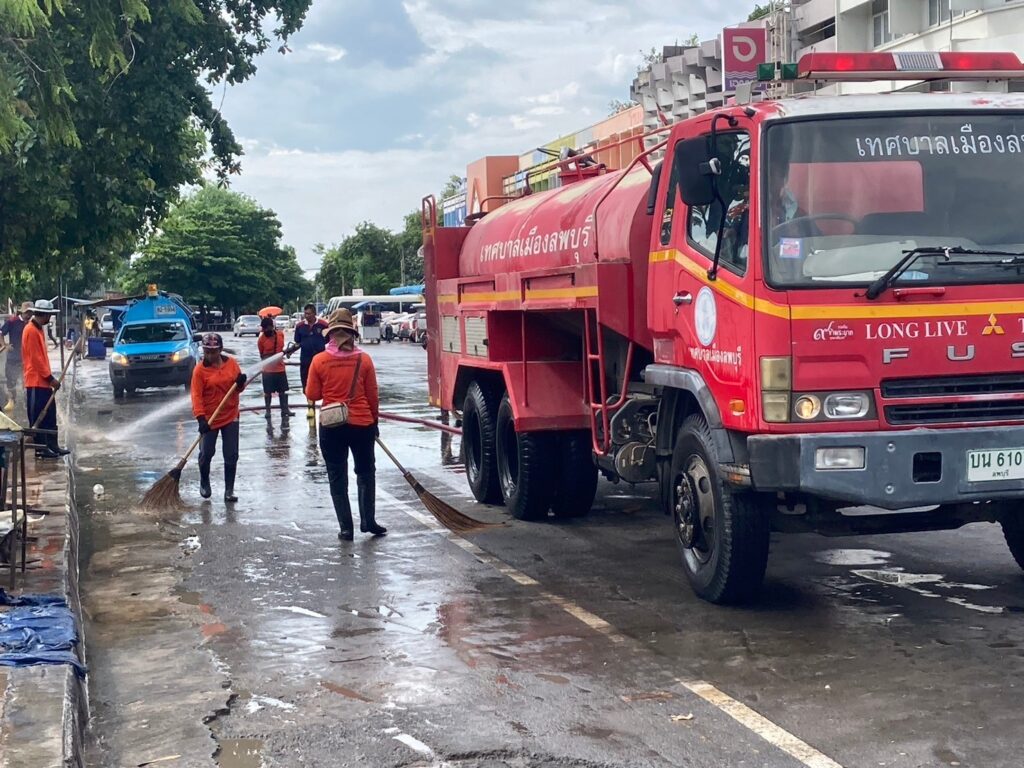 นายจำเริญ สละชีพ นายกเทศมนตรีเมืองลพบุรี ได้สั่งการให้เจ้าหน้าที่กองสาธารณสุขและสิ่งแวดล้อมเทศบาลเมืองลพบุรี และเจ้าหน้าที่งานป้องกันและบรรเทาสาธารณภัยเทศบาลเมืองลพบุรี ดำเนินการล้างทำความสะอาดถนนหน้าพระกาฬ (ตลาดโต้รุ่งริมทางรถไฟ) เพื่อให้เกิดความสะอาด สวยงาม เป็นระเบียบ โดยเจ้าหน้าที่ได้ใช้โซดาไฟเทบนพื้นก่อนที่จะนำรถดับเพลิงฉีดน้ำ และให้เจ้าหน้าที่กวาดทำความสะอาดอีกครั้ง โดยมีการล้างทำความสะอาดพื้น ฟุตบาท และขอบฟุตบาท ตามหลักสุขาภิบาล เพื่อรักษาความสะอาด และความเป็นระเบียบเรียบร้อย รวมทั้งป้องกันการเกิดโรคติดต่อทางเดินอาหาร และขอความร่วมมือจากผู้ประกอบการภายในตลาดโต้รุ่งริมทางรถไฟ (ถนนหน้าพระกาฬ) ในการช่วยกันรักษาความสะอาดและเก็บขยะหลังเลิกขาย