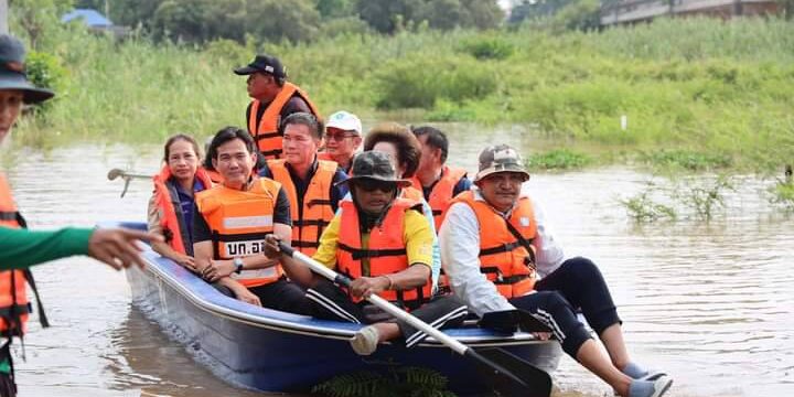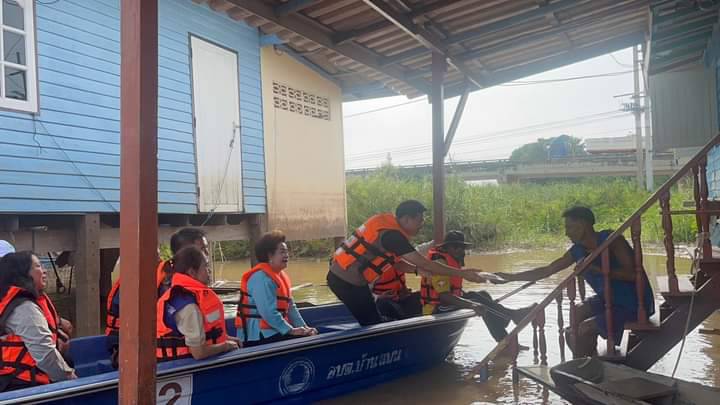 วันที่ 16 ตุลาคม 2566 เมื่อเวลา 15.00 น. ที่ หมู่ที่ 1 ตำบลบ้านแพน อำเภอเสนา จังหวัดพระนครศรีอยุธยา นายนิวัฒน์ รุ่งสาคร ผู้ว่าราชการจังหวัดพระนครศรีอยุธยา พร้อมด้วย นายไพรัตน์ เพชรยวน รองผู้ว่าราชการจังหวัดพระนครศรีอยุธยา นางสมทรง พันธ์เจริญวรกุล นายกองค์การบริหารส่วนจังหวัดพระนครศรีอยุธยา นพ.ยุทธนา วรรณโพธิ์กลาง นายแพทย์สาธารณสุขจังหวัดพระนครศรีอยุธยา นายกฤษณ์ แก้วทองหลาง ป้องกันและบรรเทาสาธารณภัยจังหวัด พร้อมคณะ เดินทางลงพื้นที่ตรวจติดตามสถานการณ์น้ำ โดยมี นางอมรรัตน์ กรึงไกร นายอำเภอเสนา รายงานสถานการณ์น้ำในพื้นที่ อำเภอเสนา และนำคณะลงเรือสำรวจสถานการณ์น้ำแม่น้ำน้อย และเยี่ยมเยียนให้กำลังใจ พี่น้องประชาชนที่อาศัยอยู่ริม 2 ฝั่งแม่น้ำน้อย ที่ได้รับผลกระทบน้ำล้นตลิ่งเข้าท่วมใต้ถุนบ้าน สูงเฉลี่ย 50 – 80 เซนติเมตร ต้องใช้เรือเป็นยานพาหนะในการเข้า-ออก พร้อมทั้งมอบน้ำดื่ม ยาสามัญประจำบ้าน ยาแก้น้ำกัดเท้า เพื่อบรรเทาความเดือนร้อนของพี่น้องประชาชนในพื้นที่ หมู่ที่ 1 ตำบลบ้านแพน ซึ่งชาวบ้านส่วนใหญ่ มีบ้านพักอาศัยอยู่ริมแม่น้ำน้อย ประมาณ 170 ครัวเรือน ซึ่งปัจจุบัน ได้รับผลกระทบแล้วประมาณ 130 ครัวเรือน