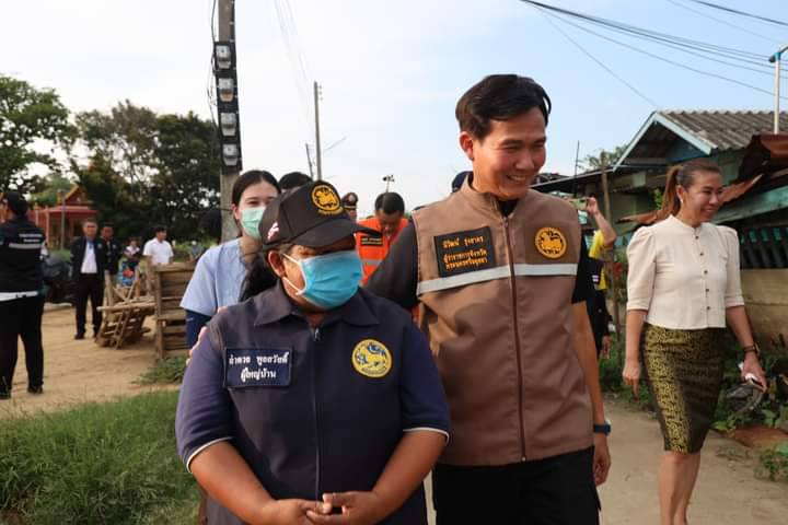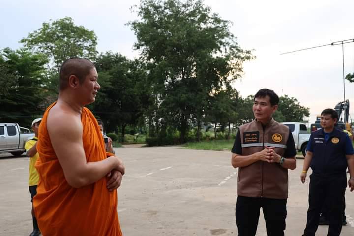 ต่อจากนั้น ได้เดินทางไปยัง ศูนย์เฝ้าระวังภัยพิบัติ ที่ตั้งอยู่ริมถนนแนวคันกั้นน้ำ ตำบลวัดตะกู อำเภอบางบาล เพื่อเยี่ยมให้กำลังใจเจ้าหน้าที่ท้องถิ่นกำนันผู้ใหญ่บ้าน ที่จัดตั้งศูนย์ฯ คอยช่วยเหลือประสานงาน ให้กับพี่น้องประชาชน ซึ่งภายในชุมชนอยู่นอกคั้นกั้นน้ำติดกับแม่น้ำน้อย ได้รับผลกระทบน้ำล้นตลิ่งท่วมสูงในชุมชน ต้องนำรถยนต์ รถจักรยานยนต์มาจอดด้านนอก ซึ่งมีการจัดเฝ้าเวรยามเพื่อป้องกันทรัพย์สินให้กับพี่น้องประชาชนตลอด 24 ชั่วโมง